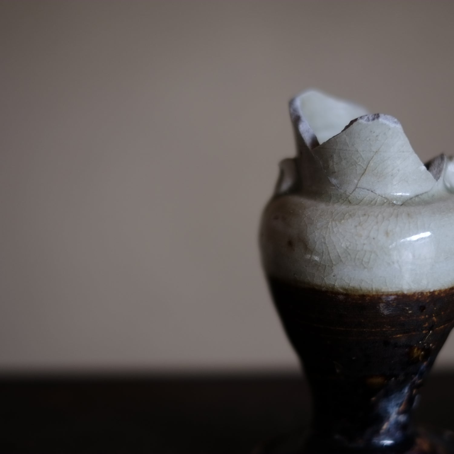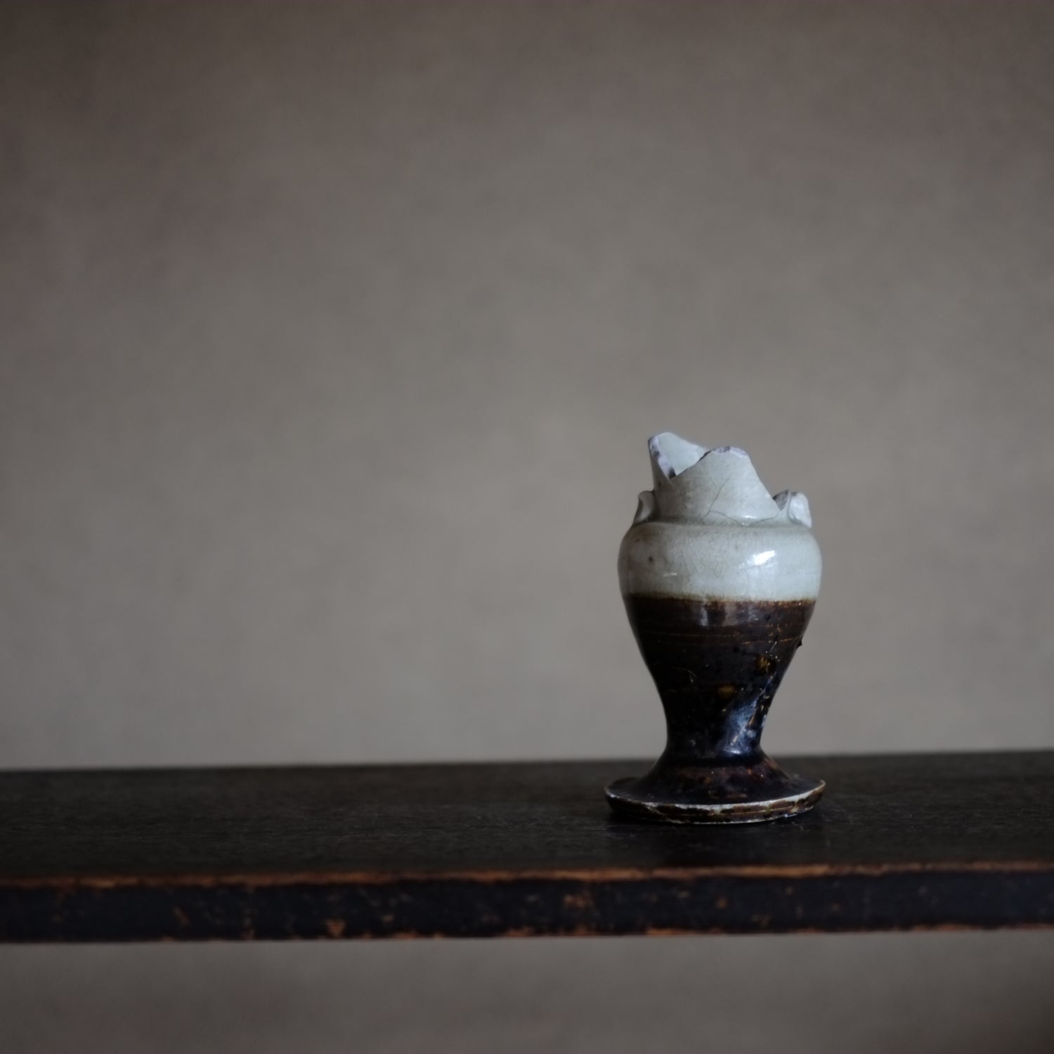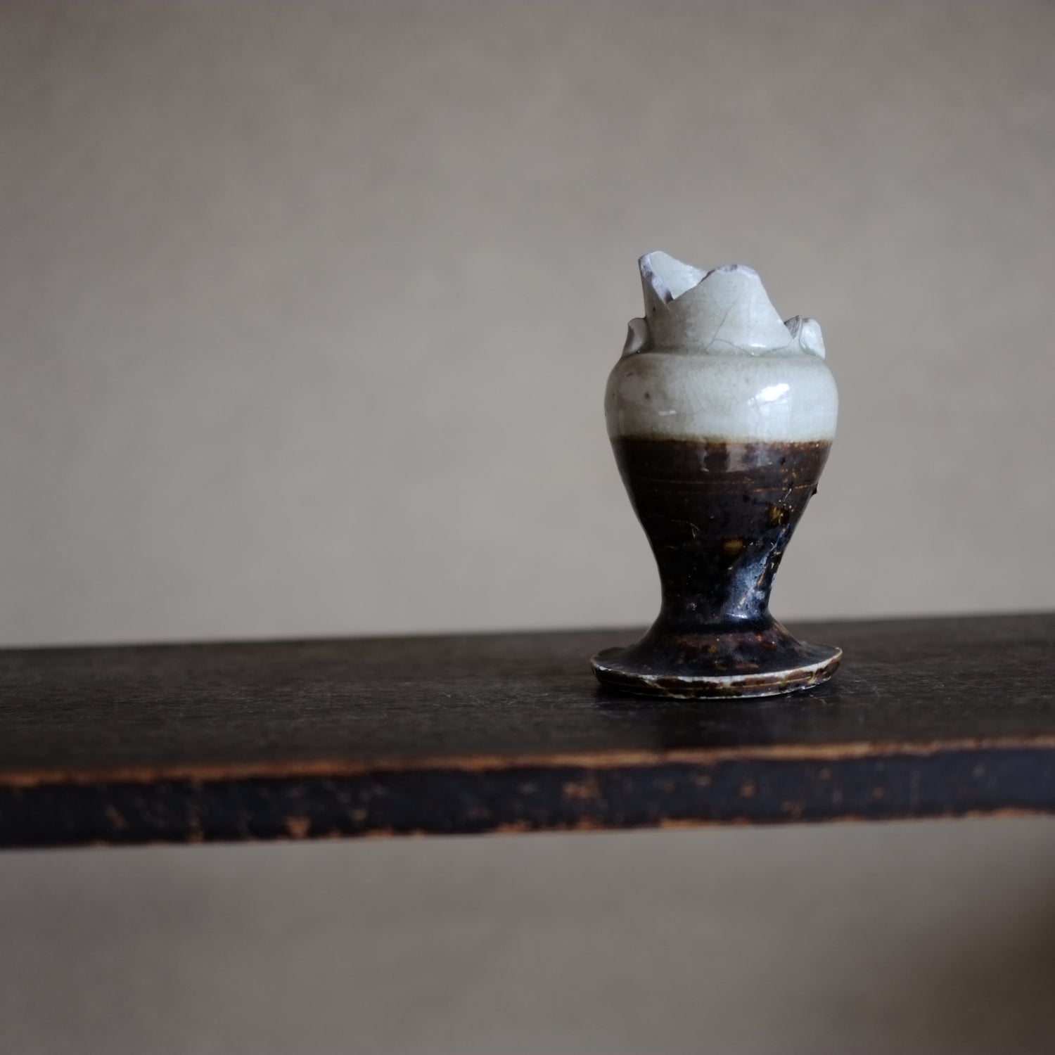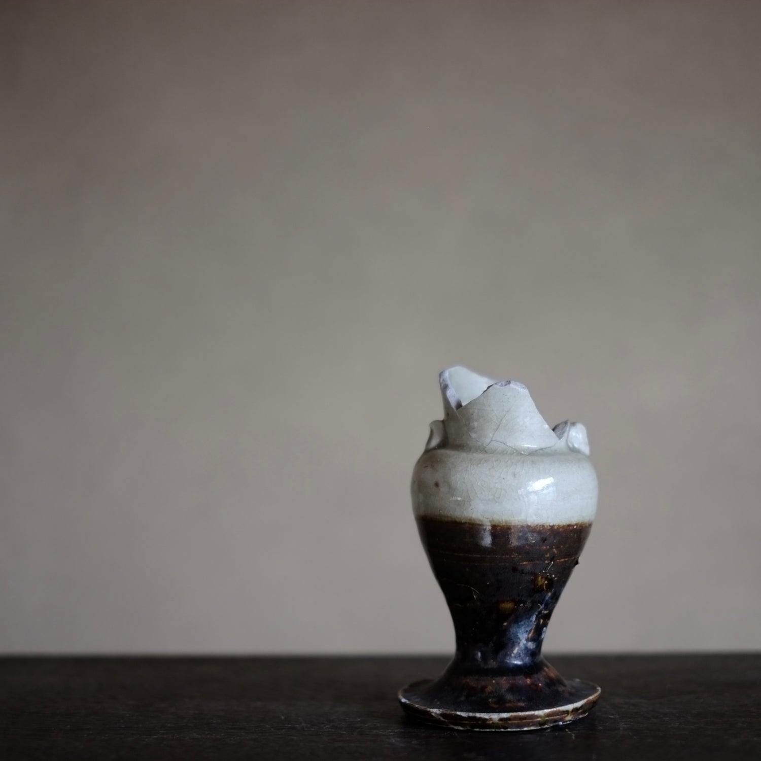 瀬戸・美濃 鉄・灰釉掛分 仏花器 (江戸時代18世紀)
