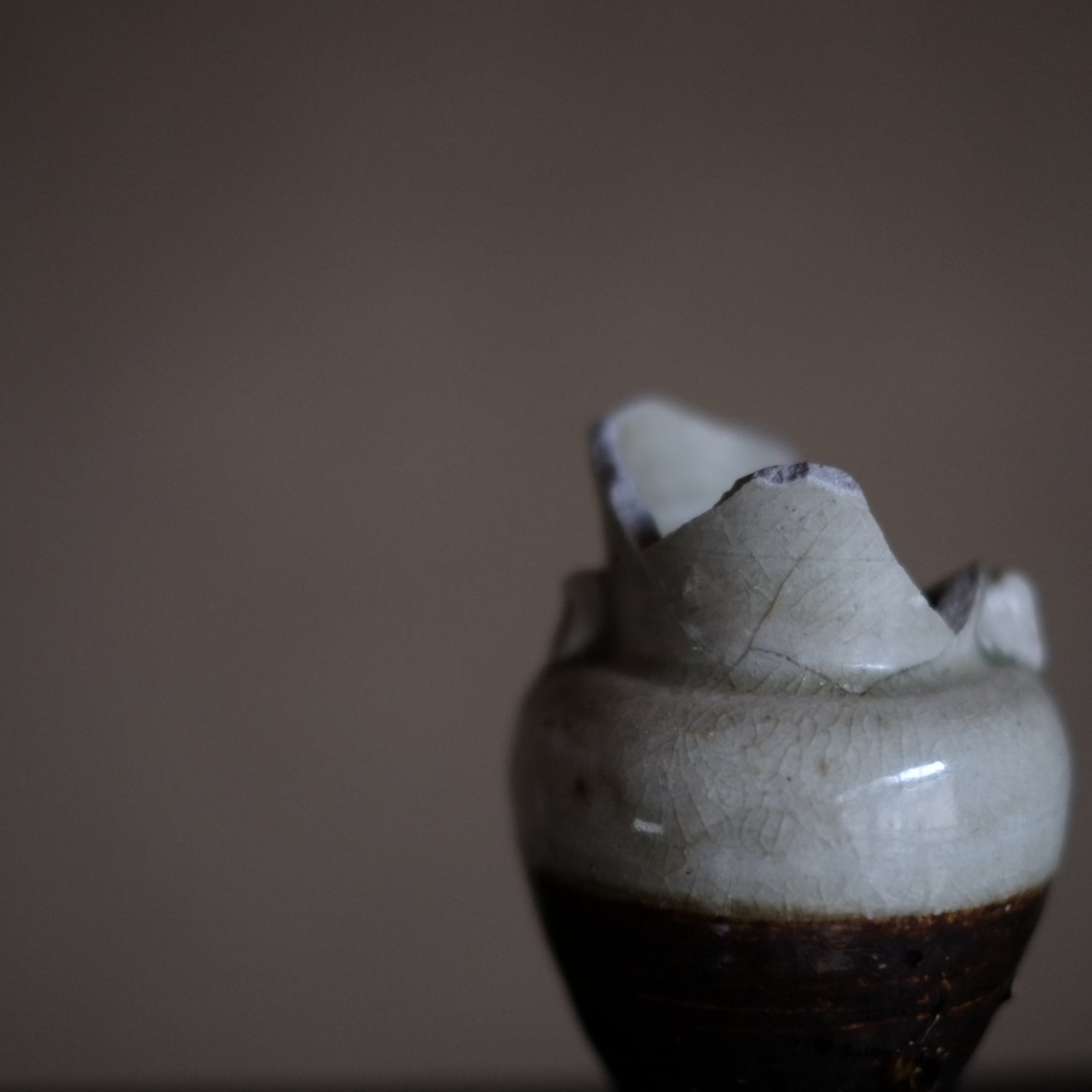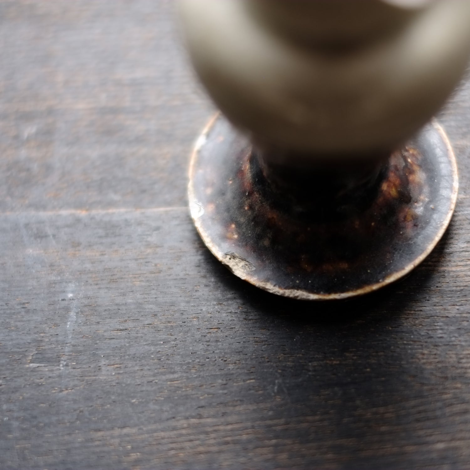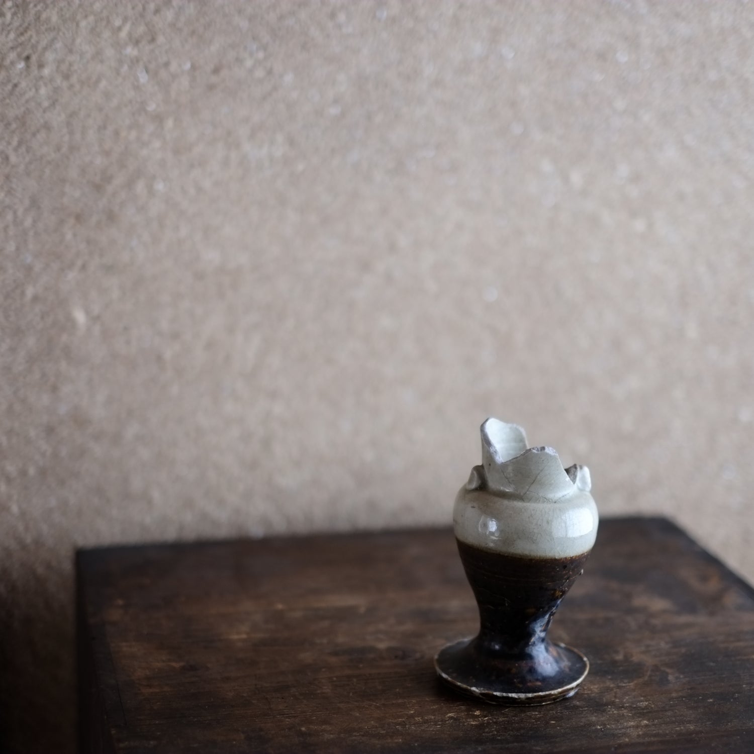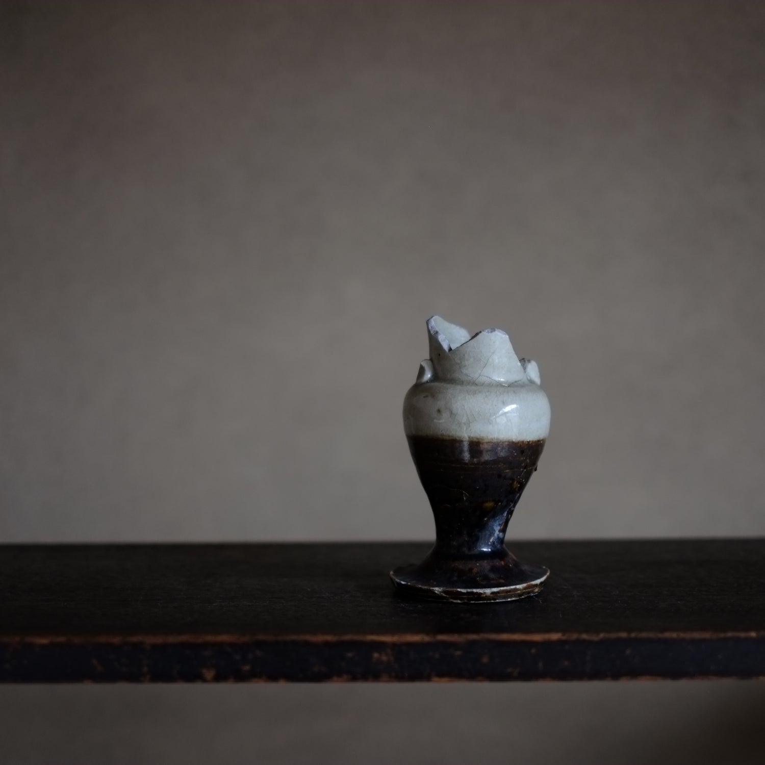 瀬戸・美濃 鉄・灰釉掛分 仏花器 (江戸時代18世紀)