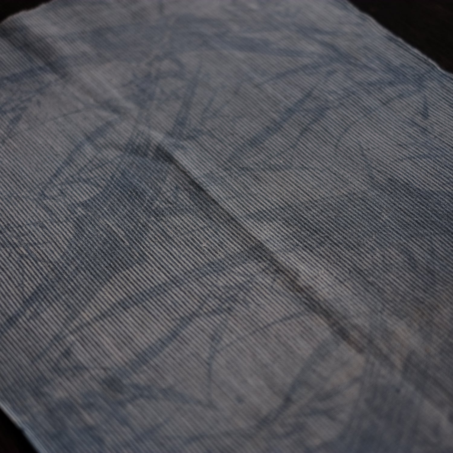 時代 薄藍細縞竹笹文木綿古布 (大正–昭和初期)