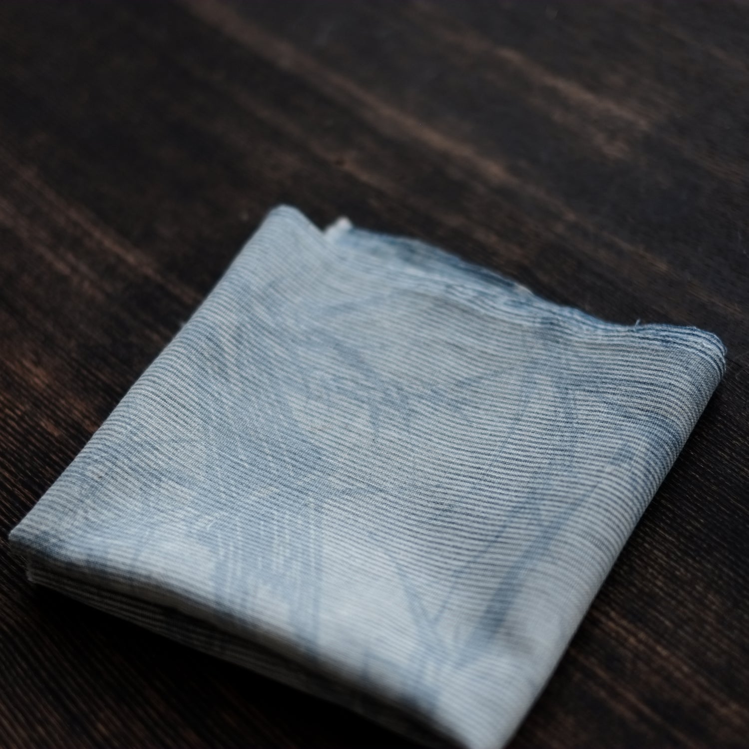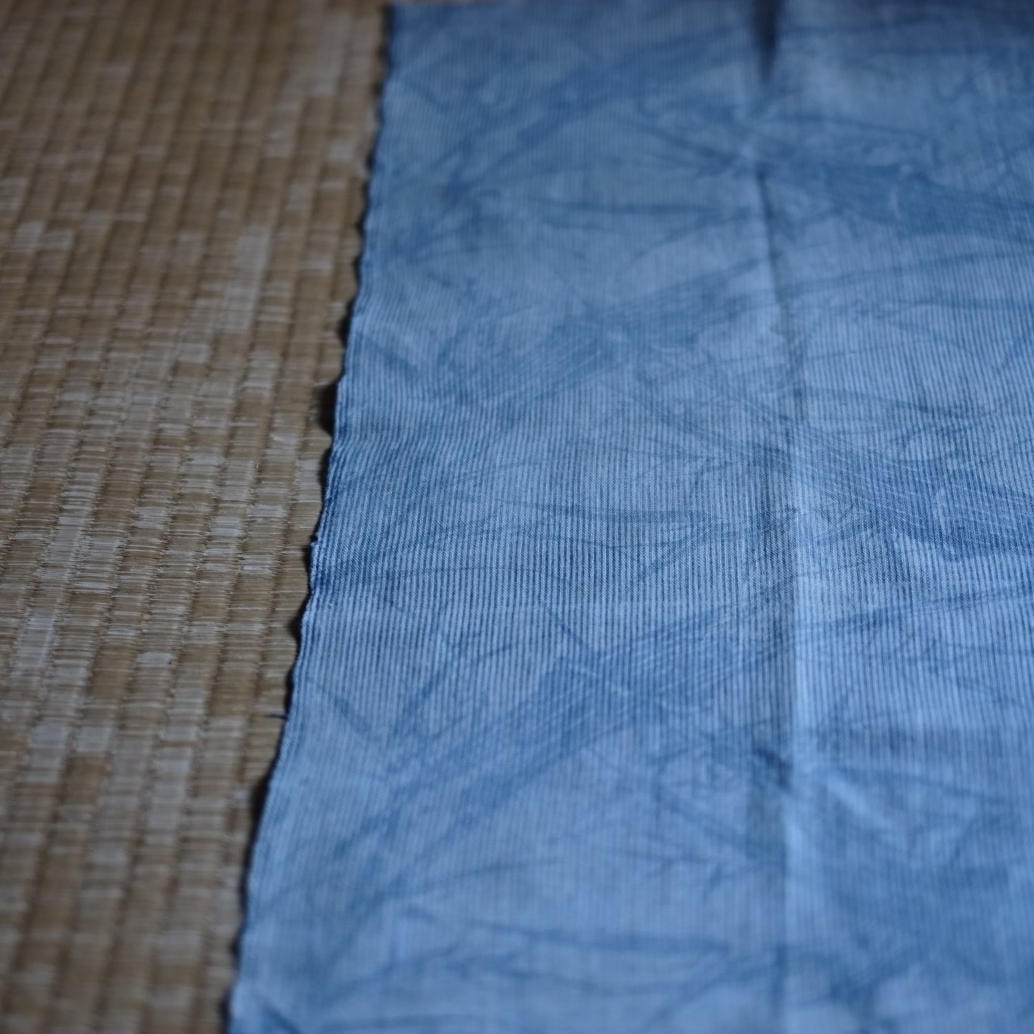 やわらかな細縞木綿の地に、薄藍で竹笹の
