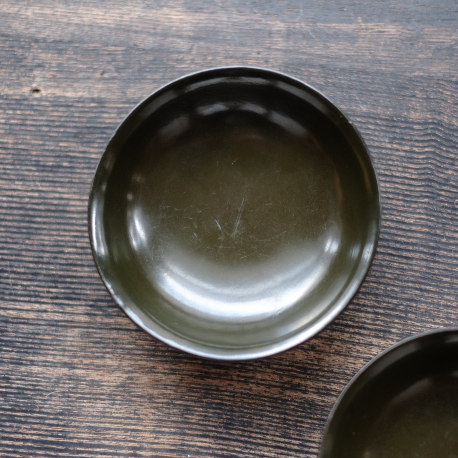 時代 総青漆底黒漆小皿 二客セット (江戸時代)
