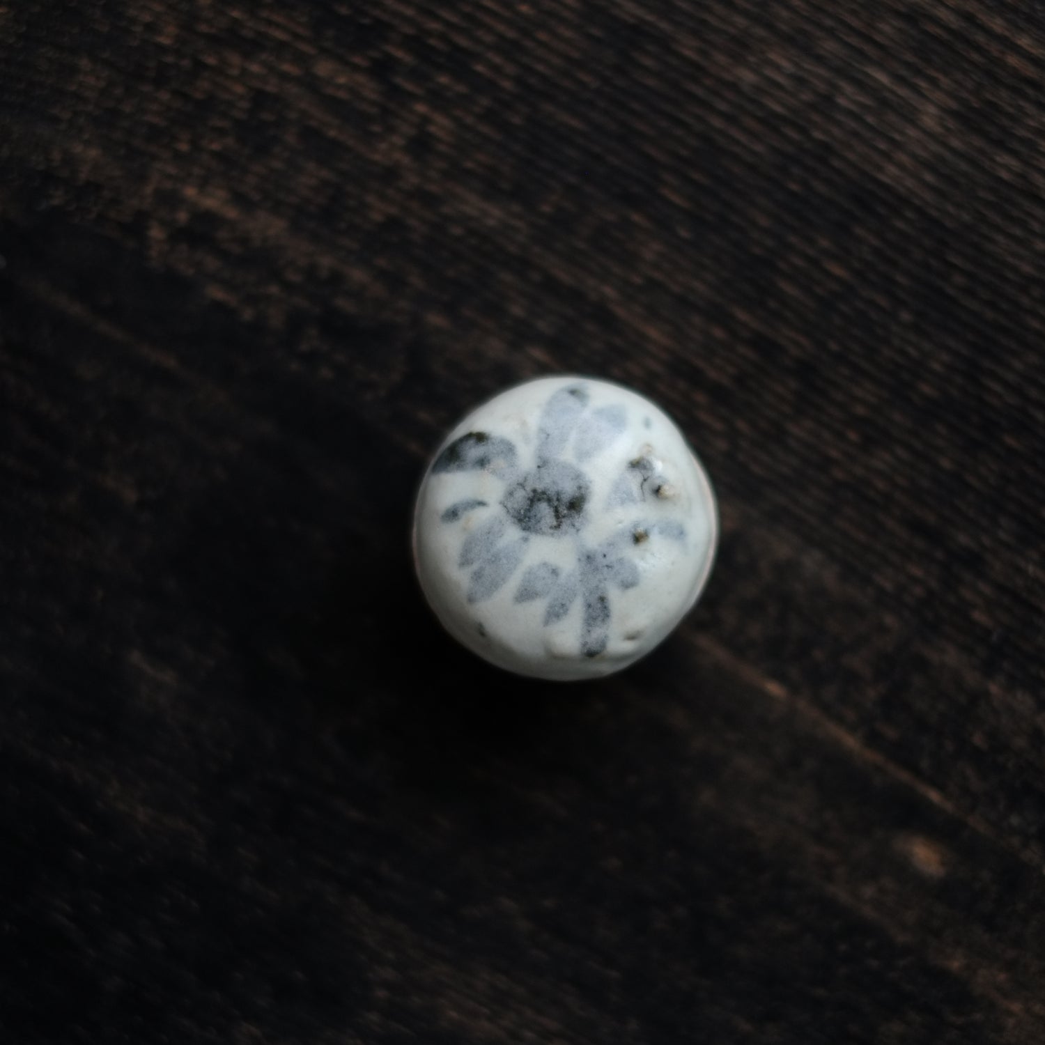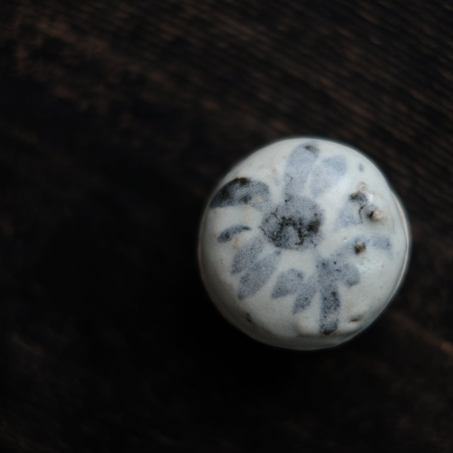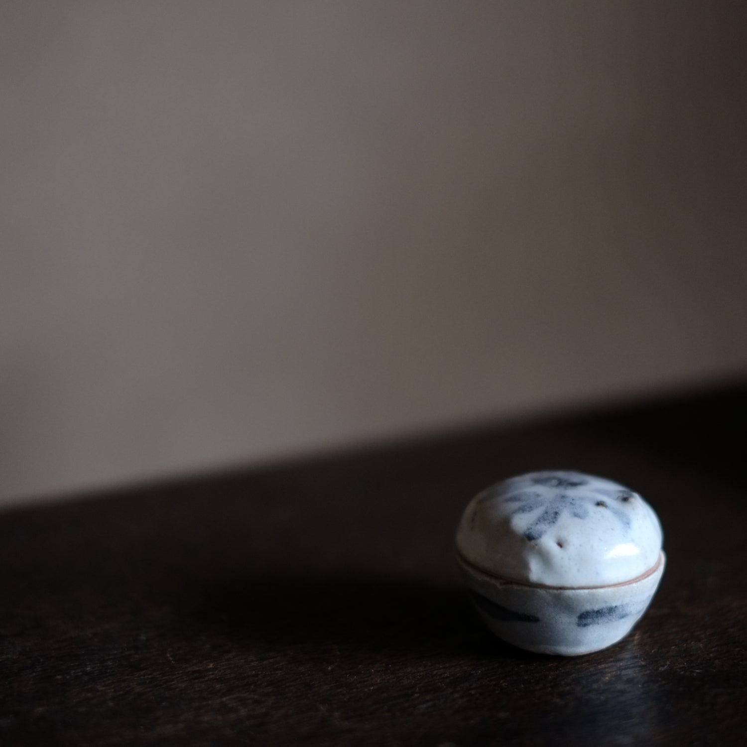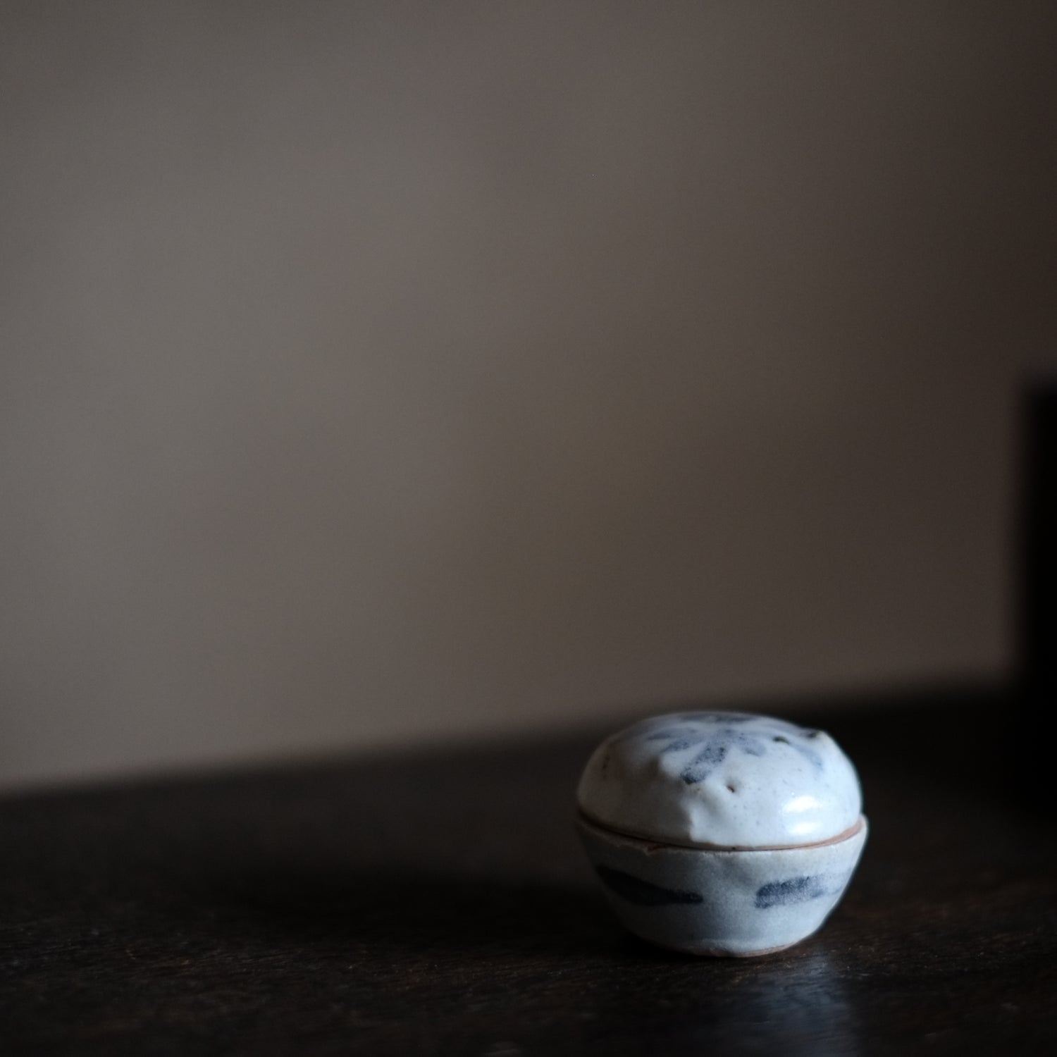 呉須で素朴な花文を描いた小さな合子