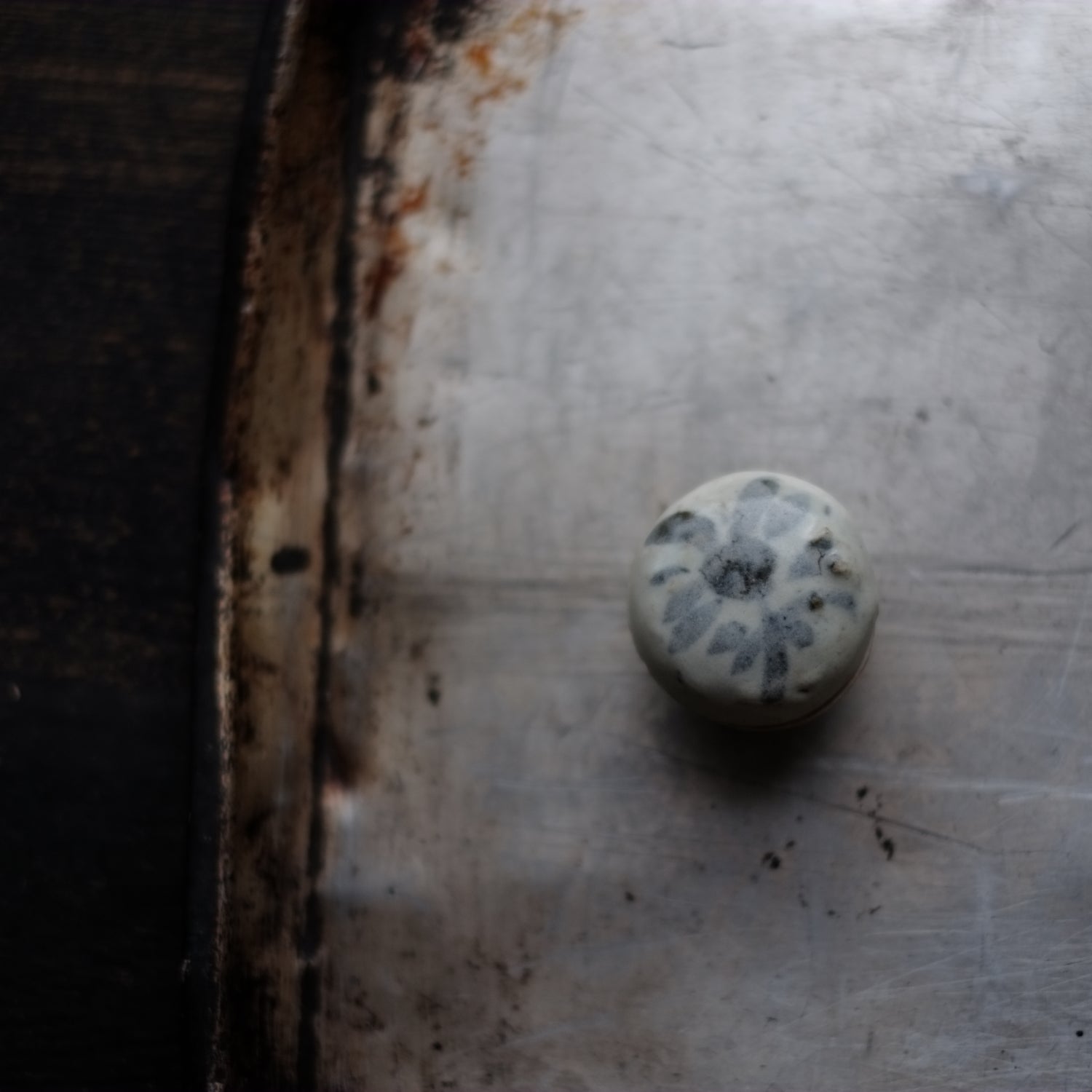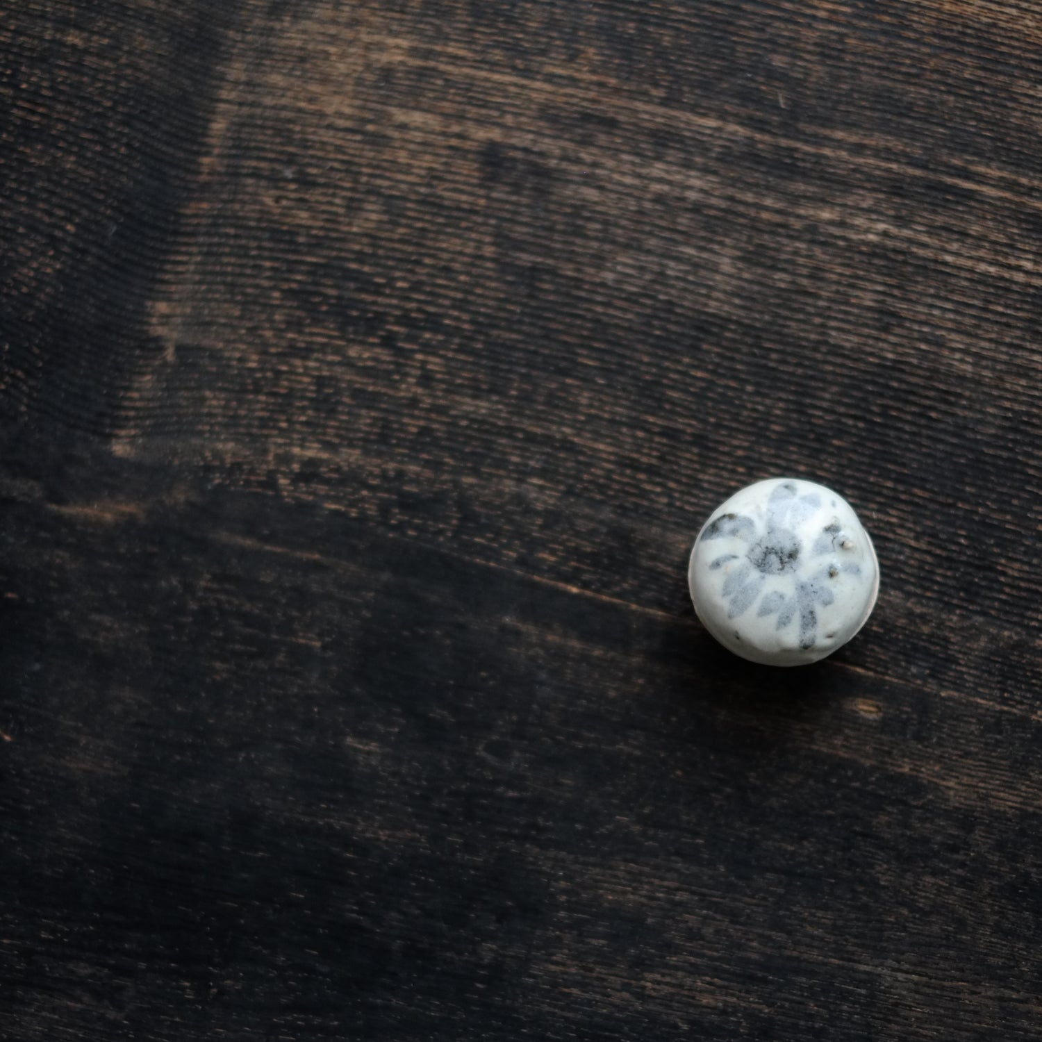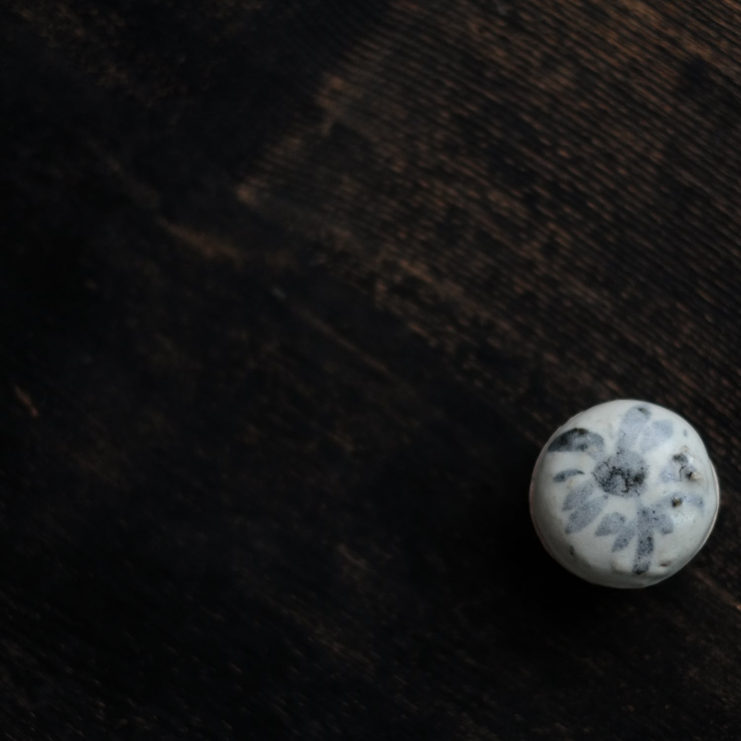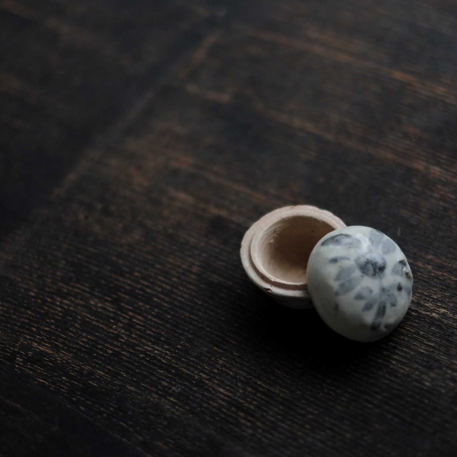 呉須で素朴な花文を描いた小さな合子