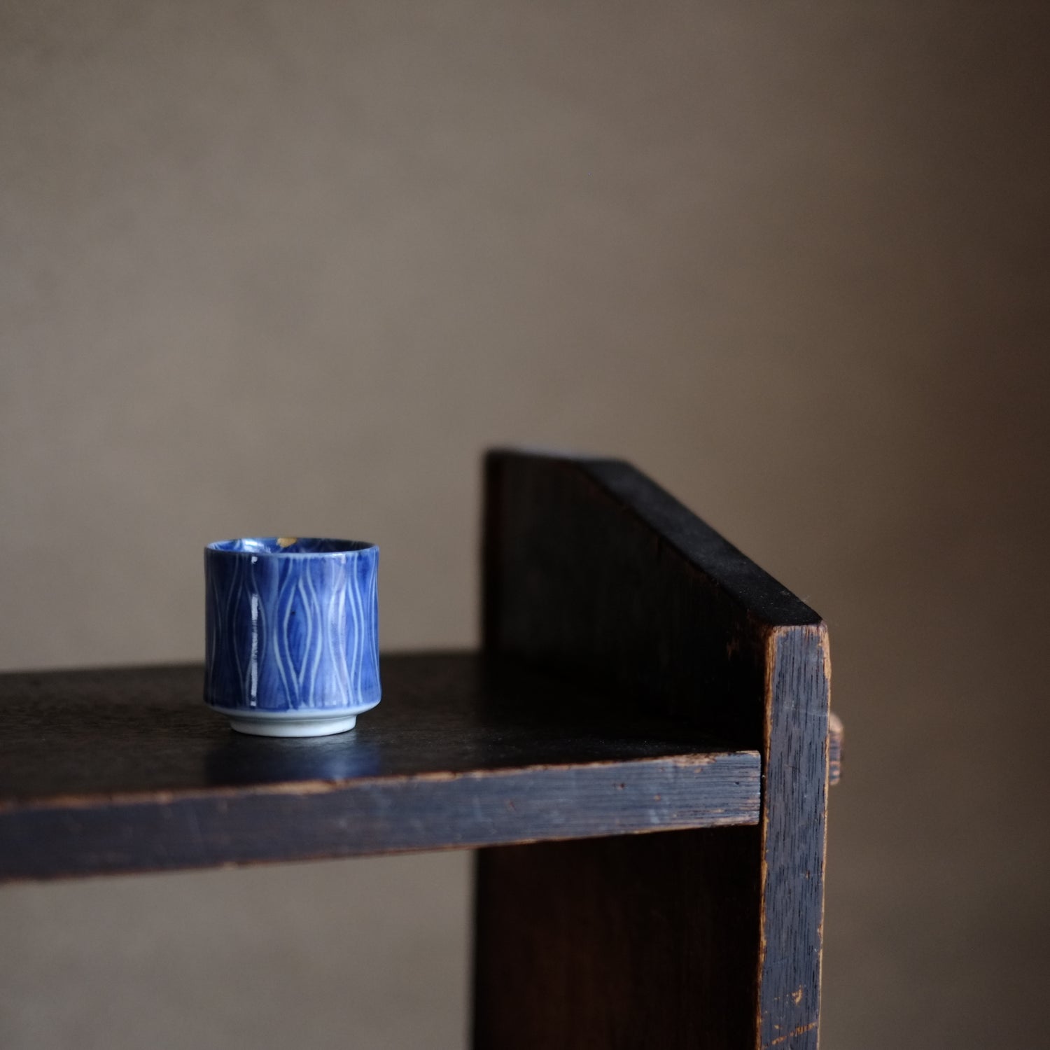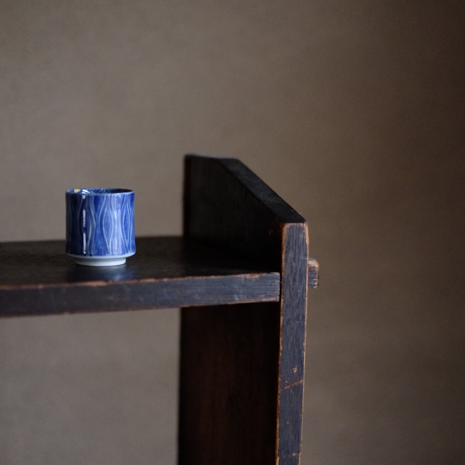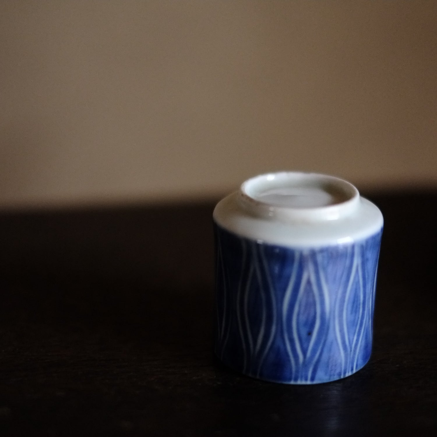 古伊万里 立湧文染付 覗き猪口 筒杯 江戸時代 (18-19世紀)