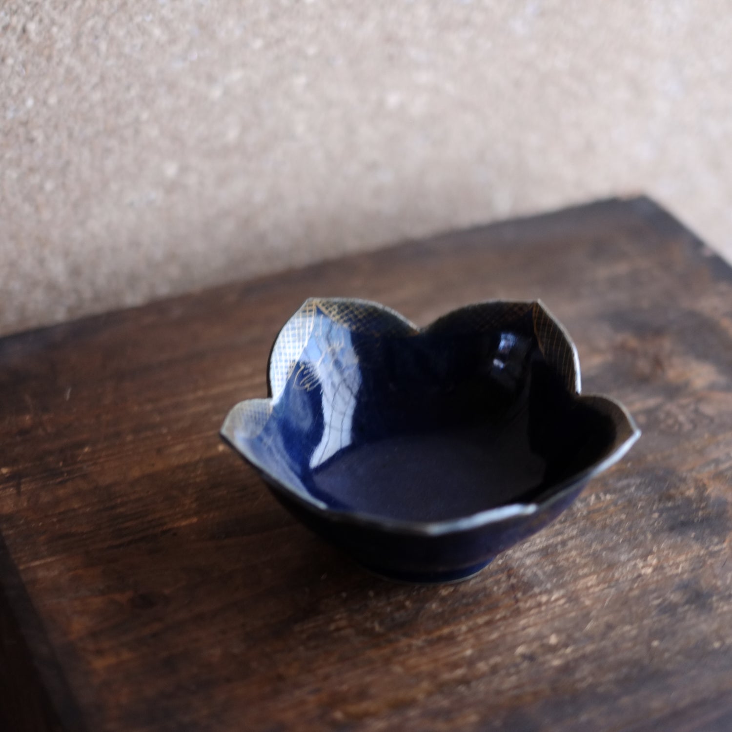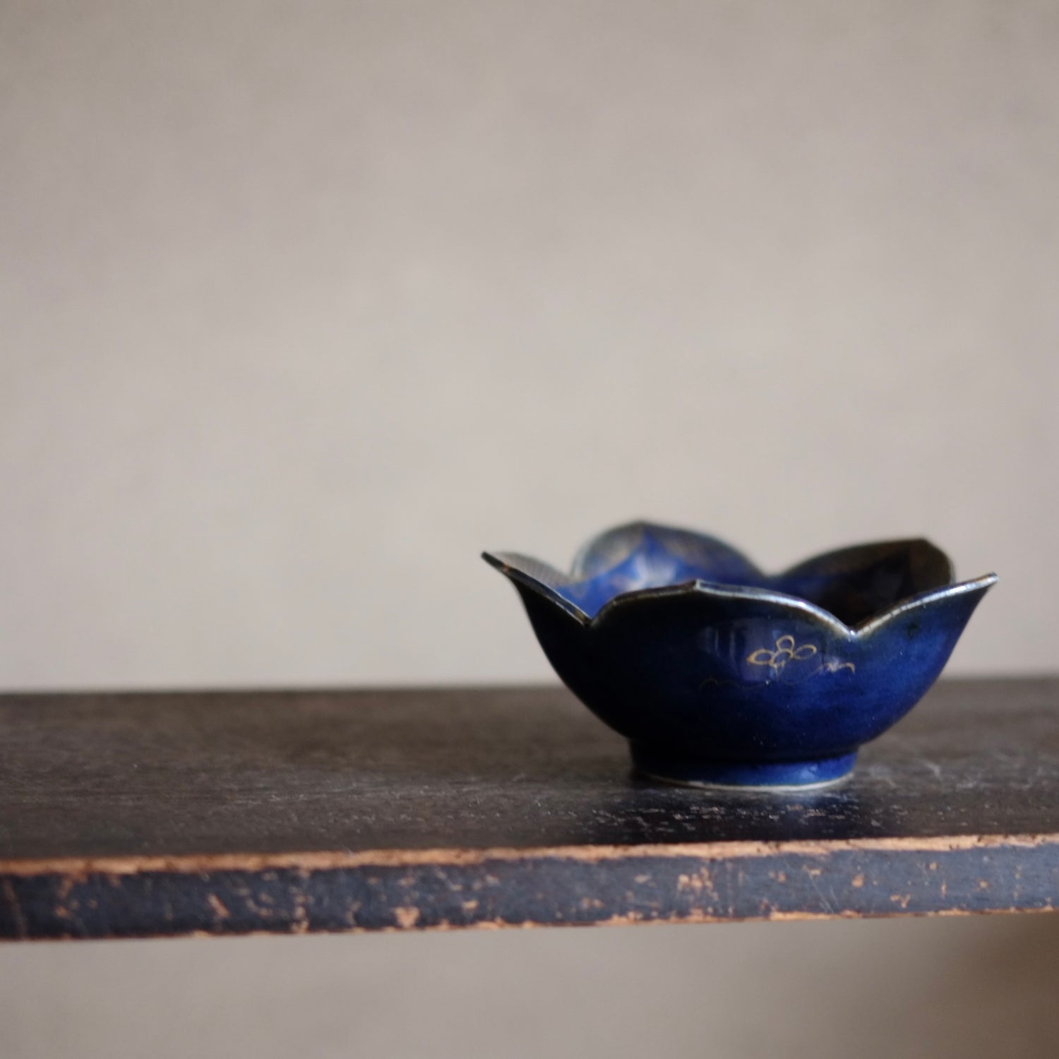 古伊万里 瑠璃釉金彩桔梗形向付 (江戸時代・19世紀)