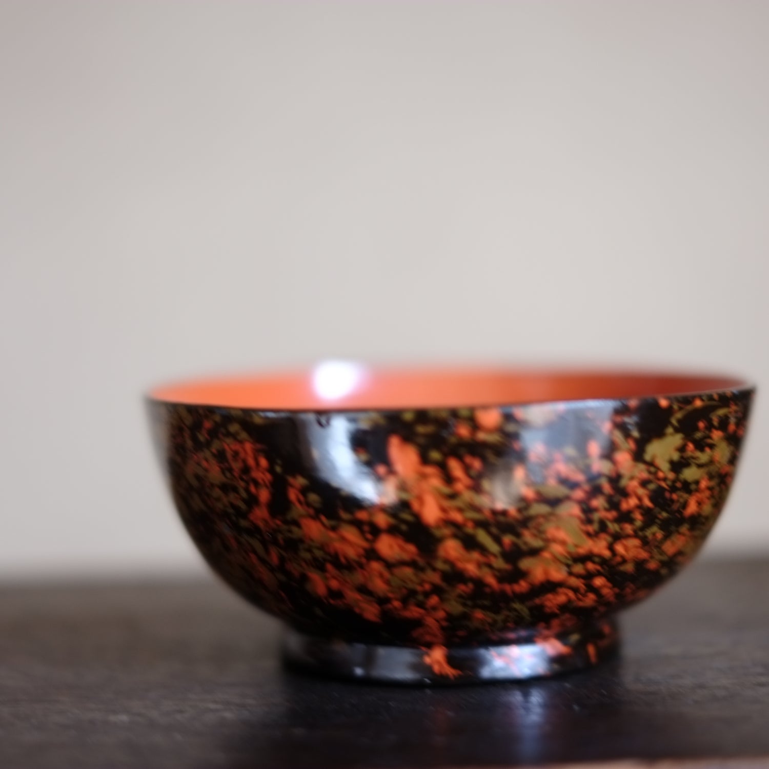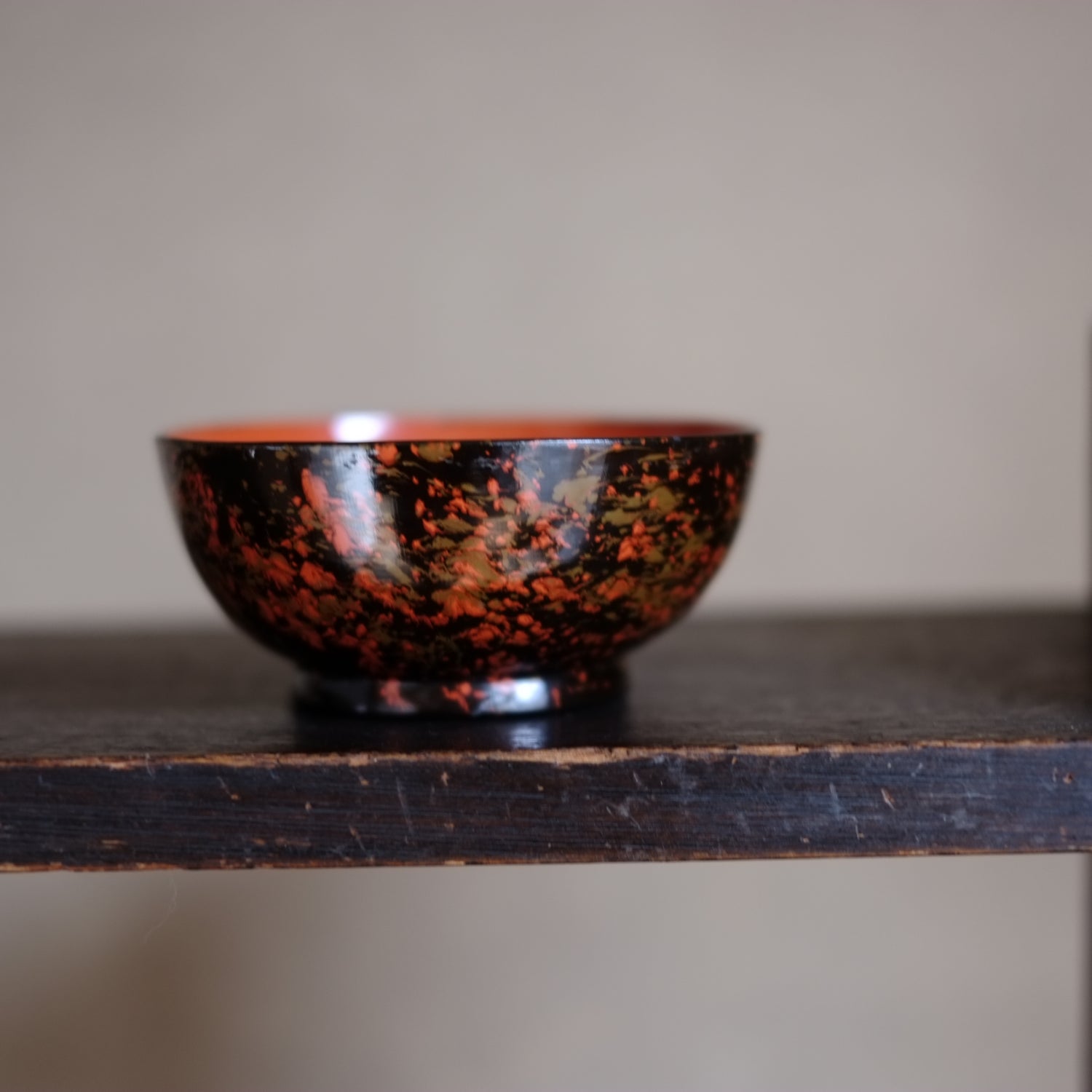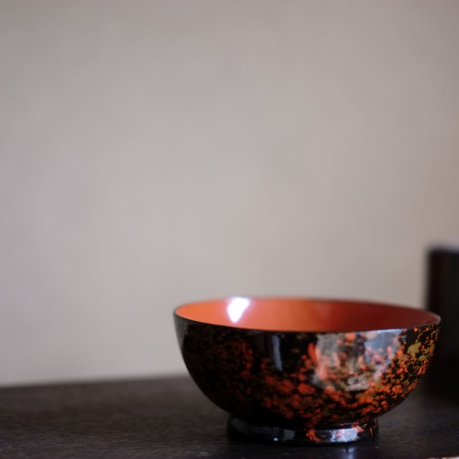 時代 内朱外黒漆塗吹雪文椀(江戸時代 18-19世紀)