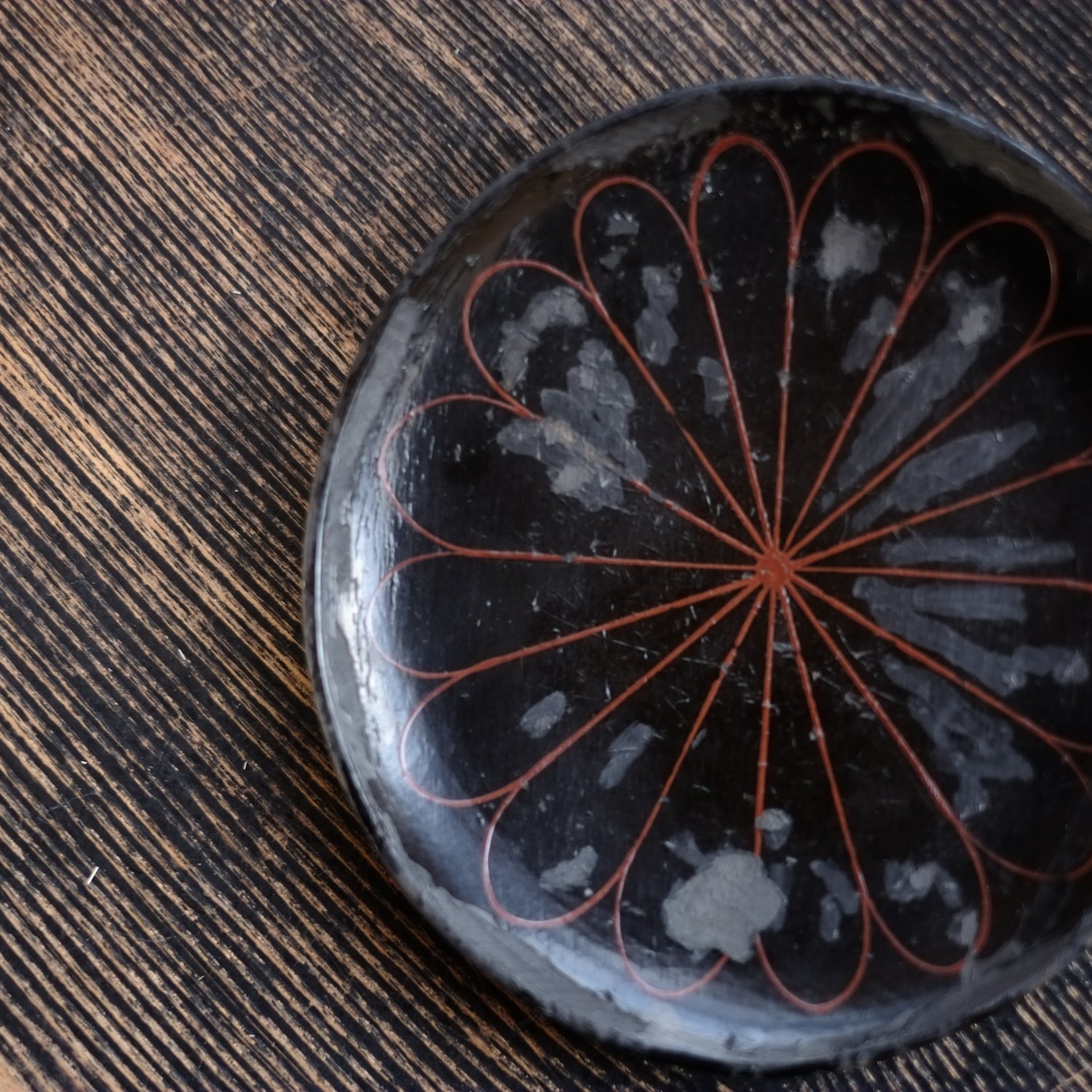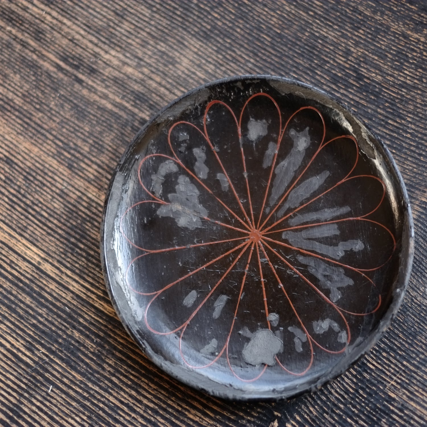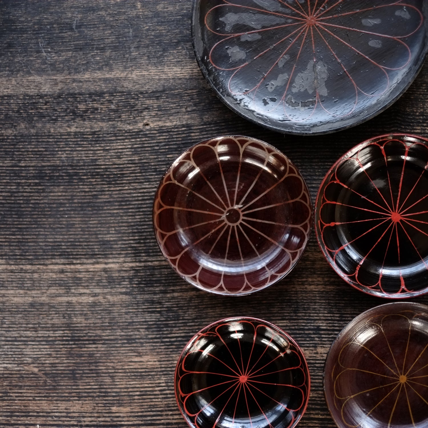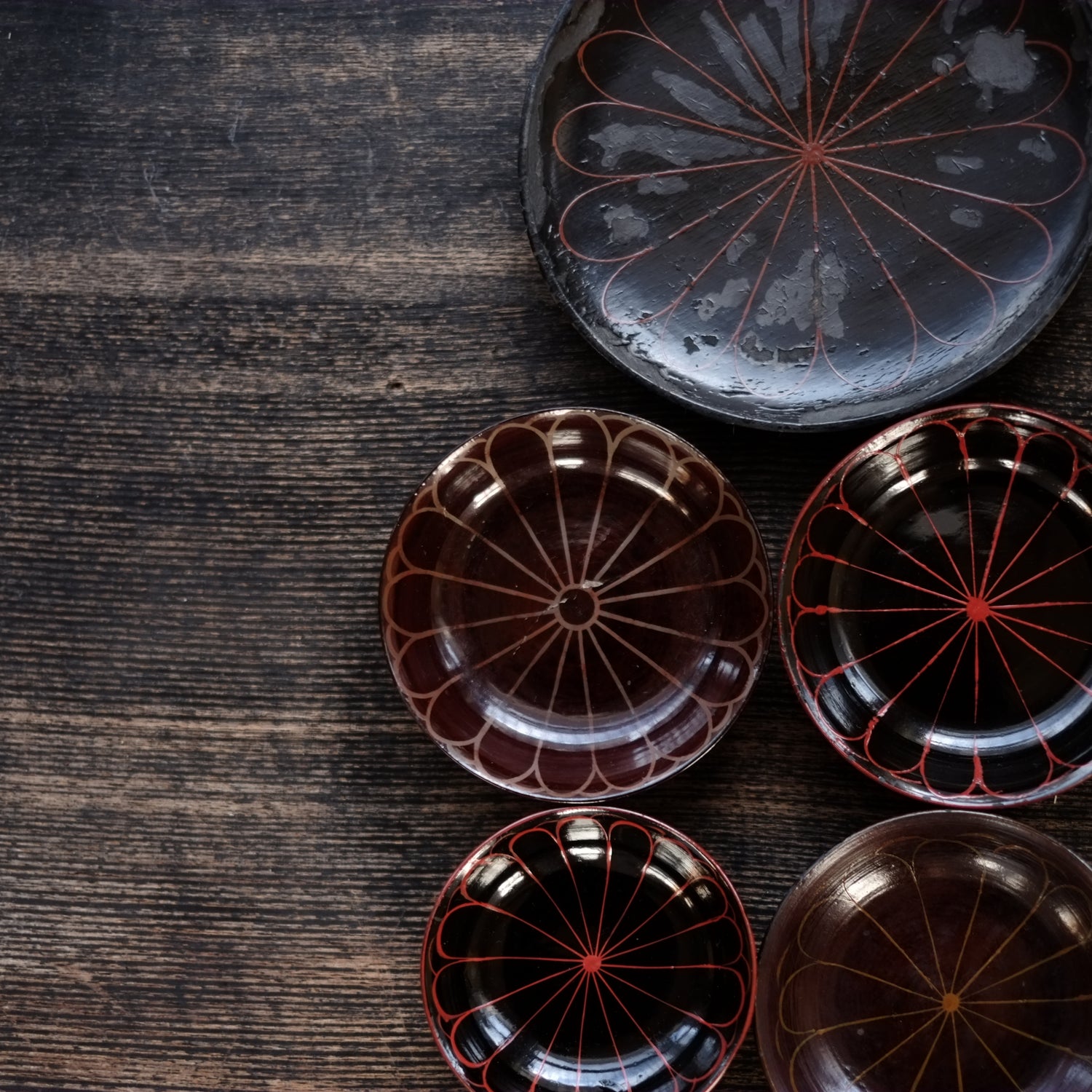 時代 十六花弁 朽木塗 小皿&豆皿 五種 セット (江戸後期-明治初期)