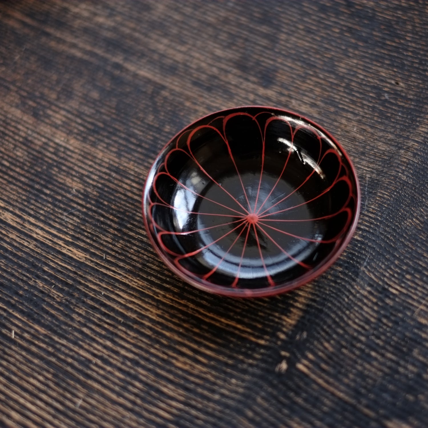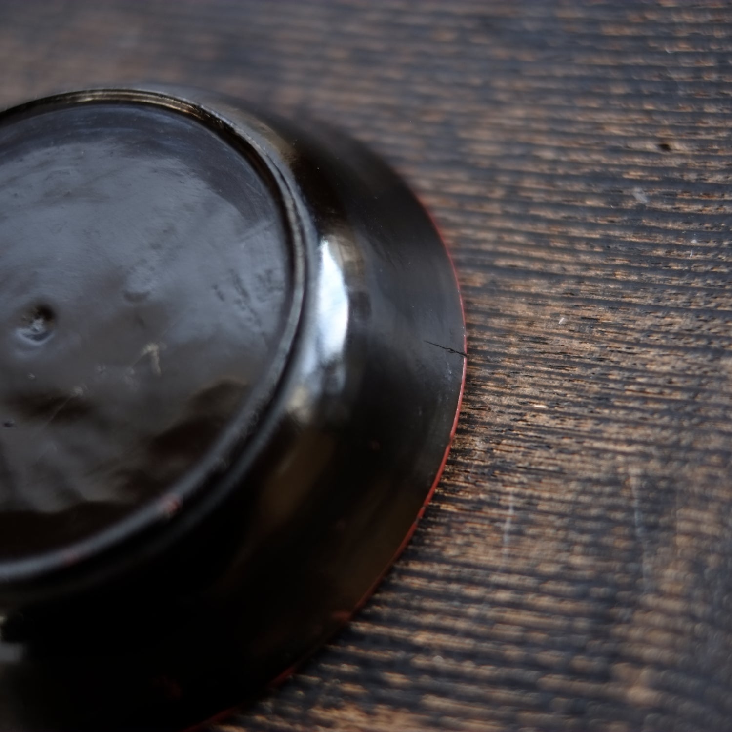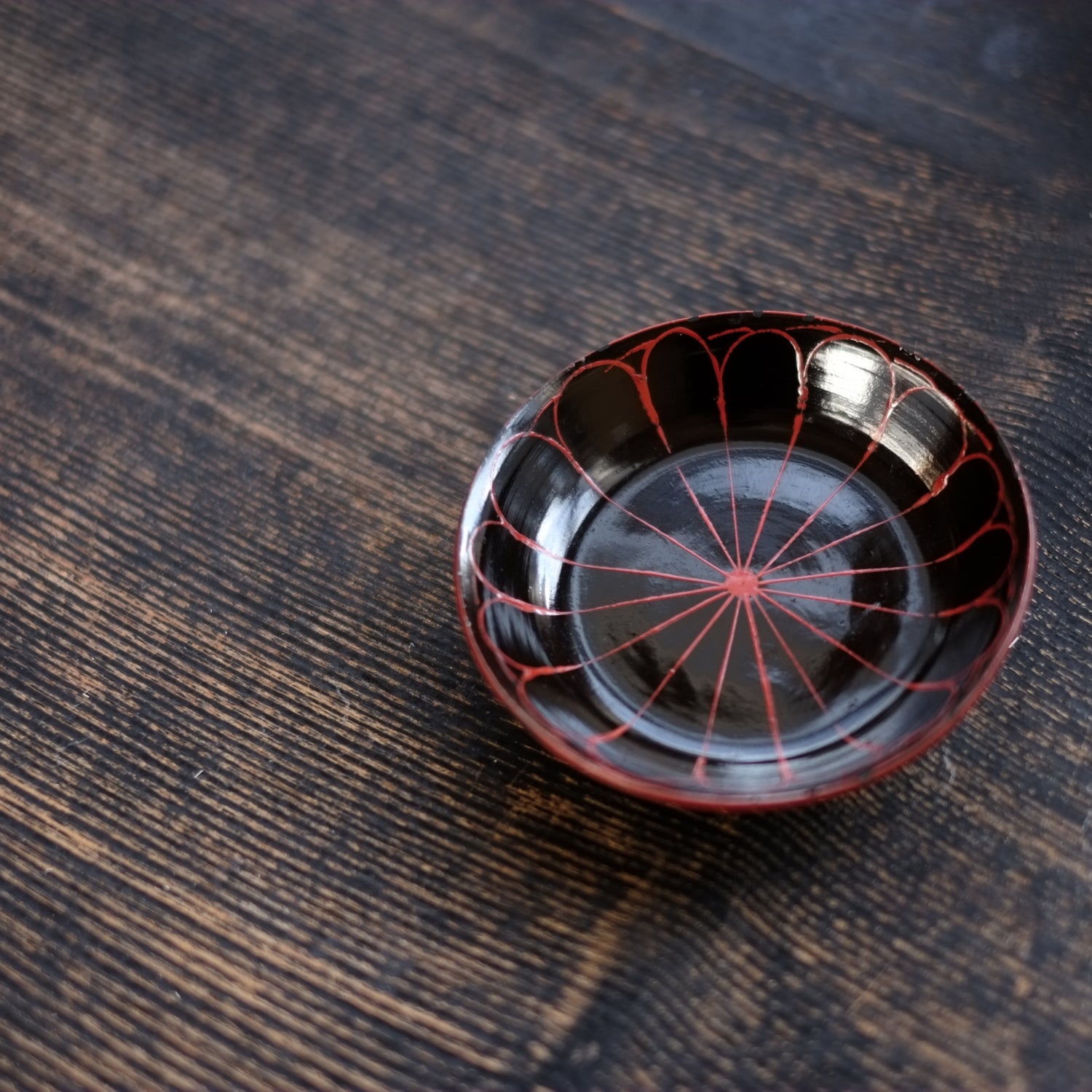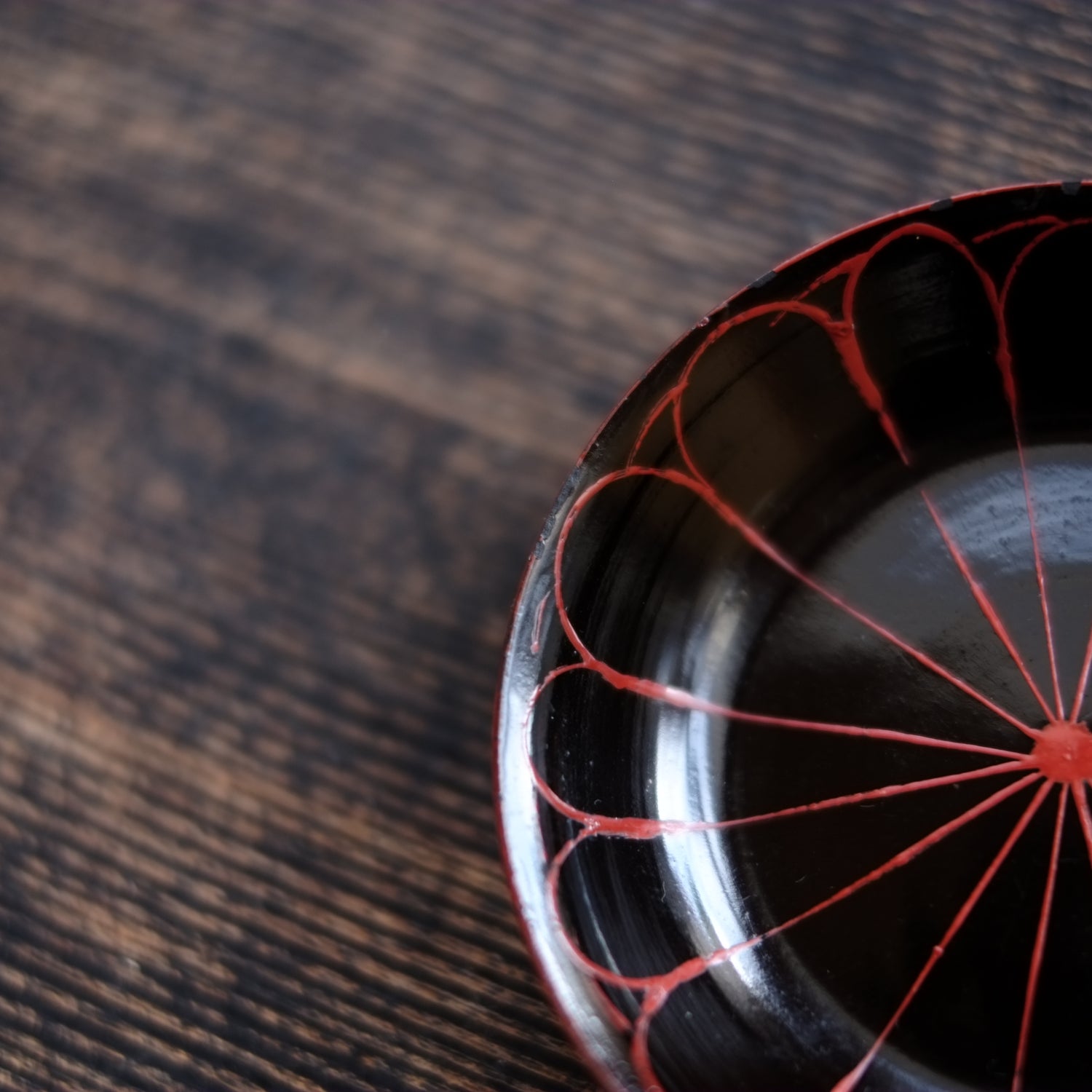 時代 十六花弁 朽木塗 小皿&豆皿 五種 セット (江戸後期-明治初期)
