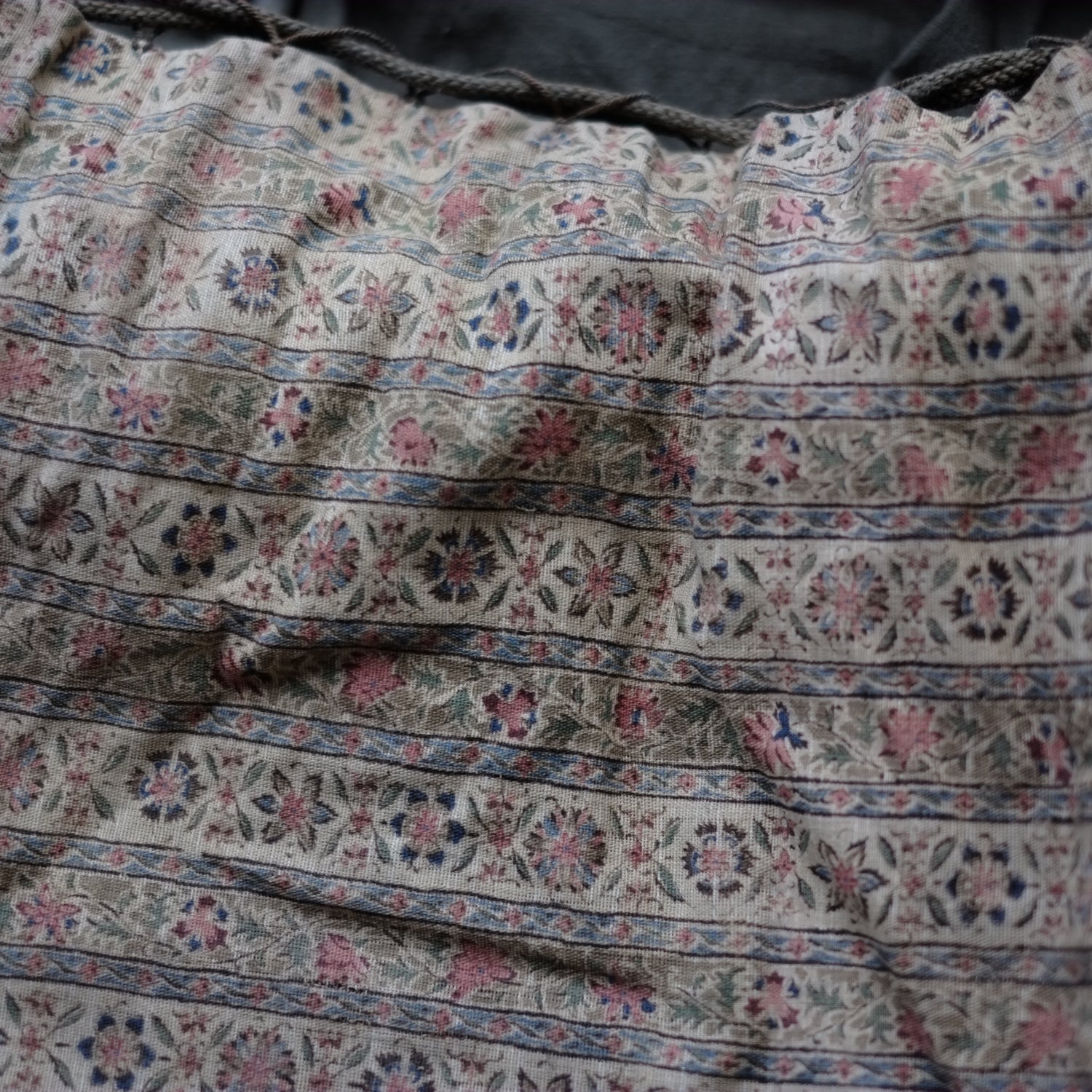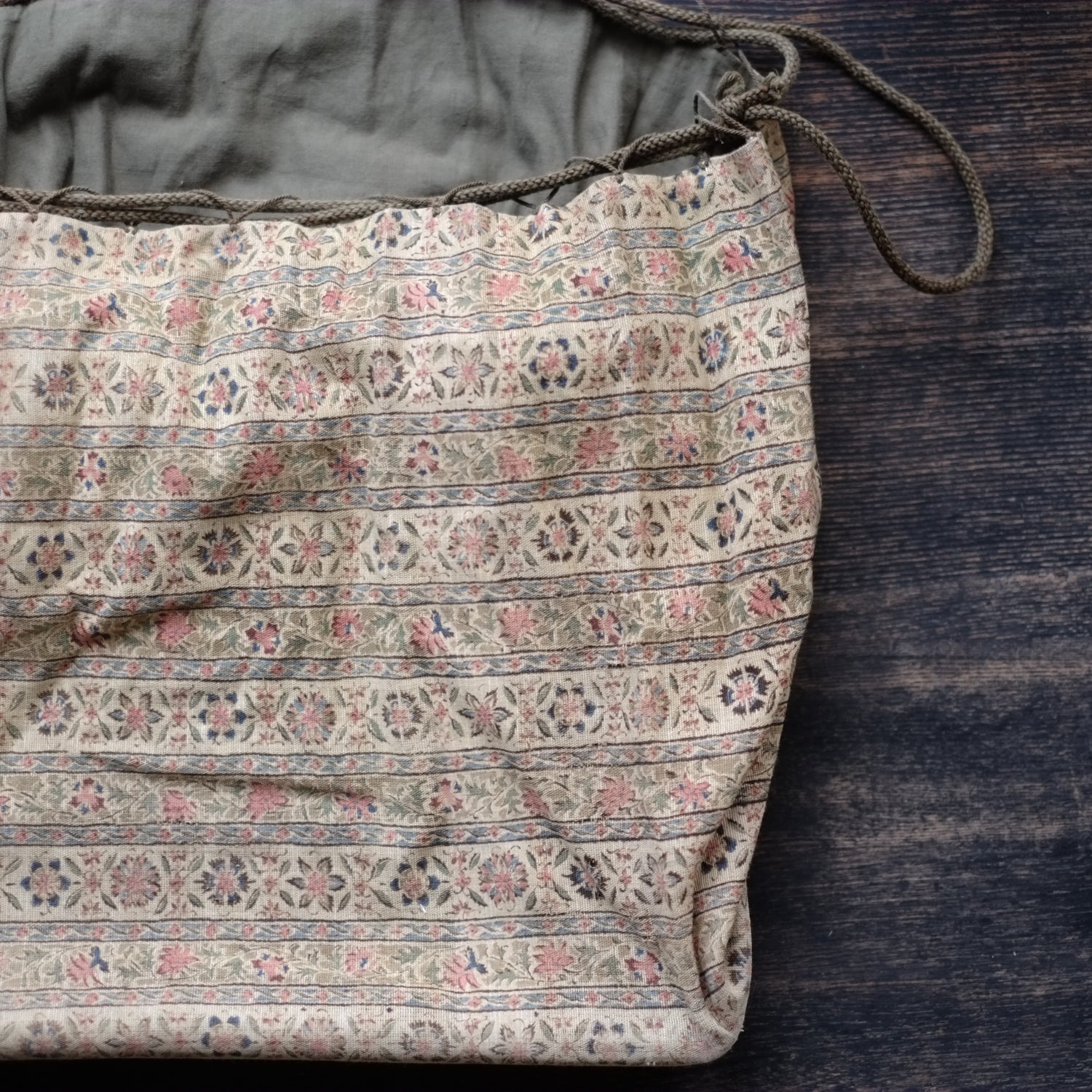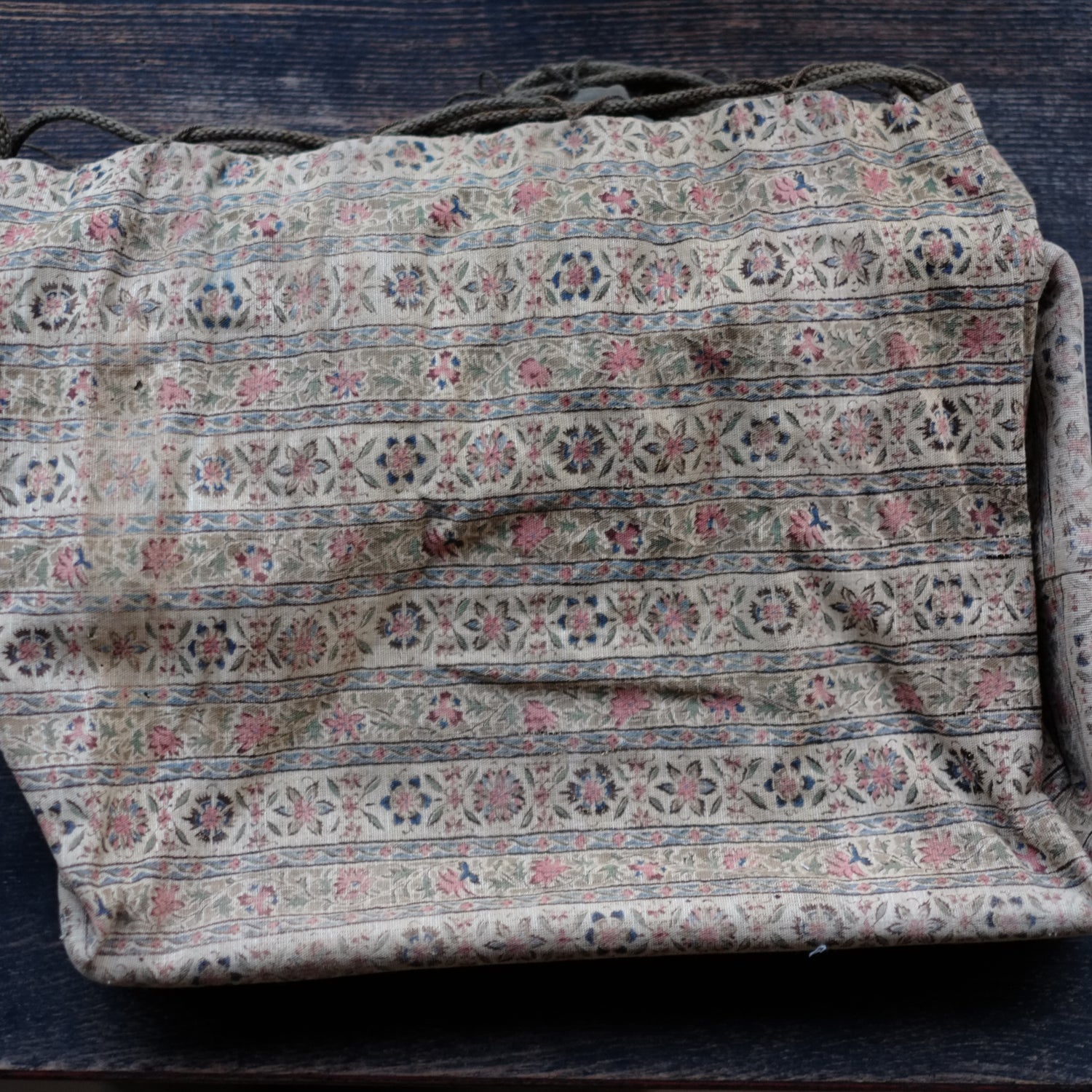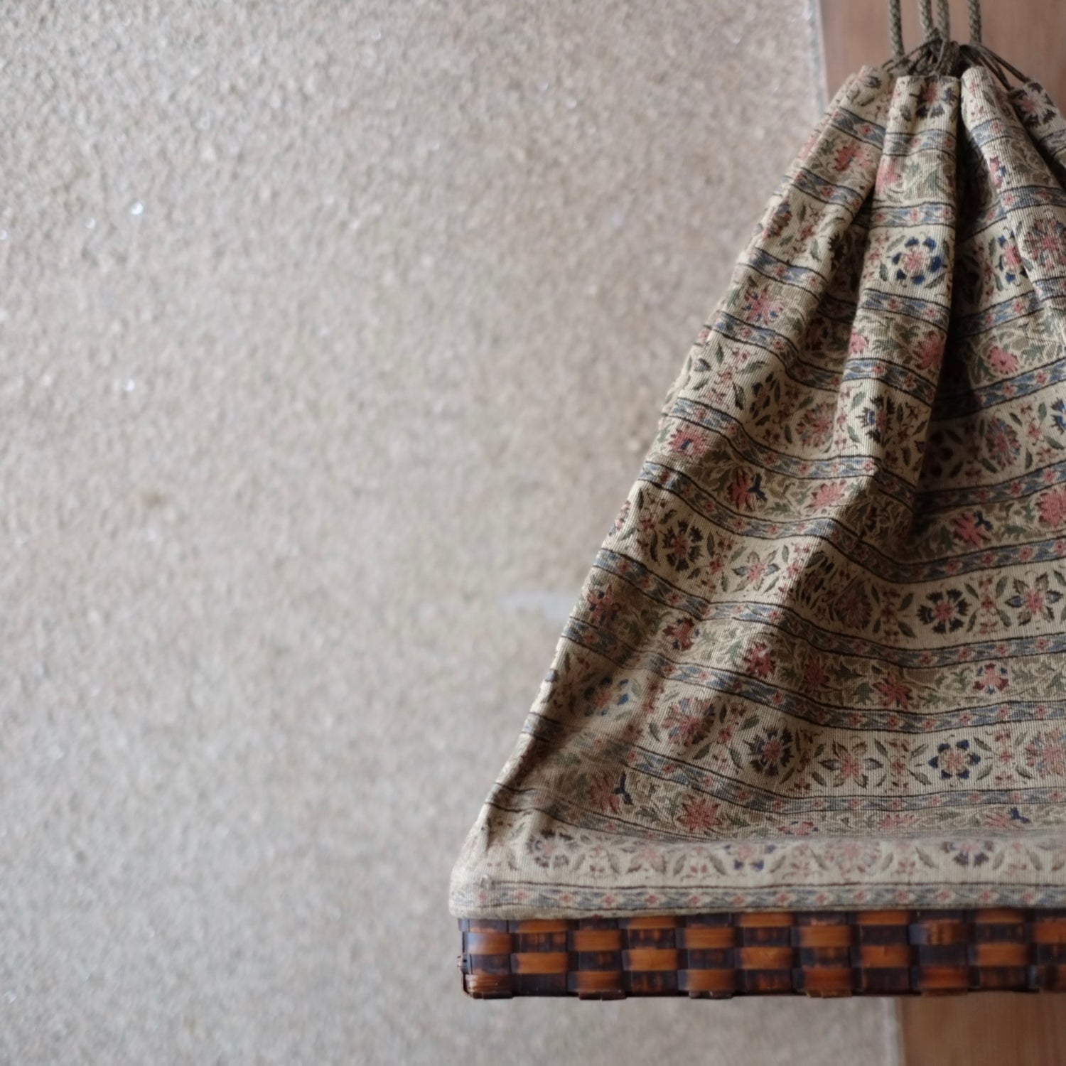 時代 和更紗花唐草文 巾着籠物(大正-昭和期)
