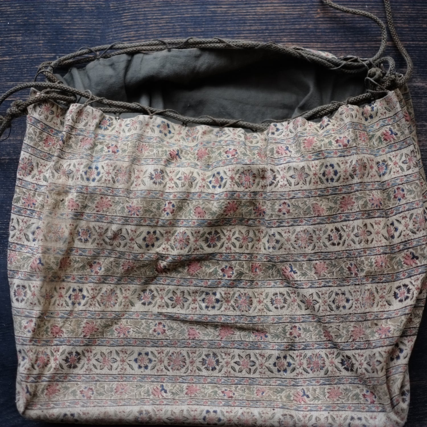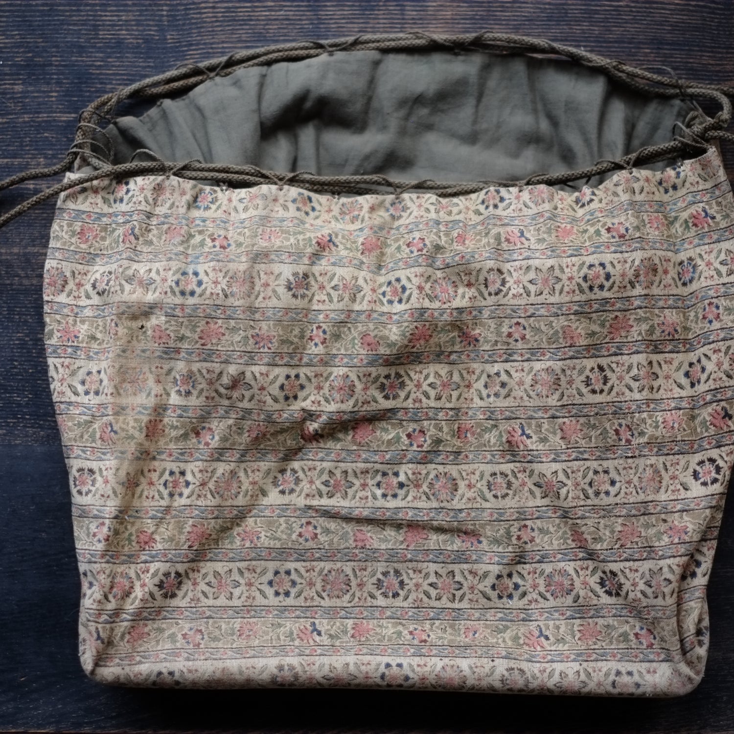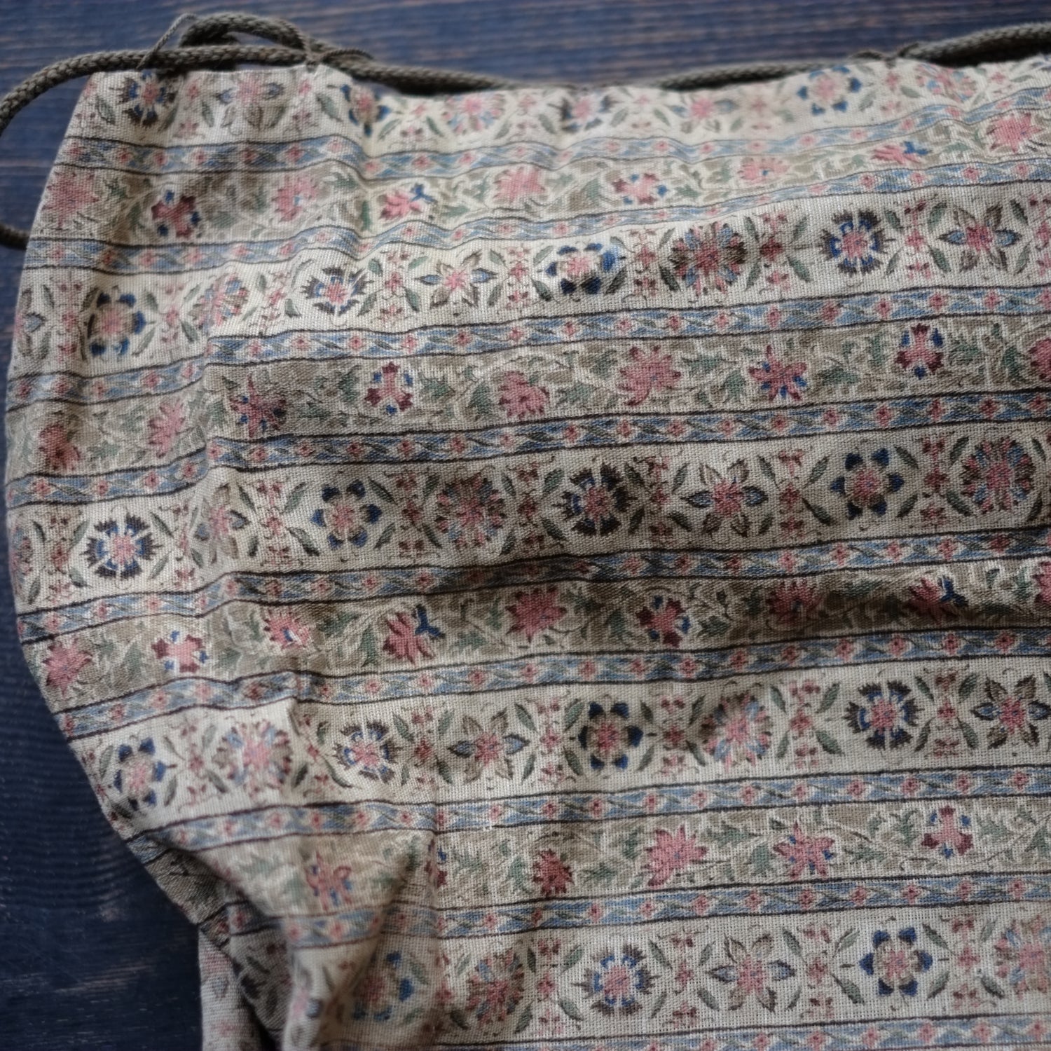 時代 和更紗花唐草文 巾着籠物(大正-昭和期)