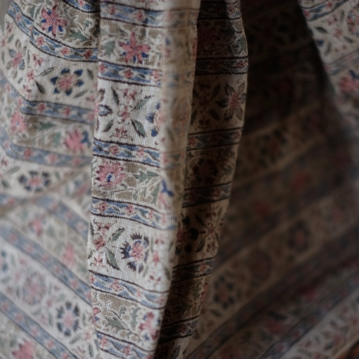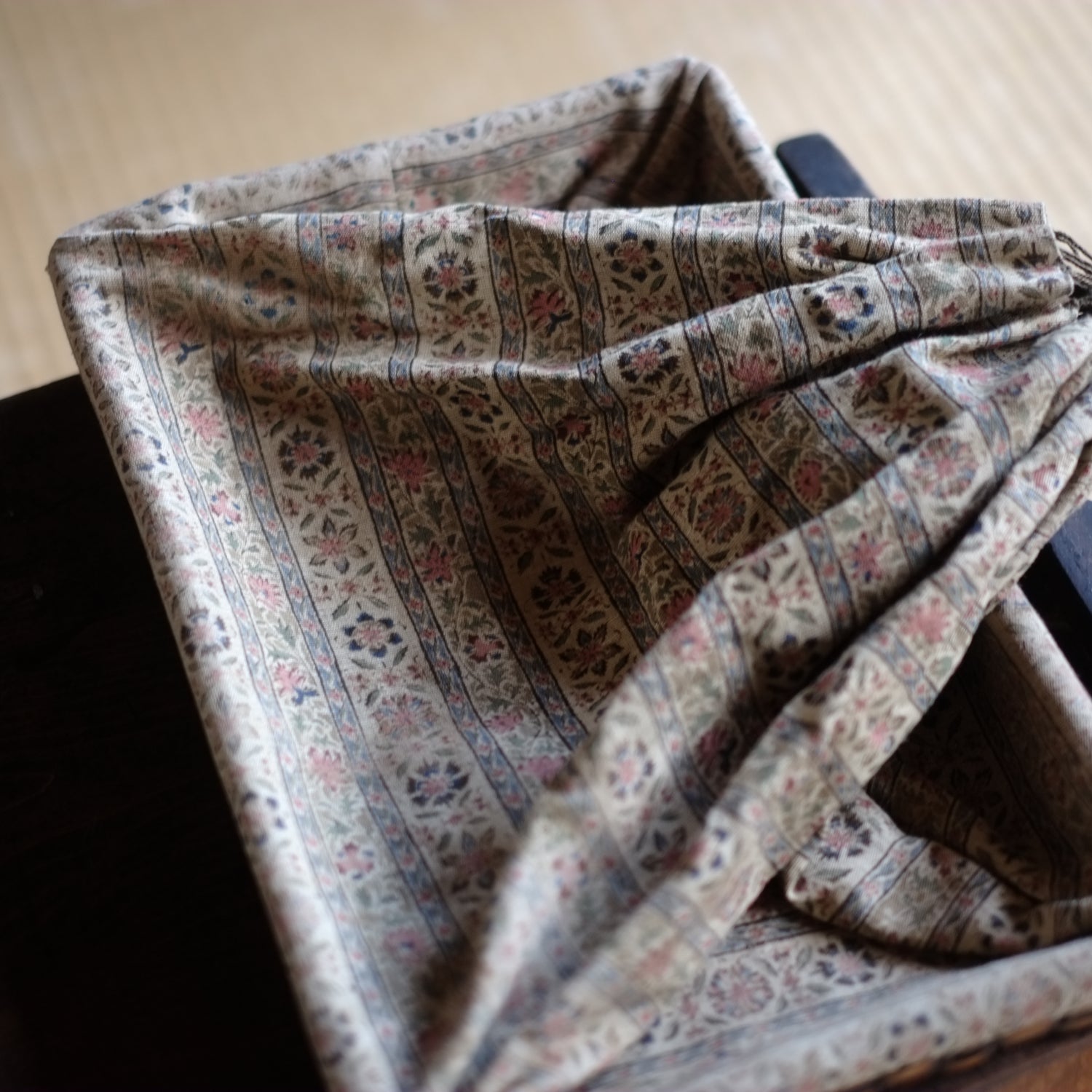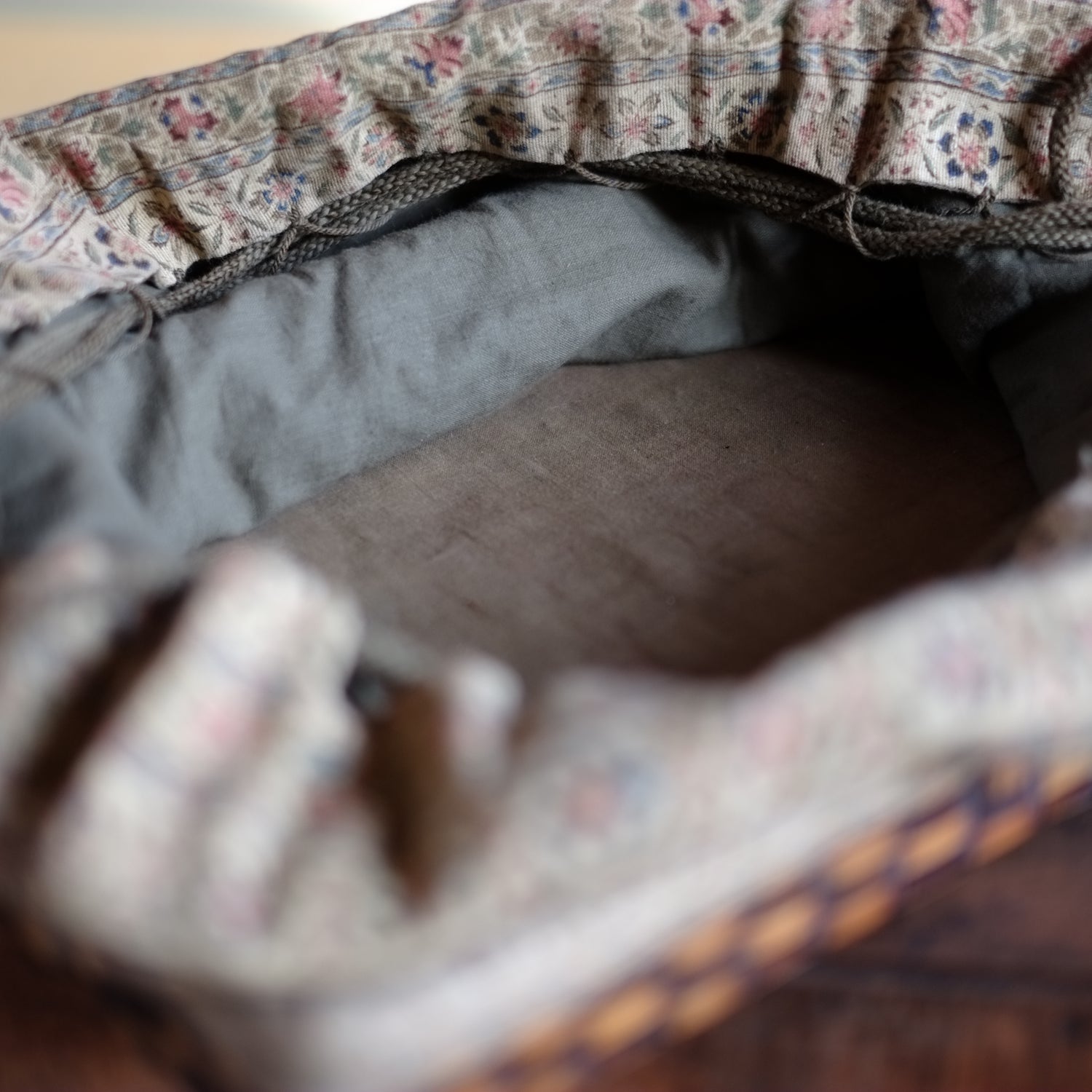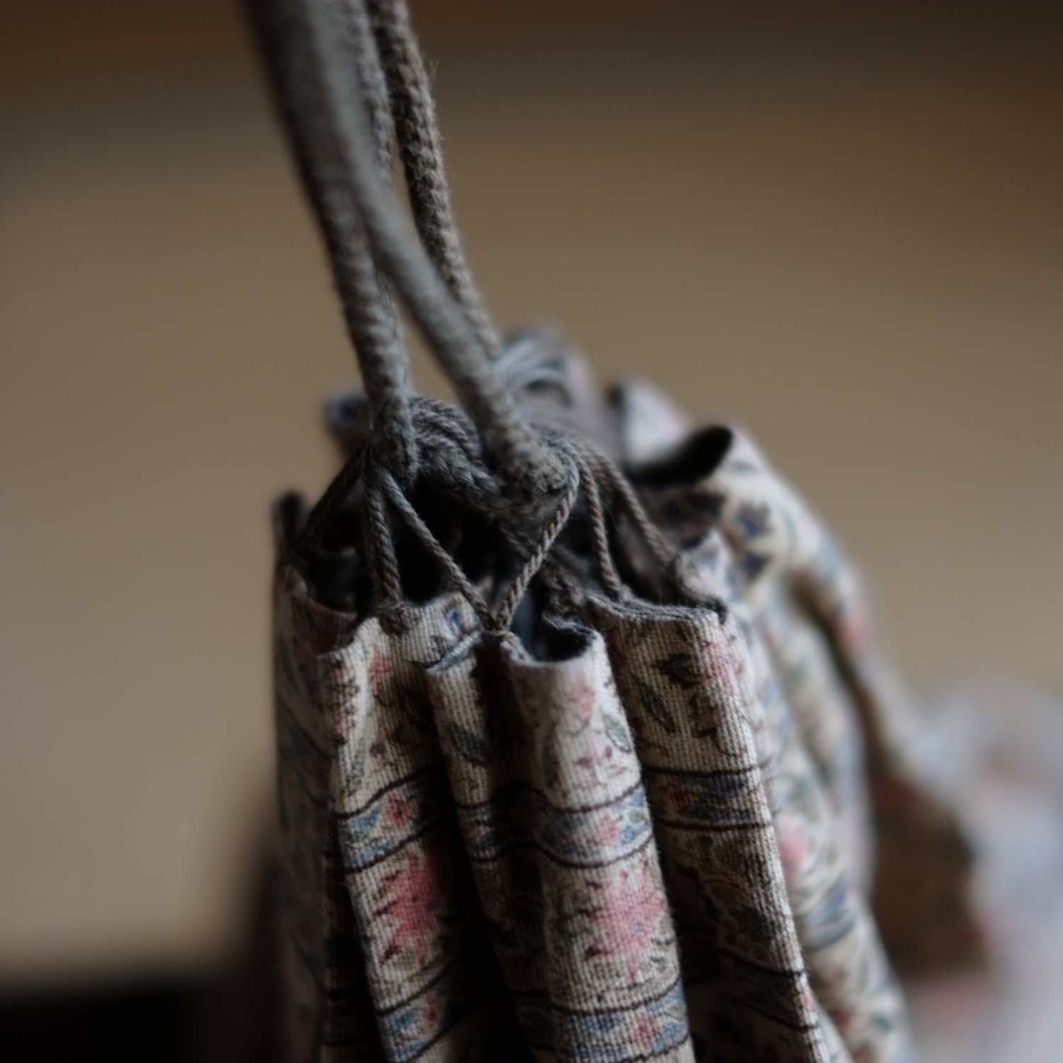時代 和更紗花唐草文 巾着籠物(大正-昭和期)
