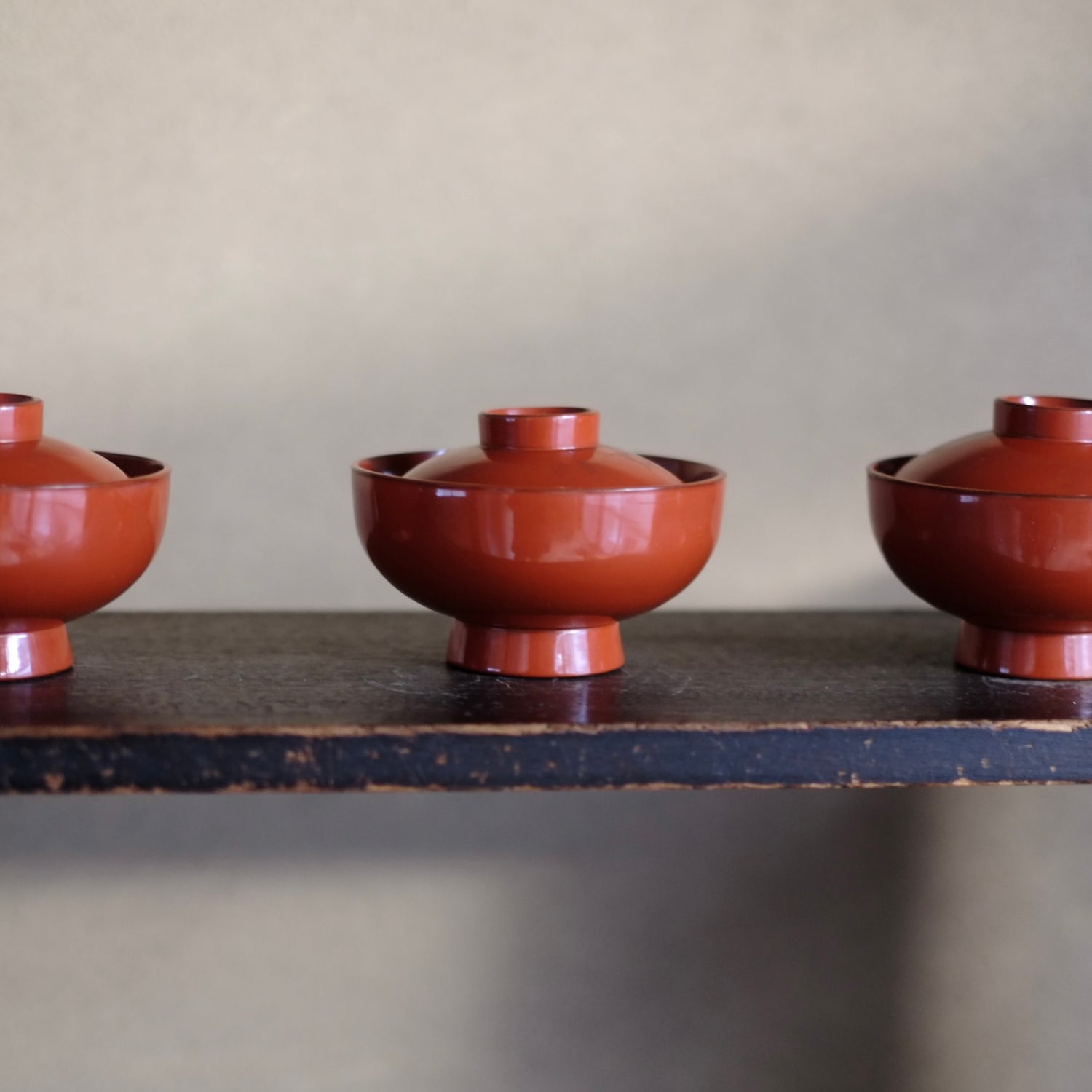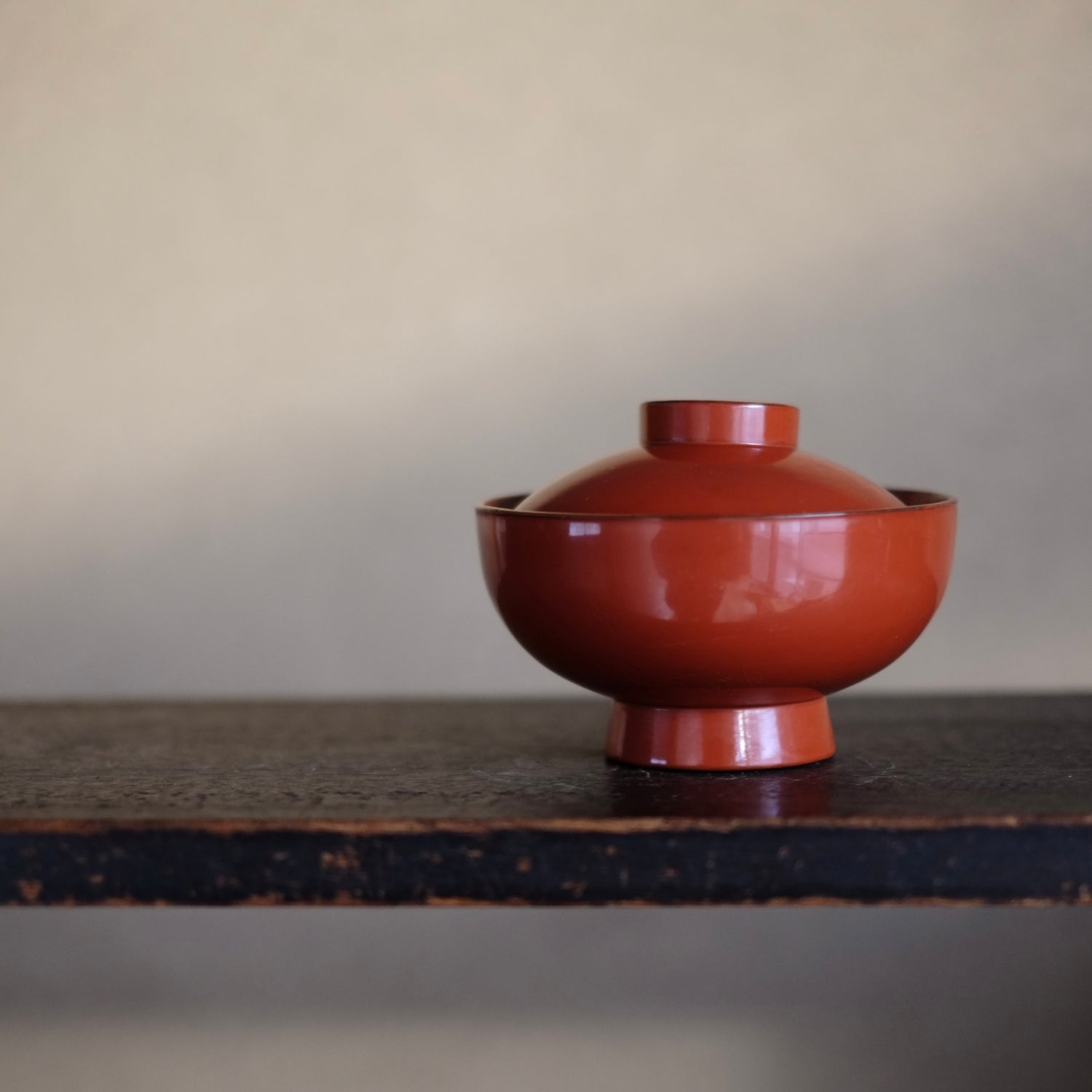 洗朱の発色が佳い根来の蓋付椀