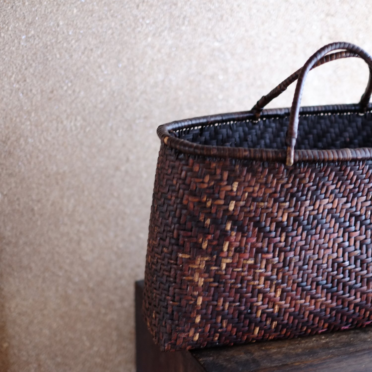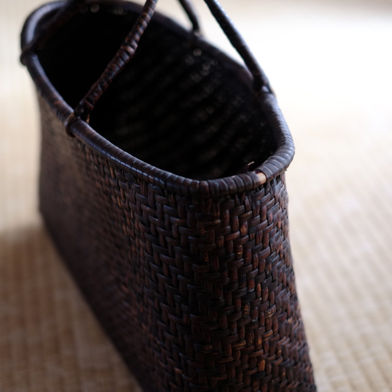 細やかに編み込まれた竹編の手提籠
