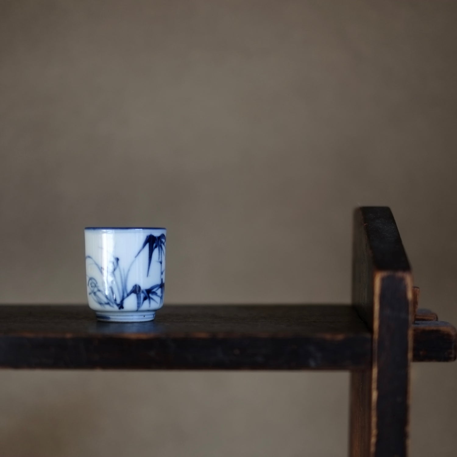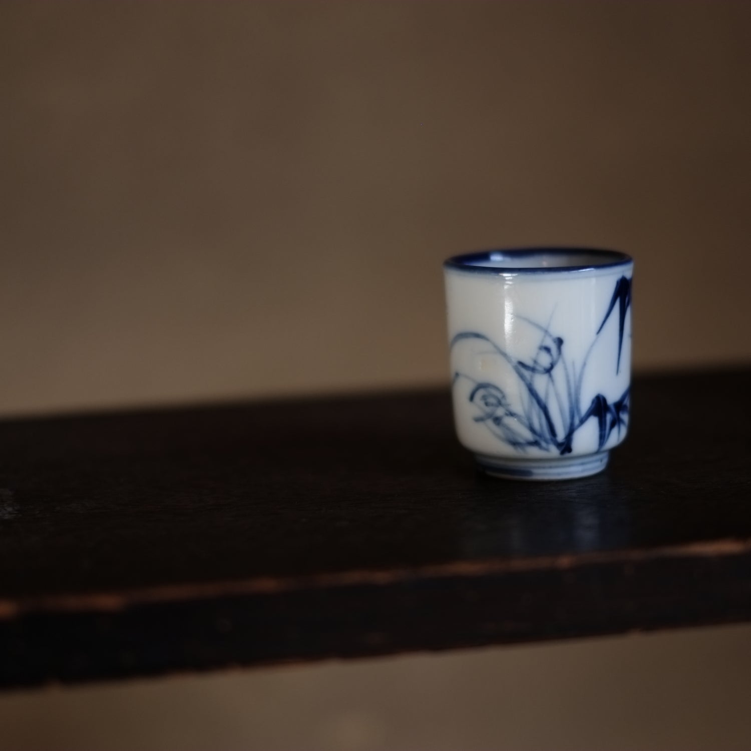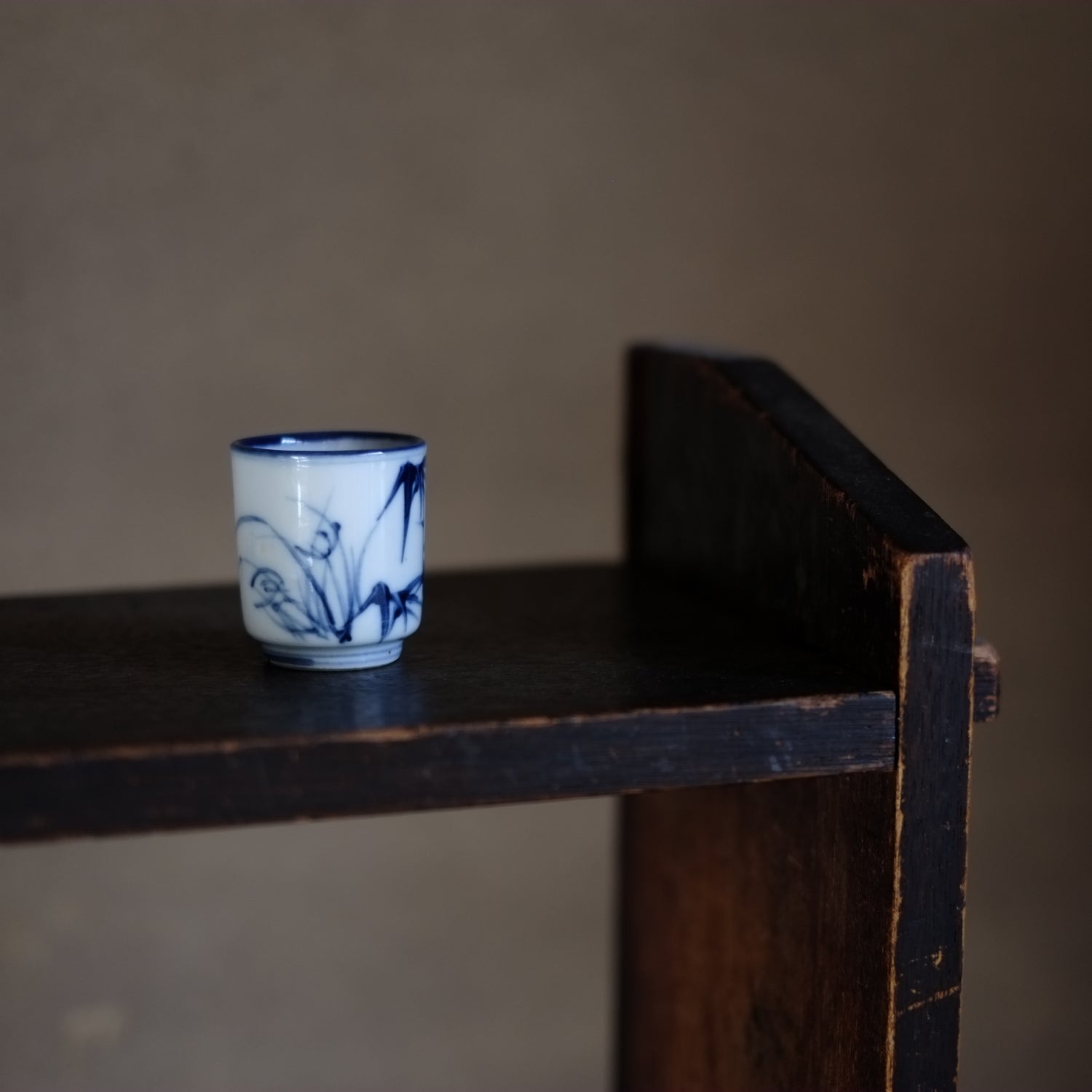 時代 笹文染付 覗き猪口(江戸-明治)19世紀