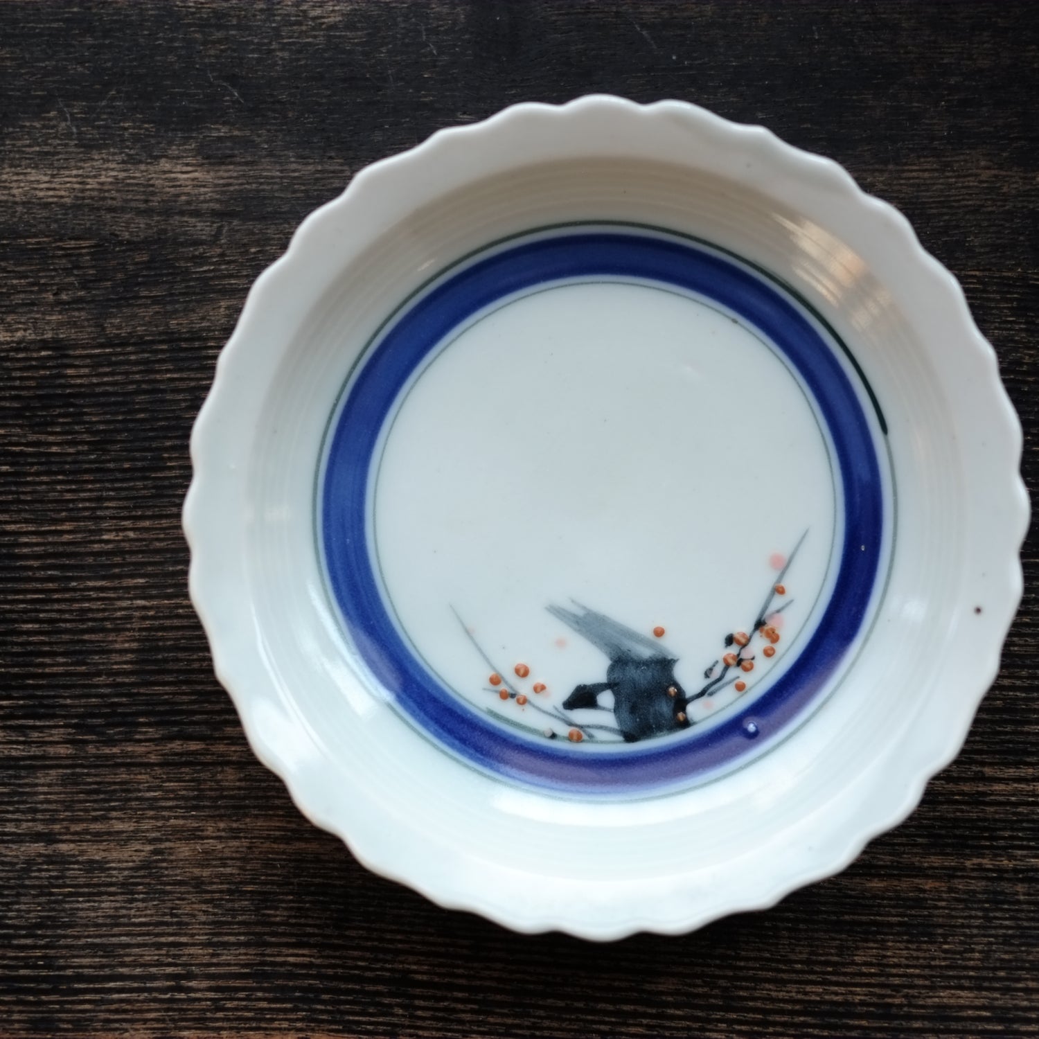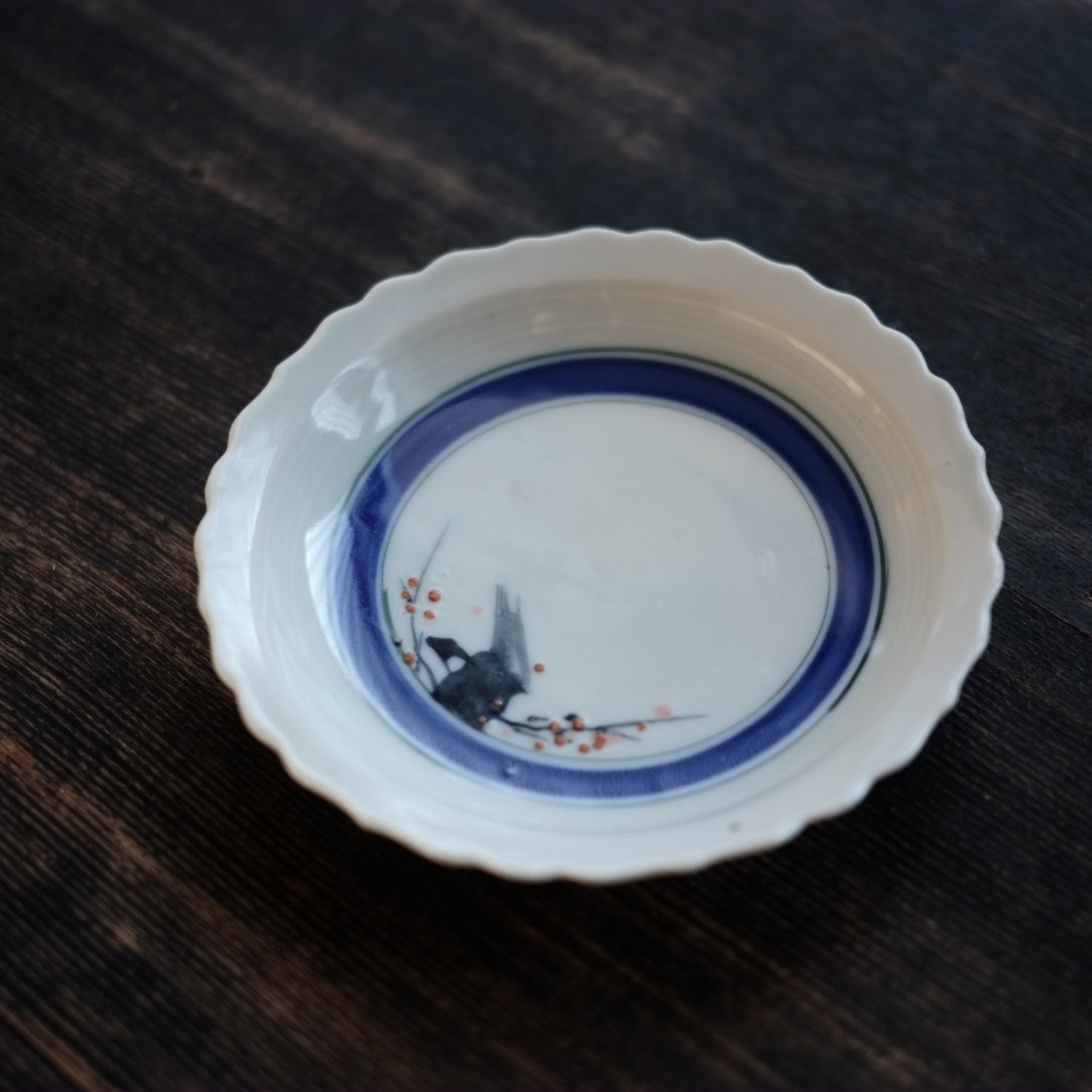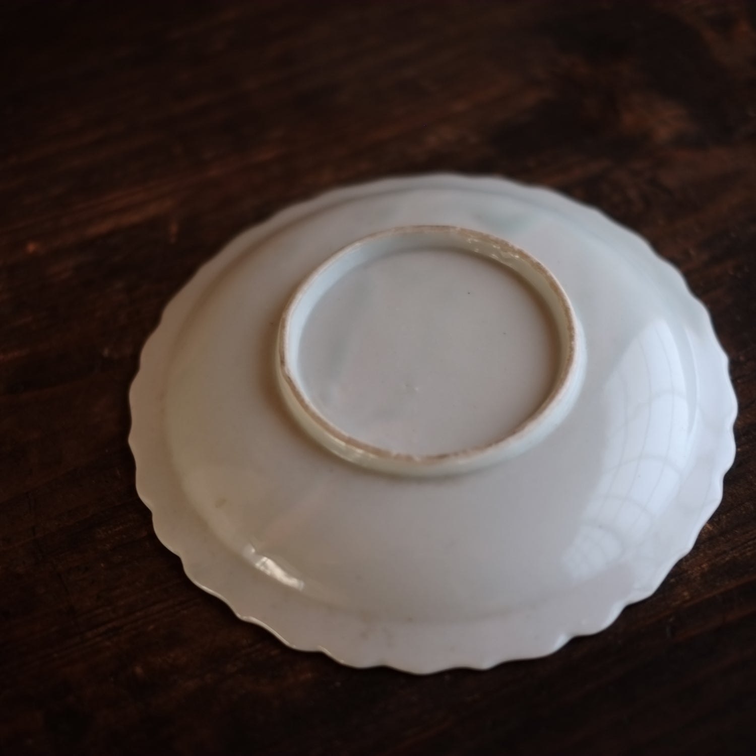 時代 輪線粒手梅枝図 輪花平皿 (江戸後期-明治時代)