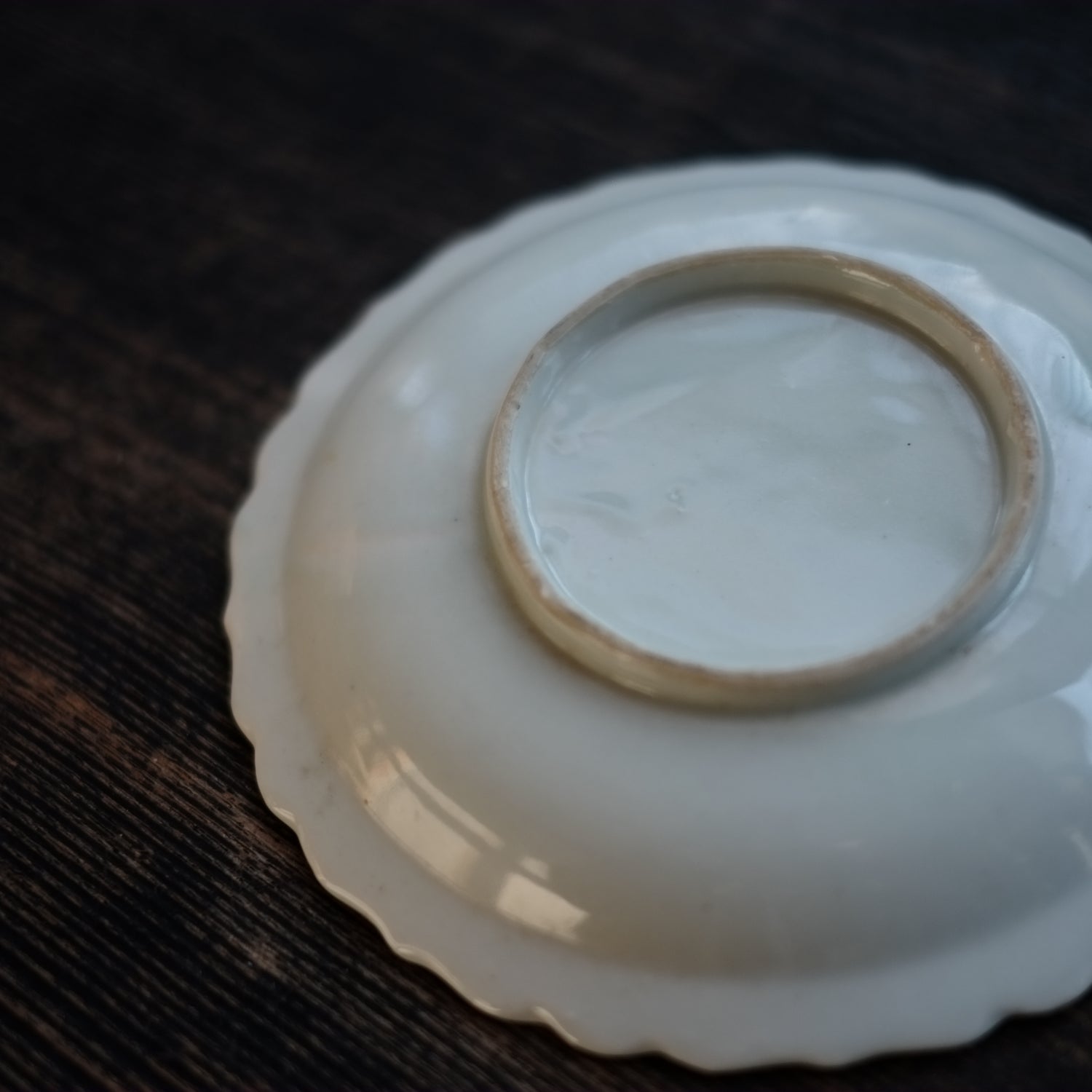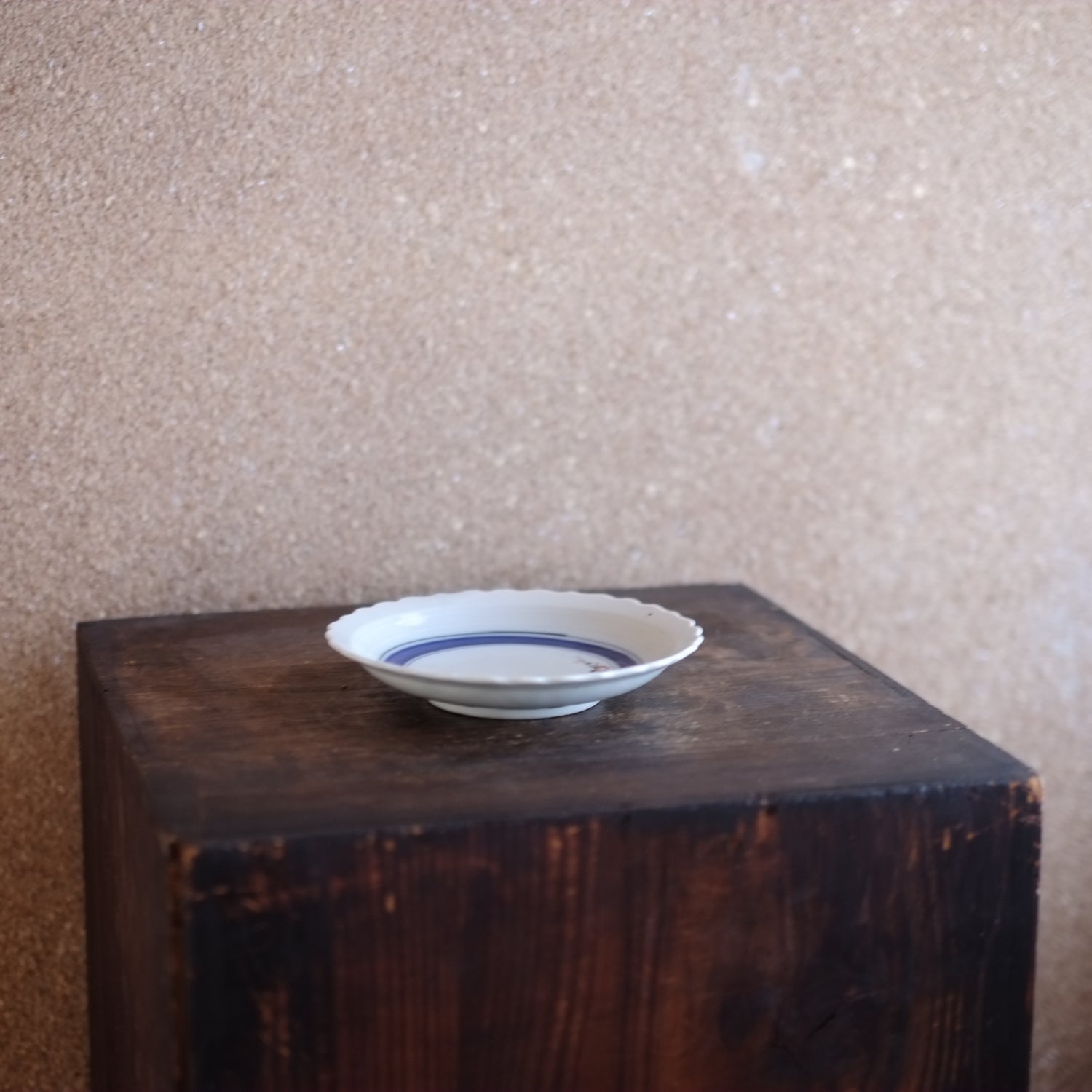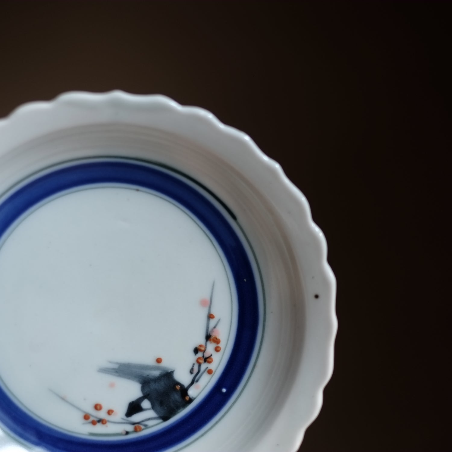 時代 輪線粒手梅枝図 輪花平皿 (江戸後期-明治時代)