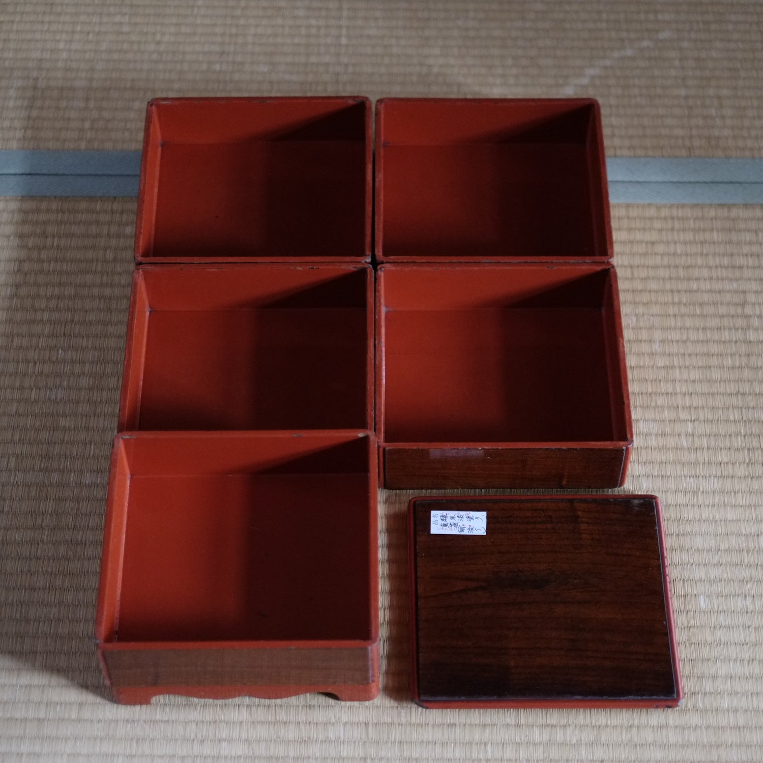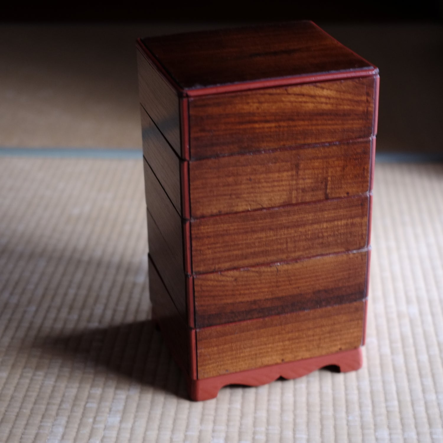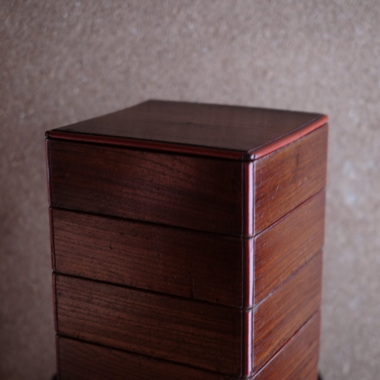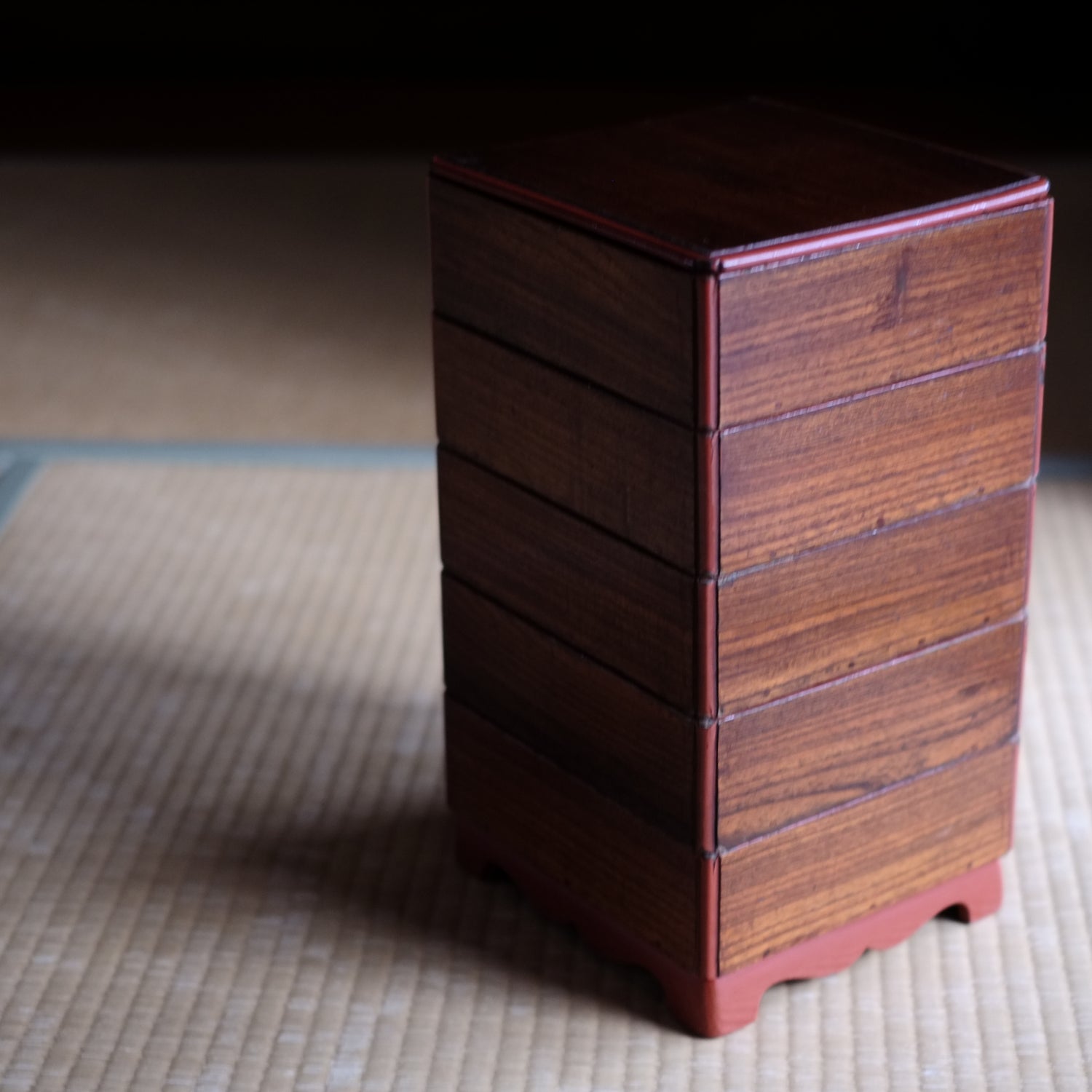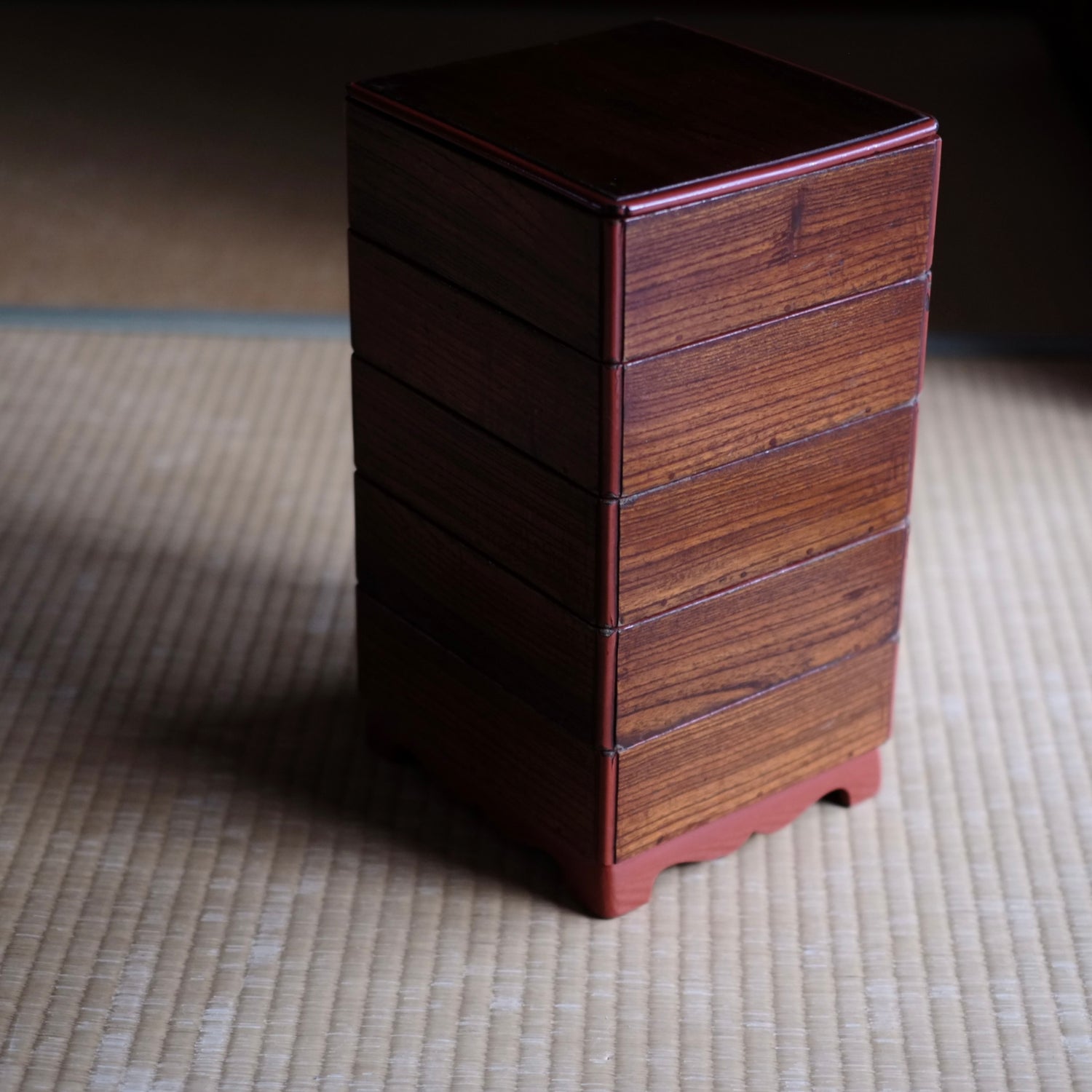 幕末-明治初期頃の縁朱木地塗の五段重箱