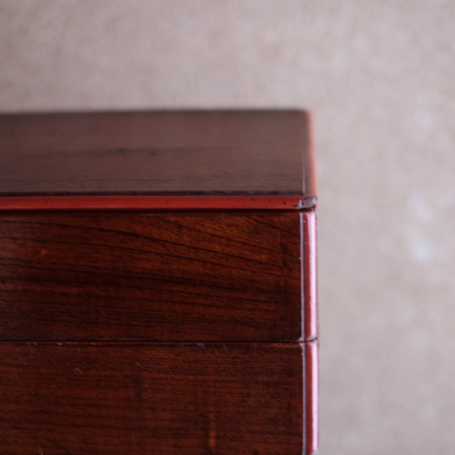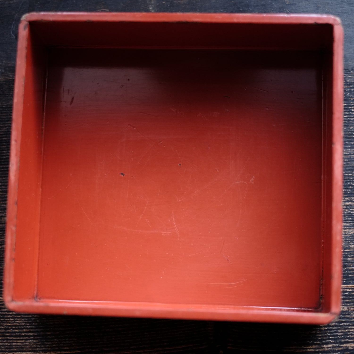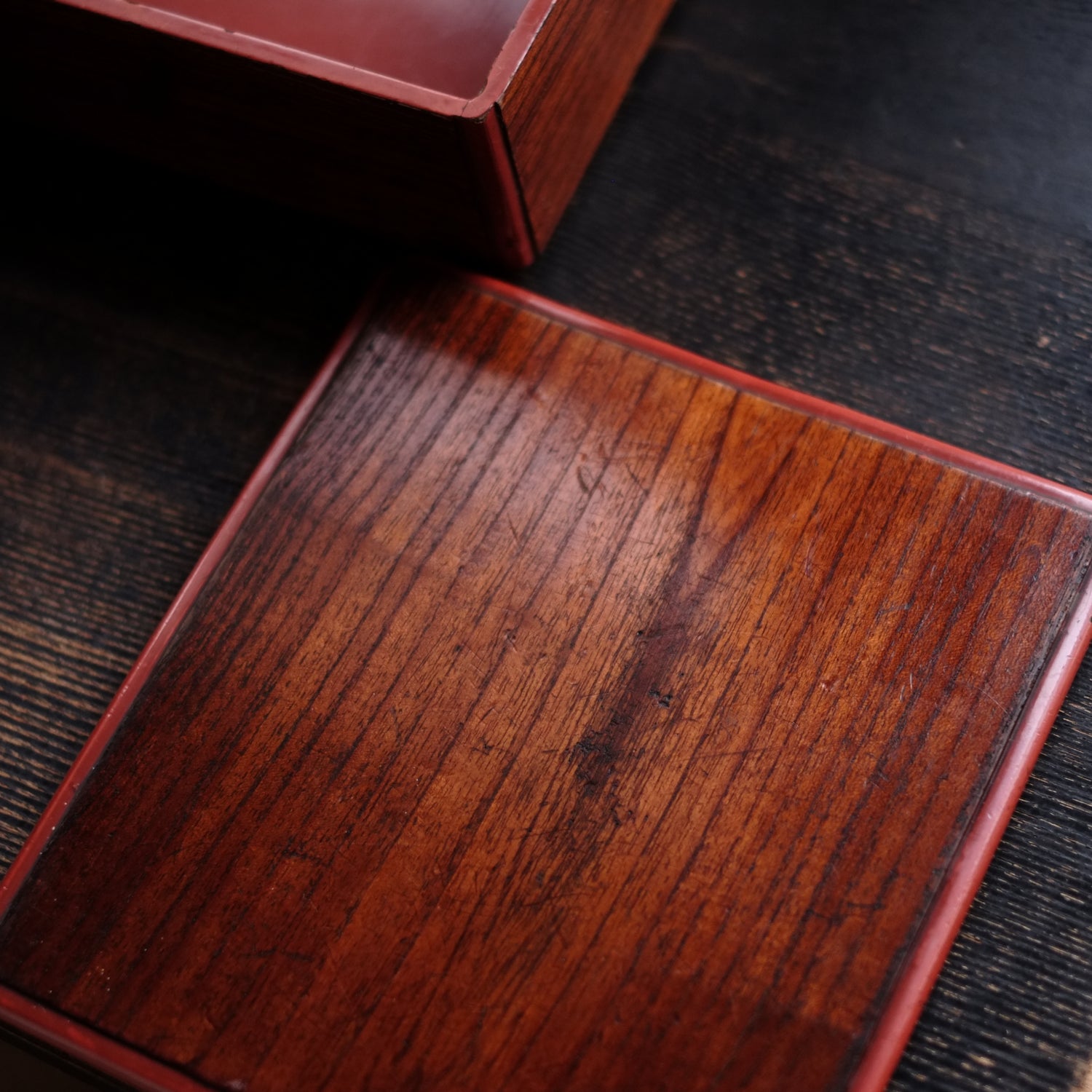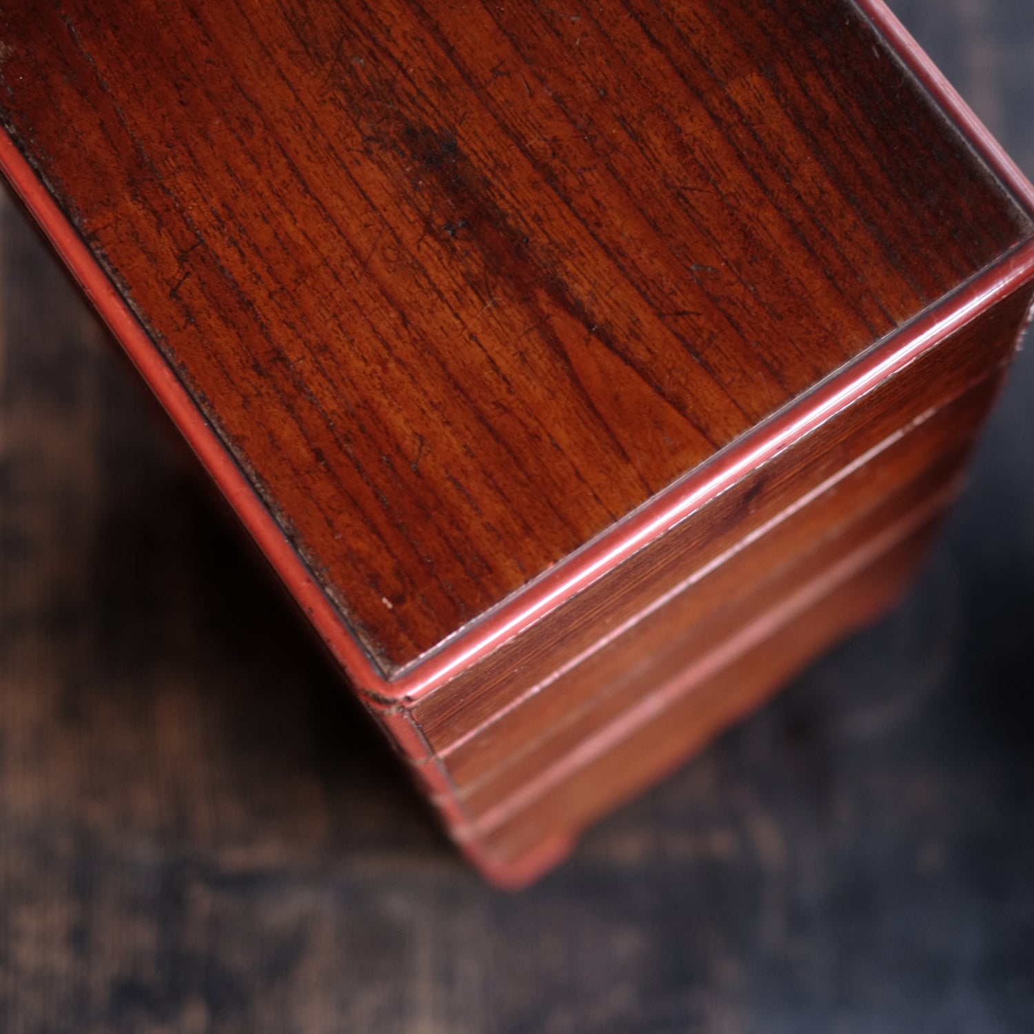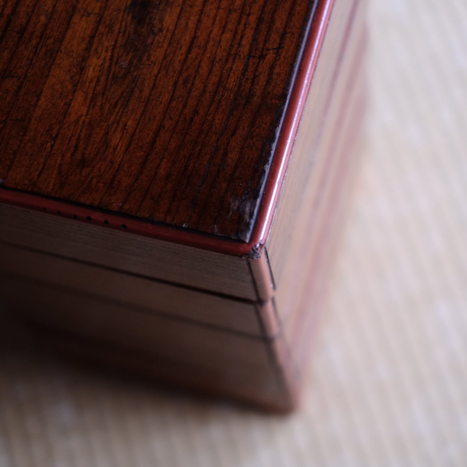 蓋に"縁朱漆塗り重箱明治〜"の記載が