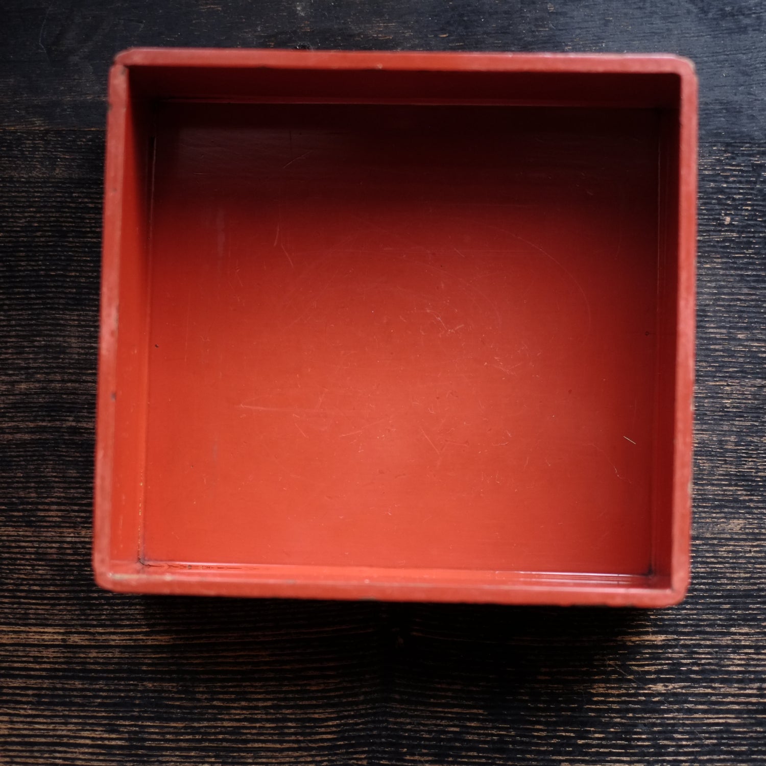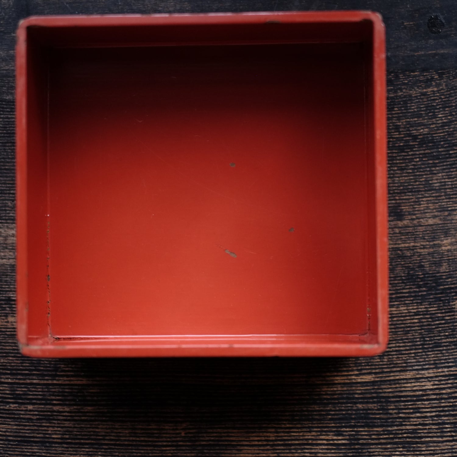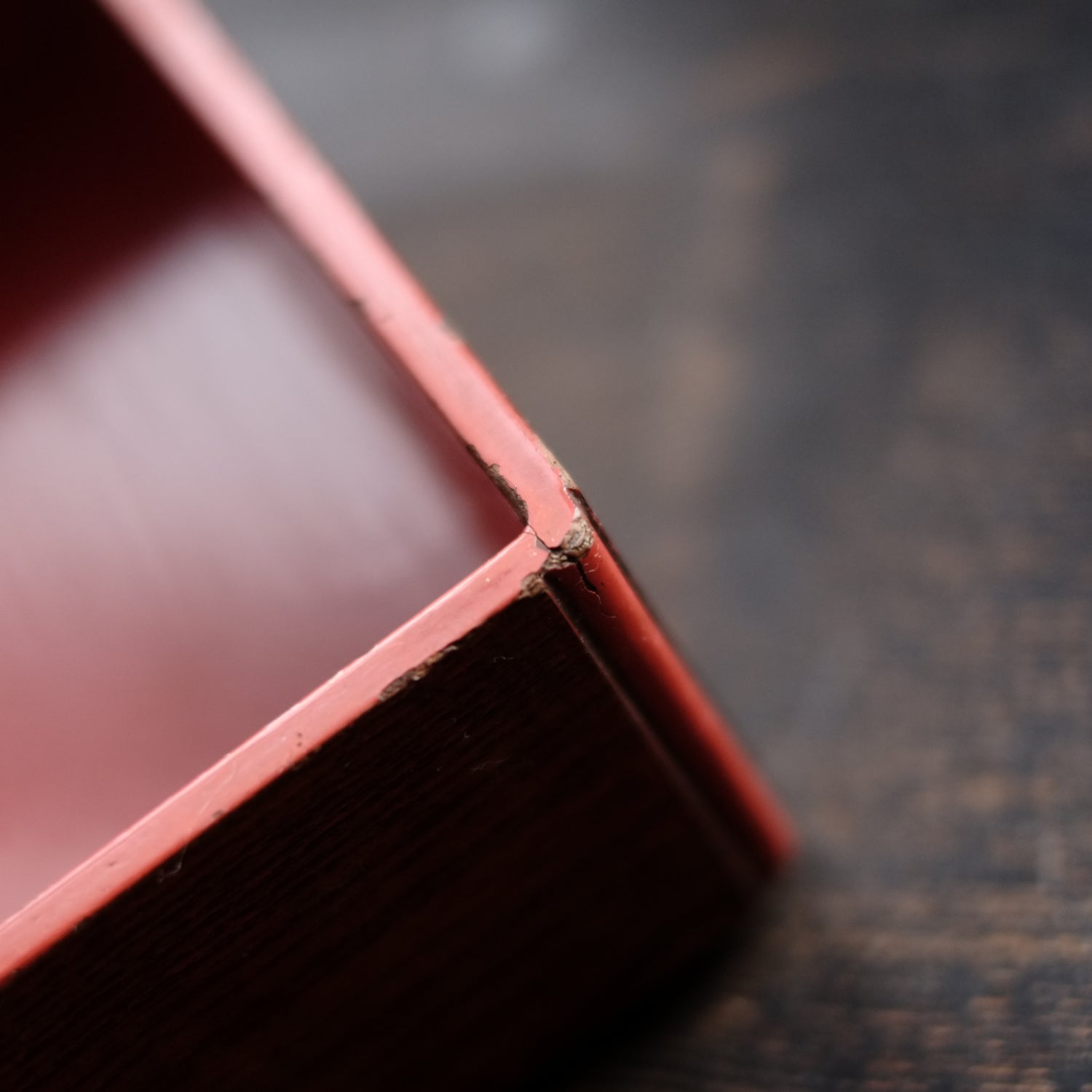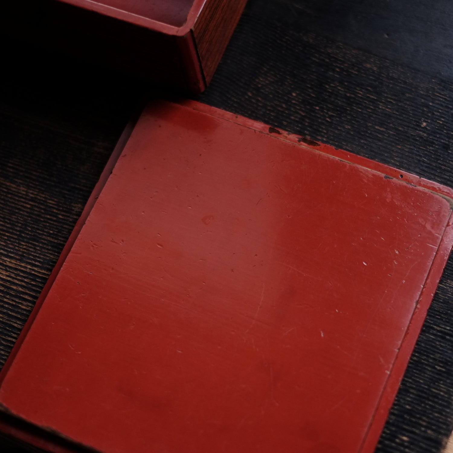 蓋に"縁朱漆塗り重箱明治〜"の記載が