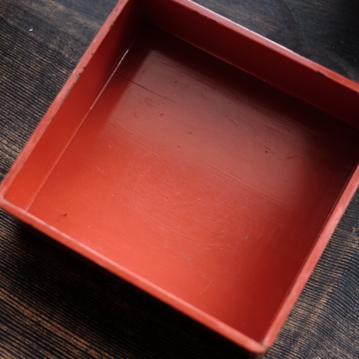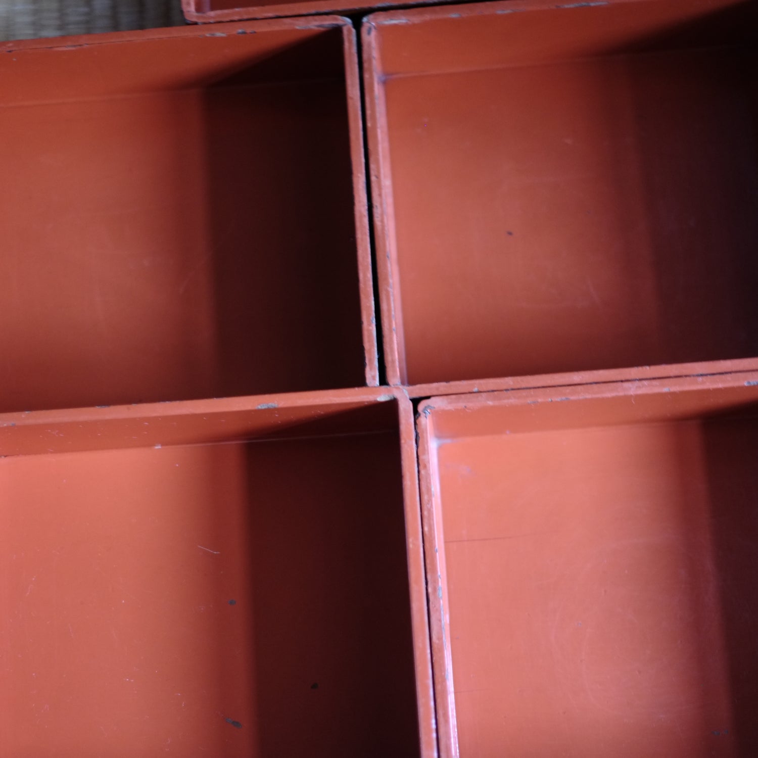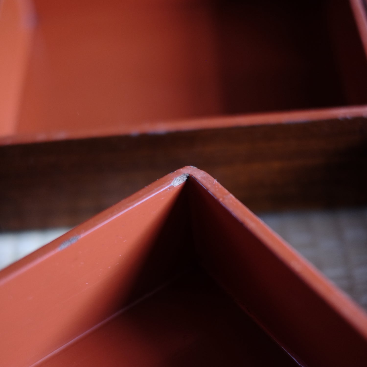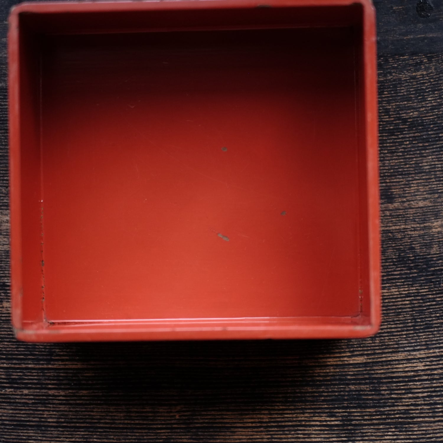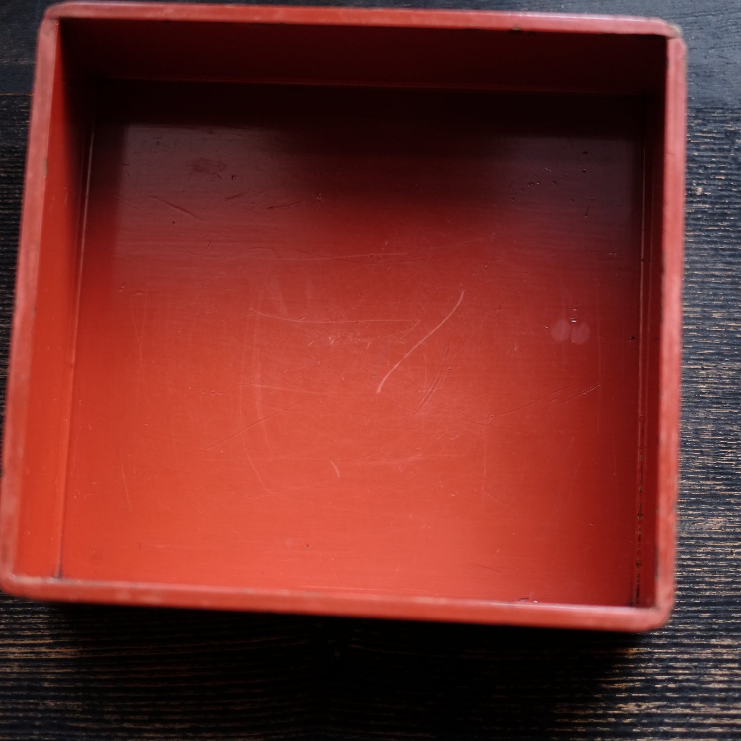 蓋に"縁朱漆塗り重箱明治〜"の記載が