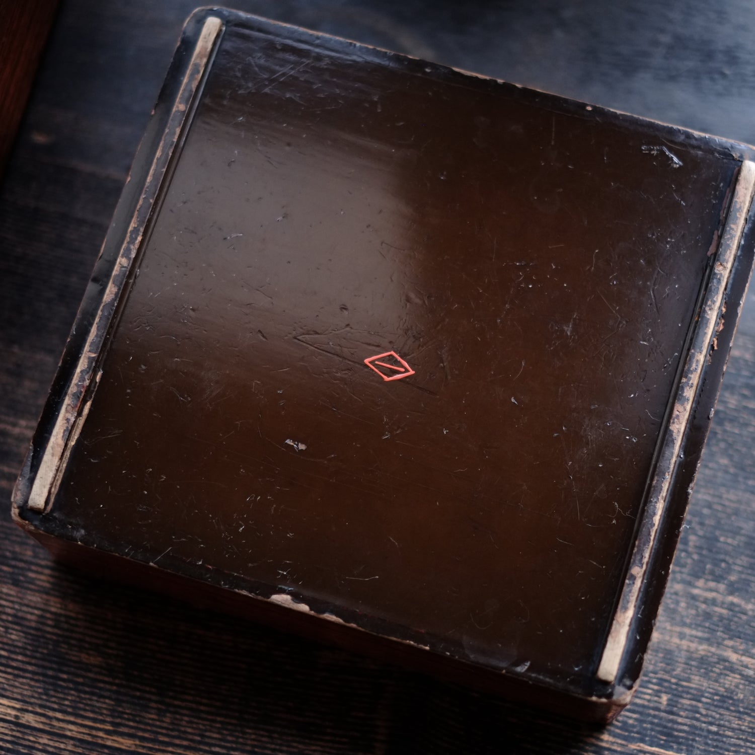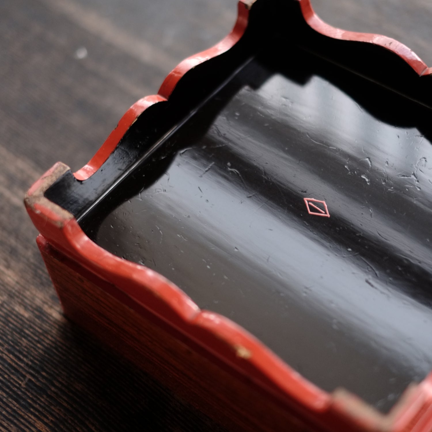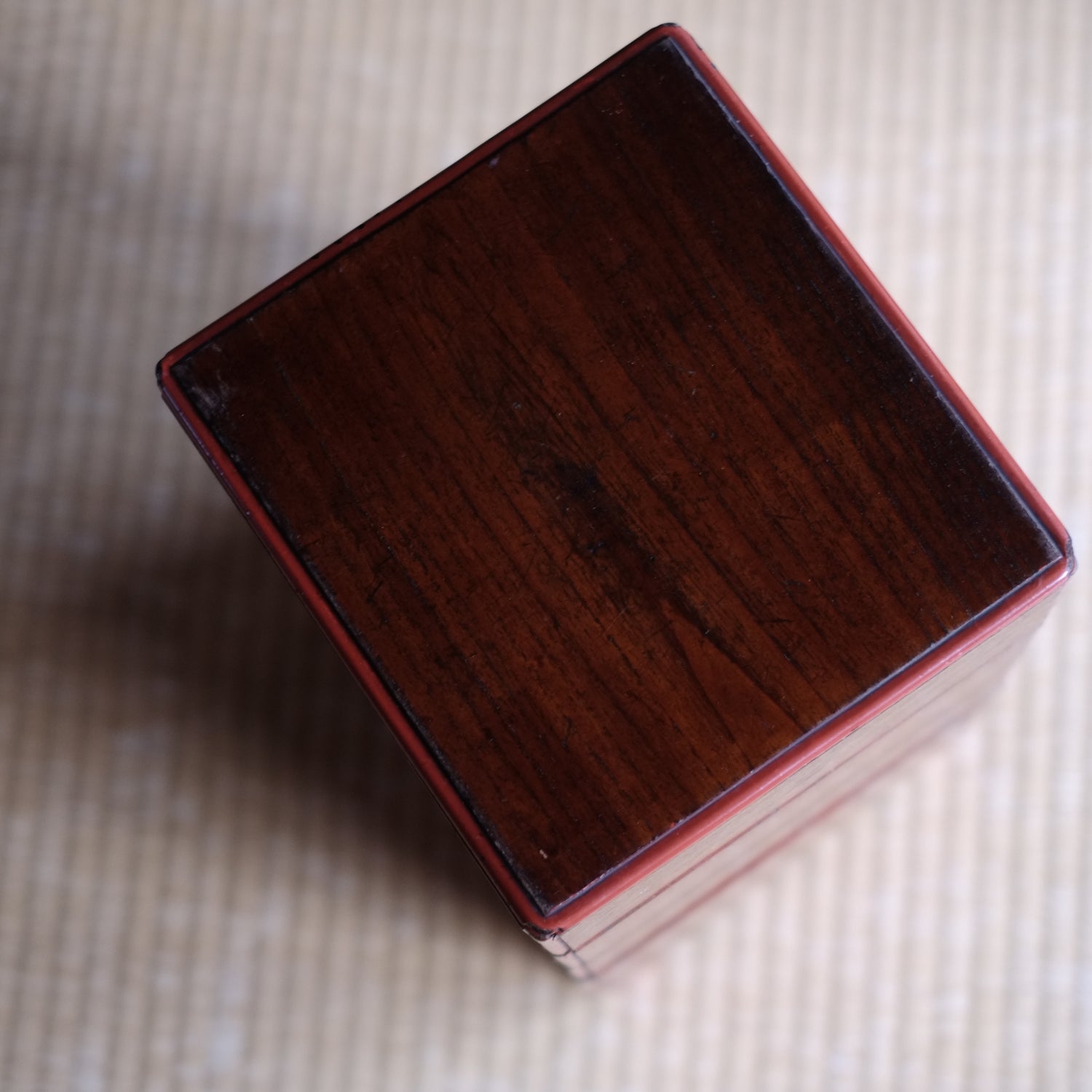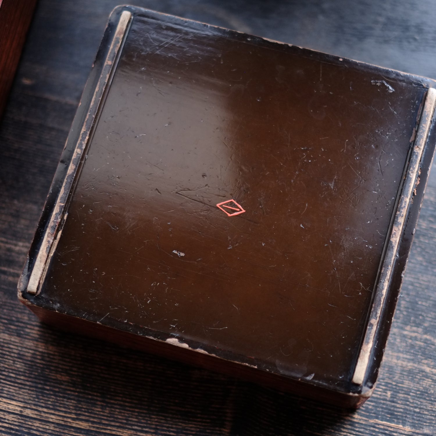 蓋に"縁朱漆塗り重箱明治〜"の記載が