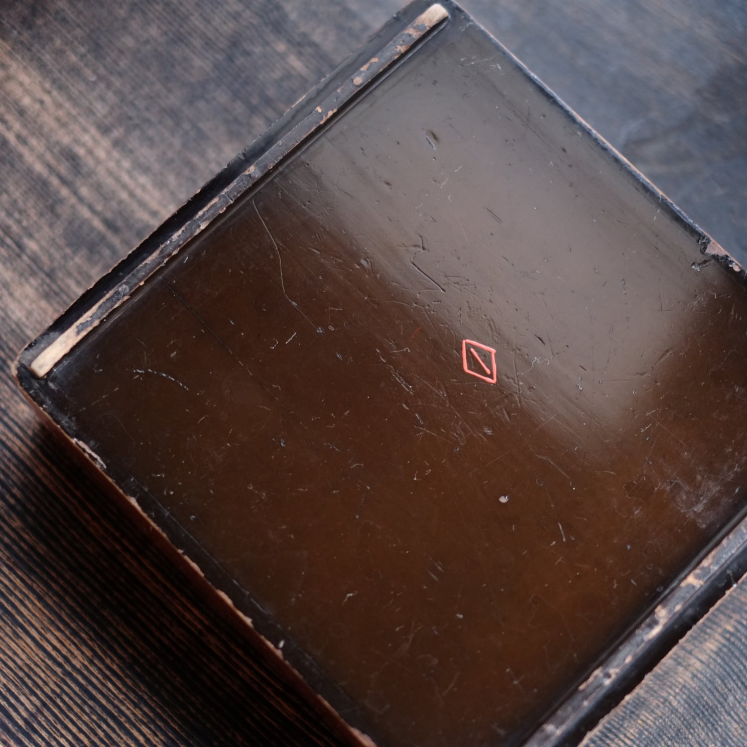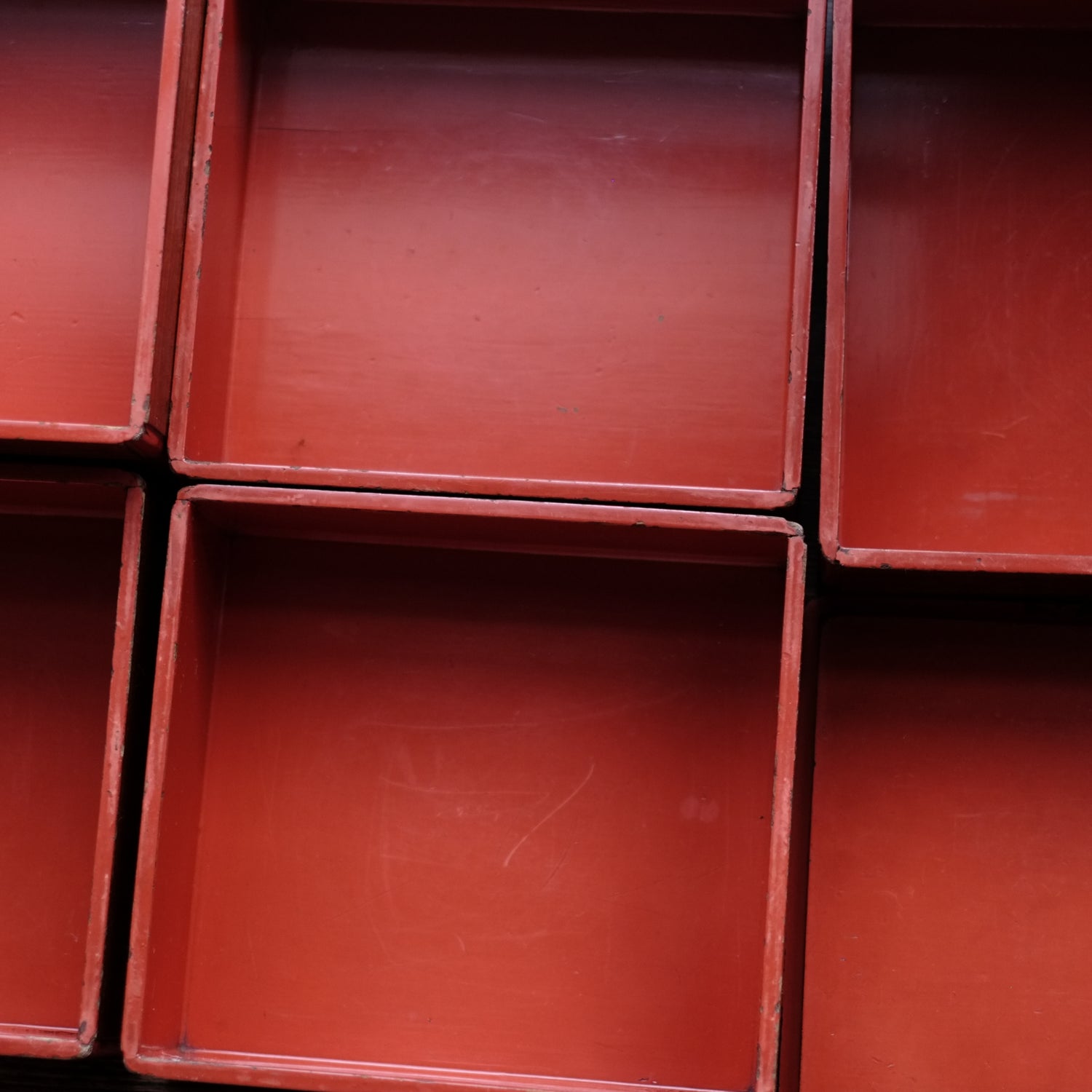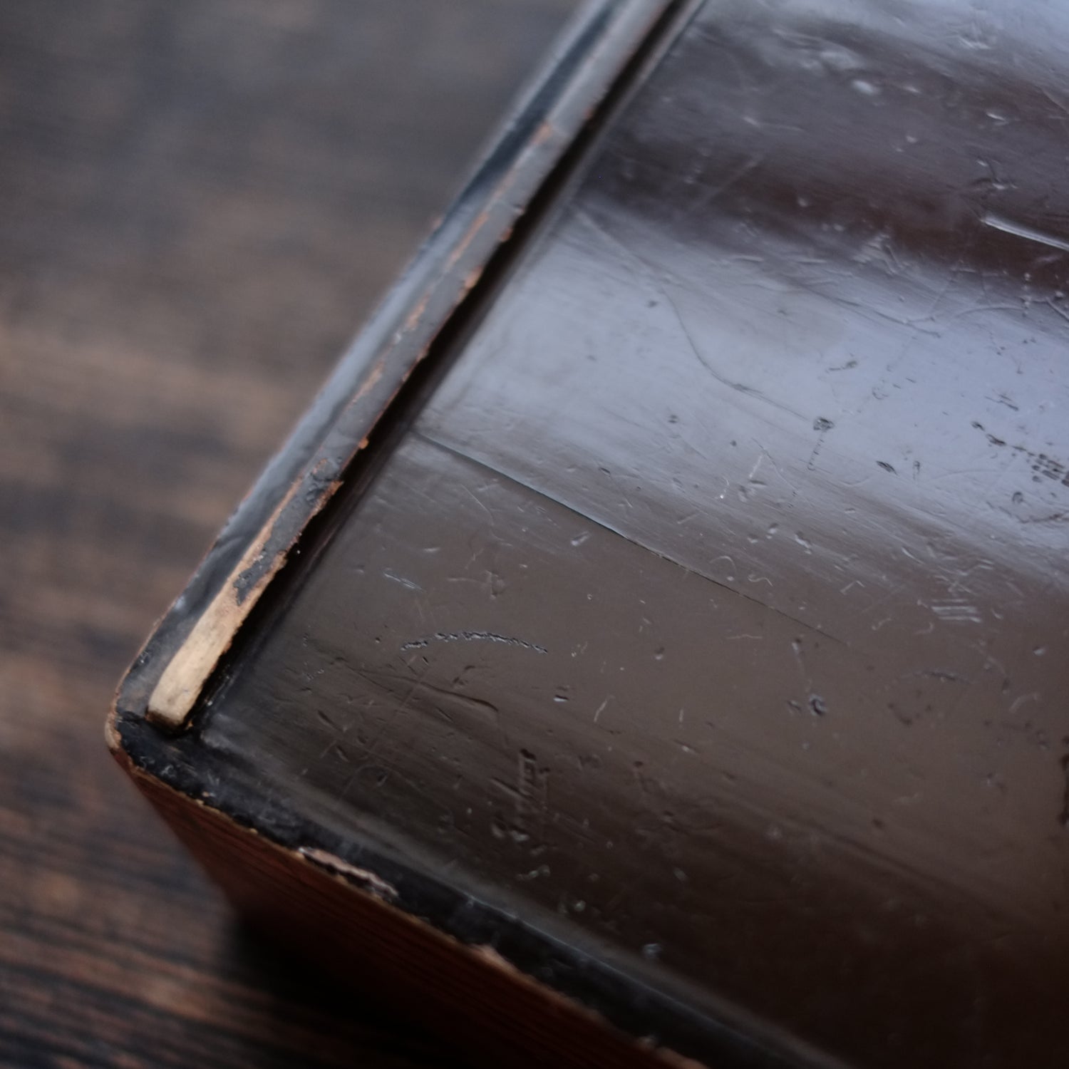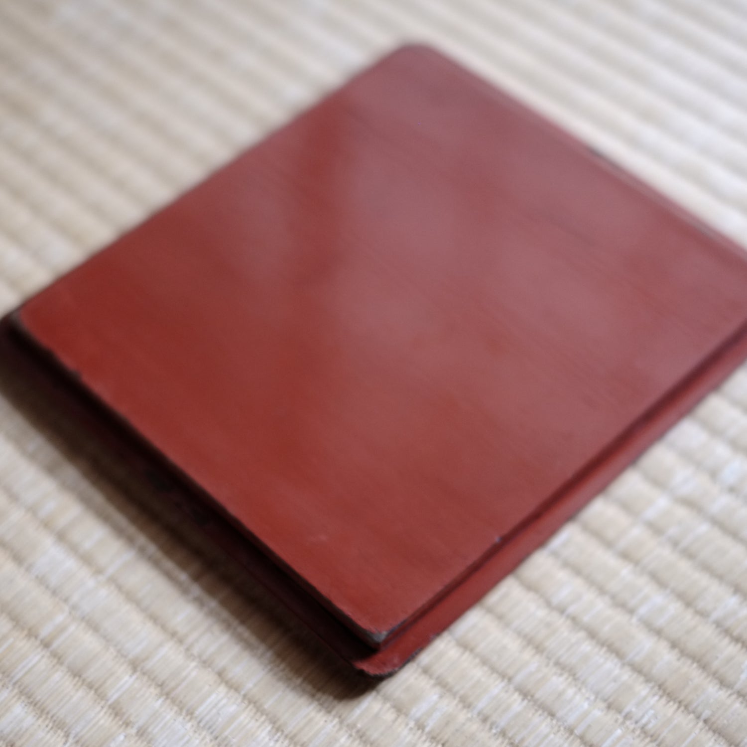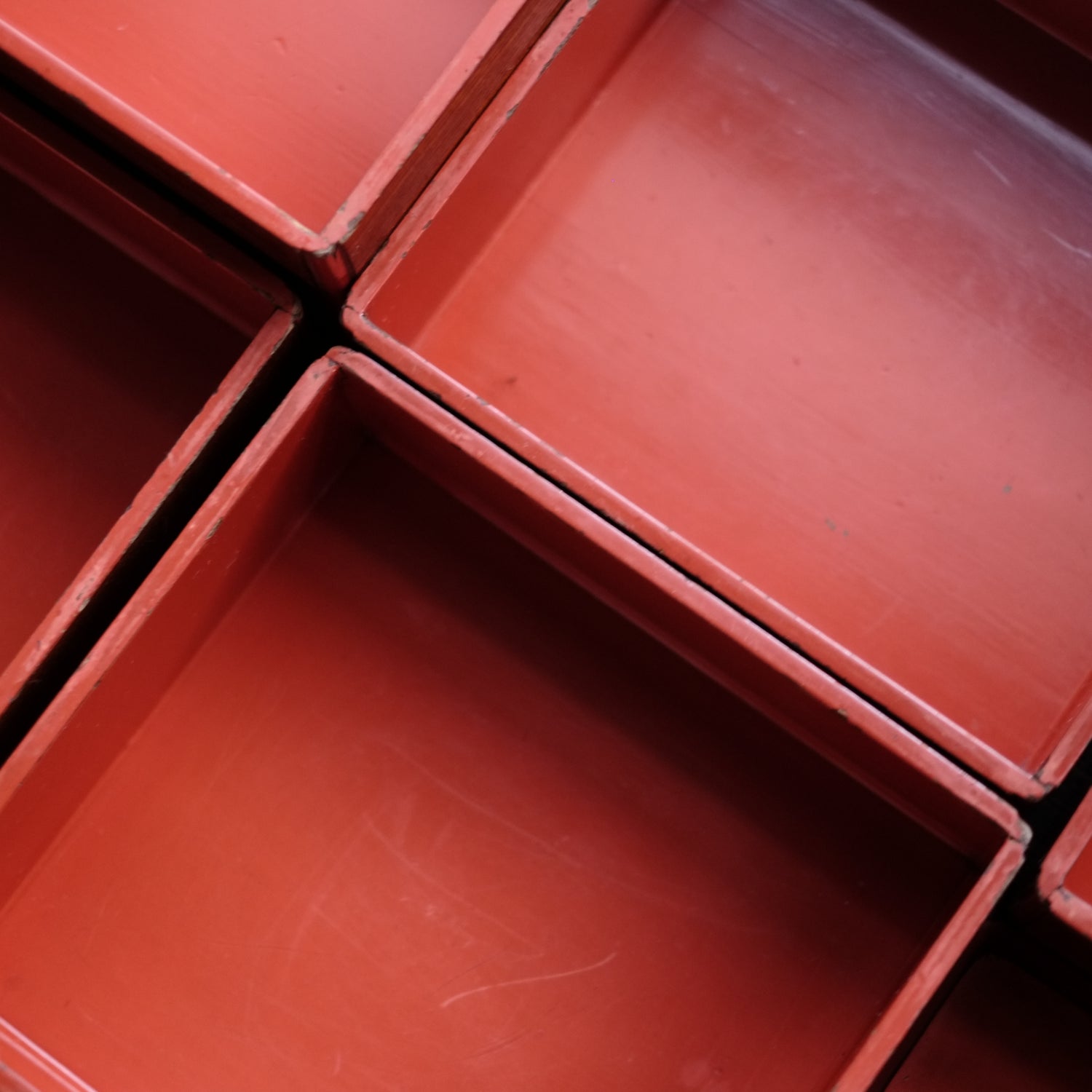 蓋に"縁朱漆塗り重箱明治〜"の記載が