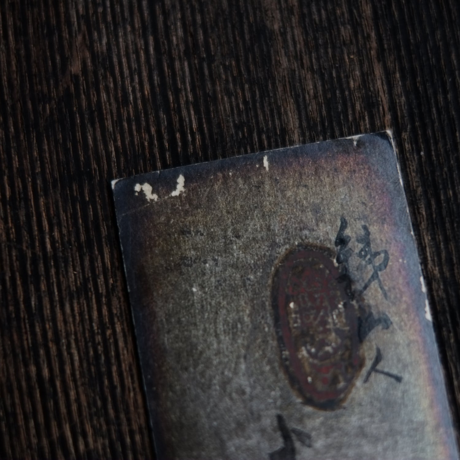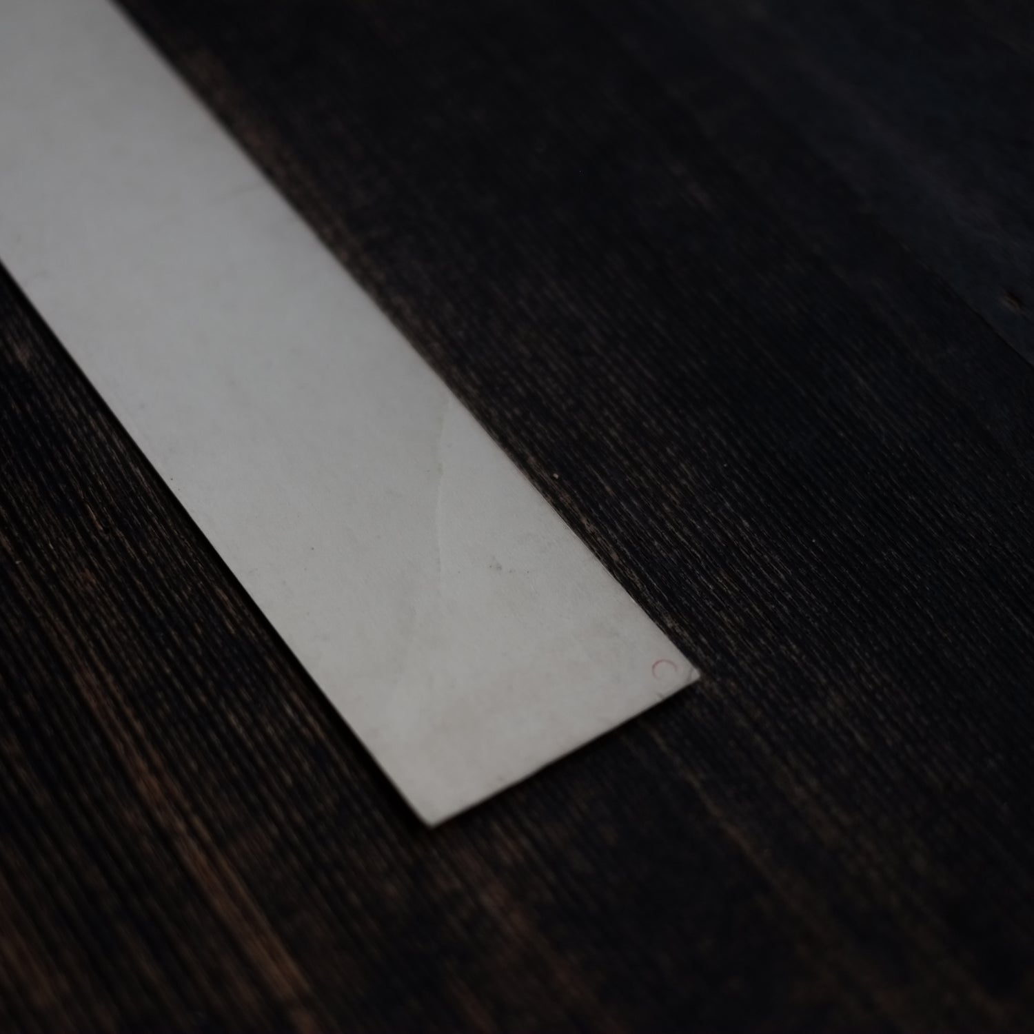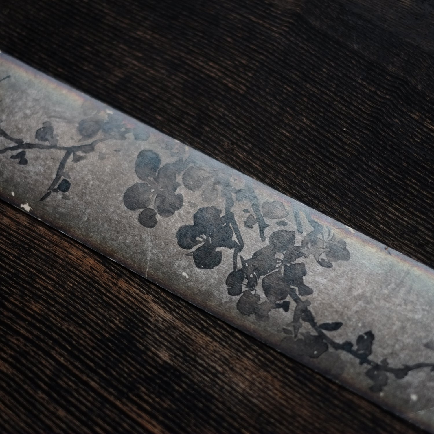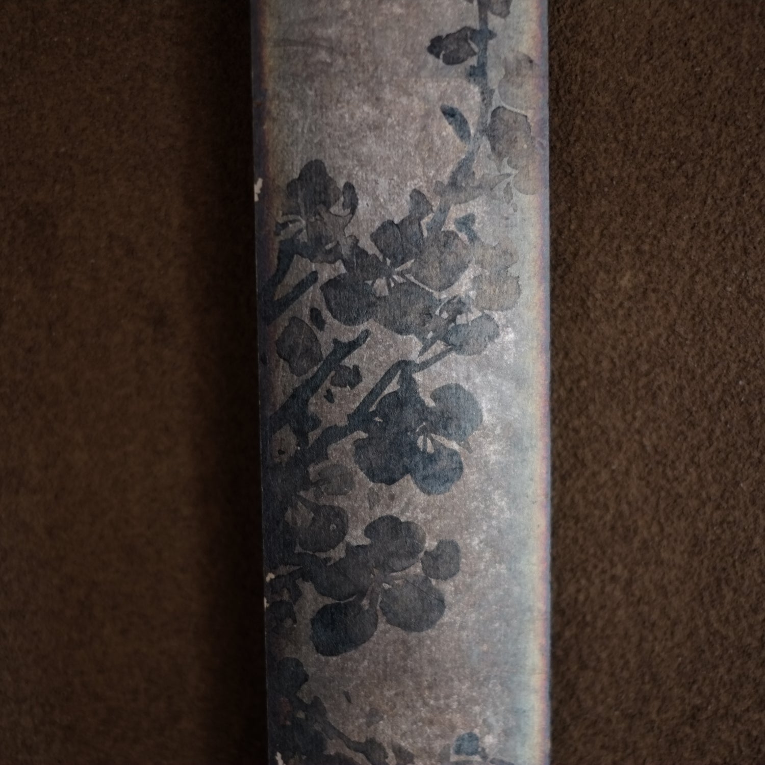 墨のみで描いた銀地紙本の梅図短冊一幅
