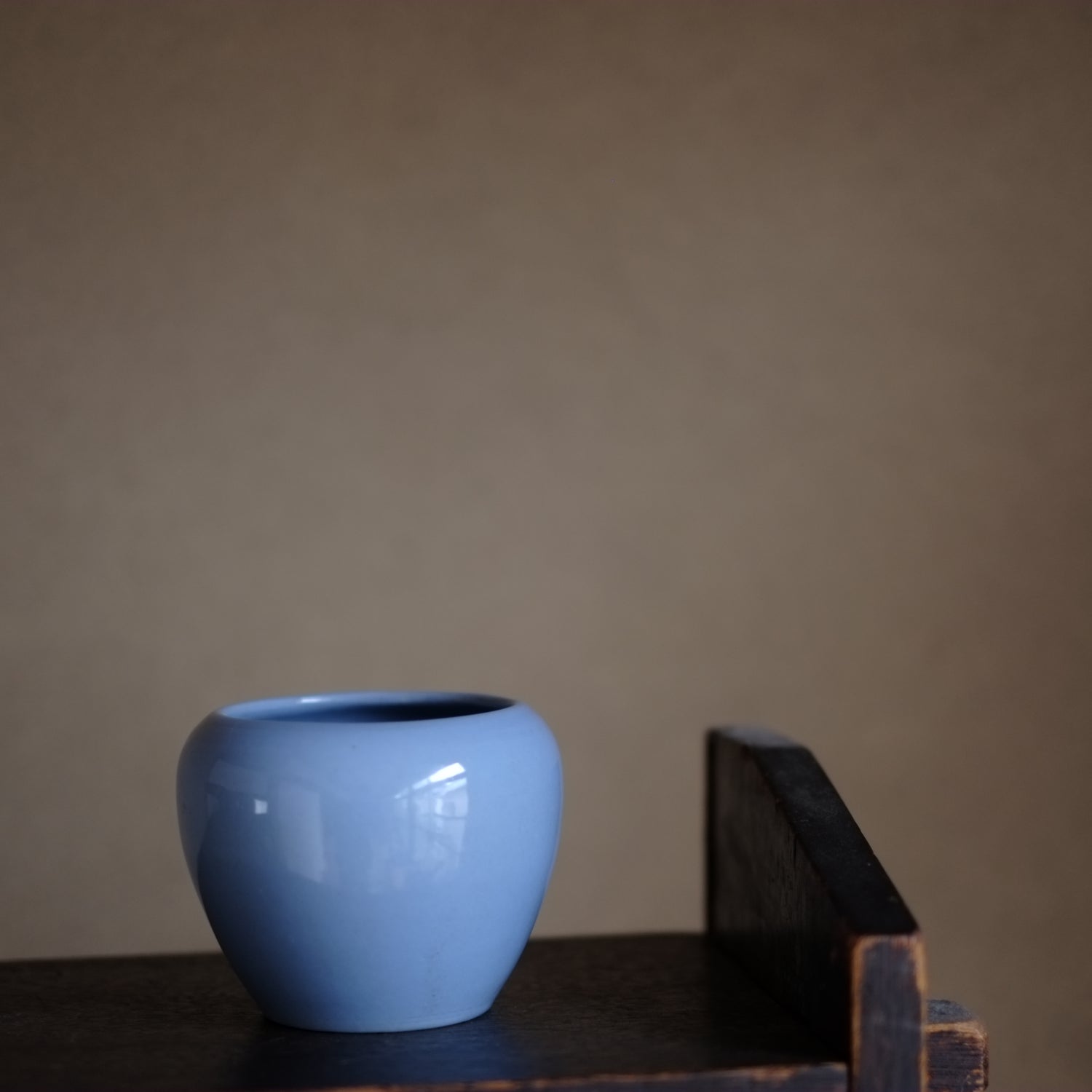 仄かな薄青の釉調が印象的な小壺