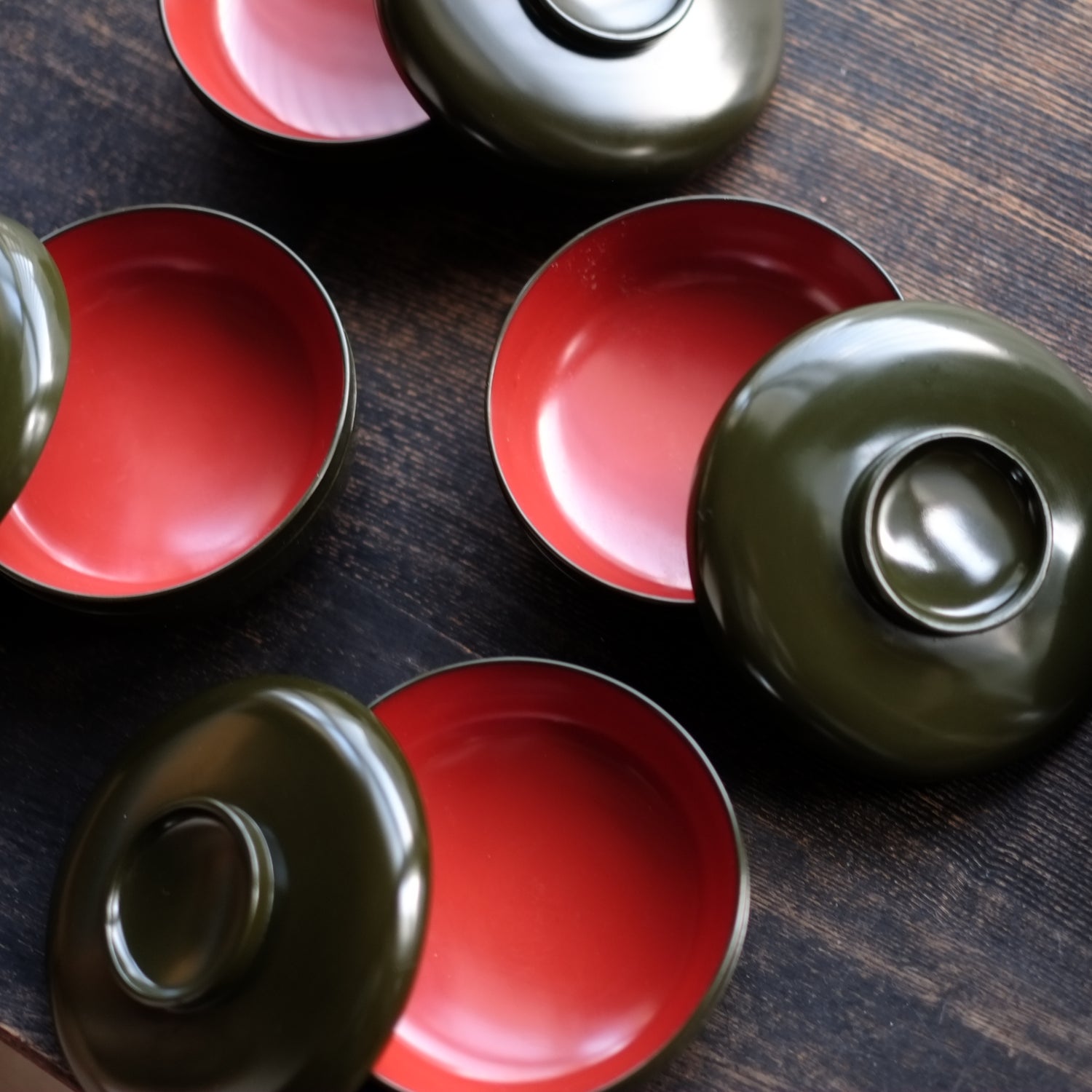 青漆内朱塗 布着蓋付平椀 5客セット (明治初期)