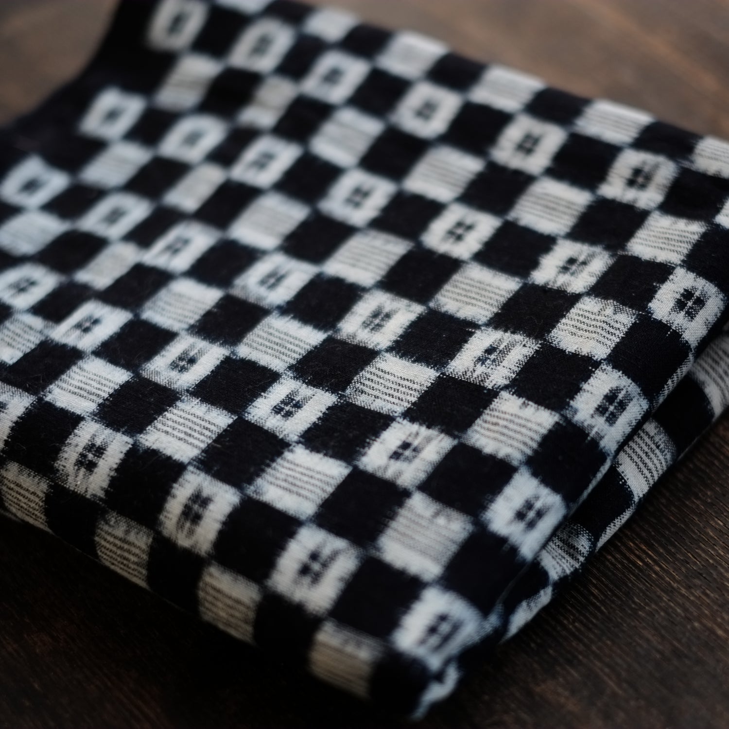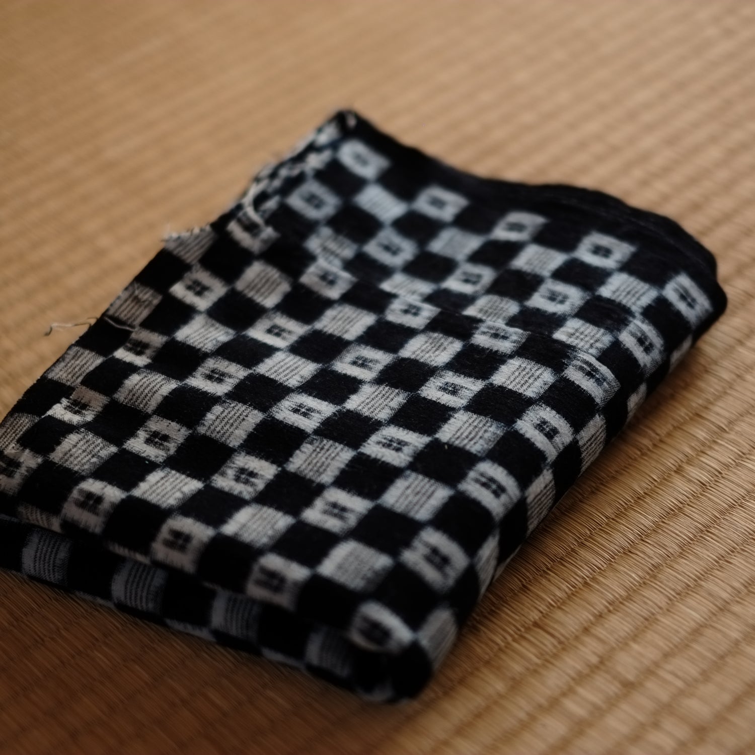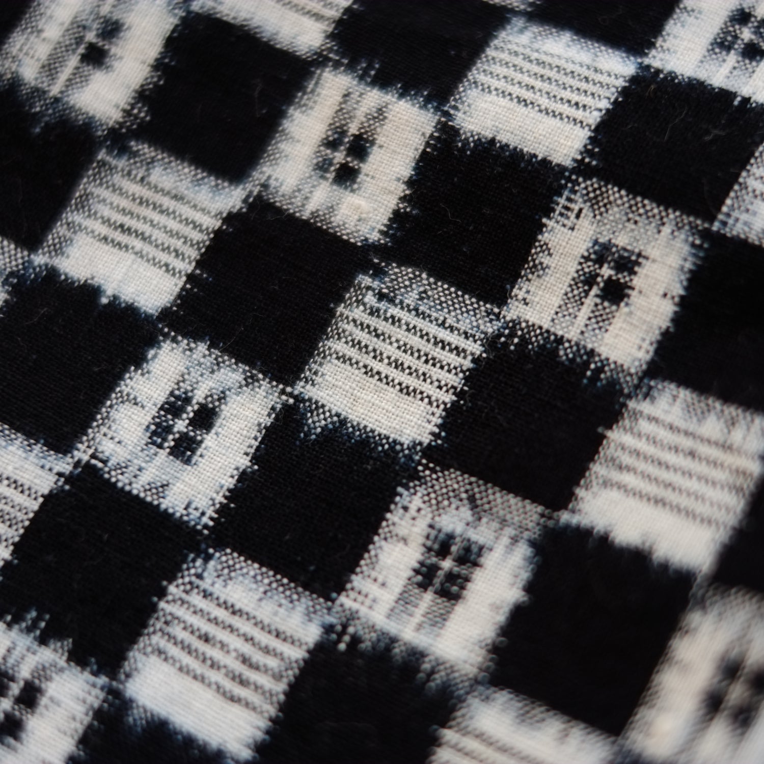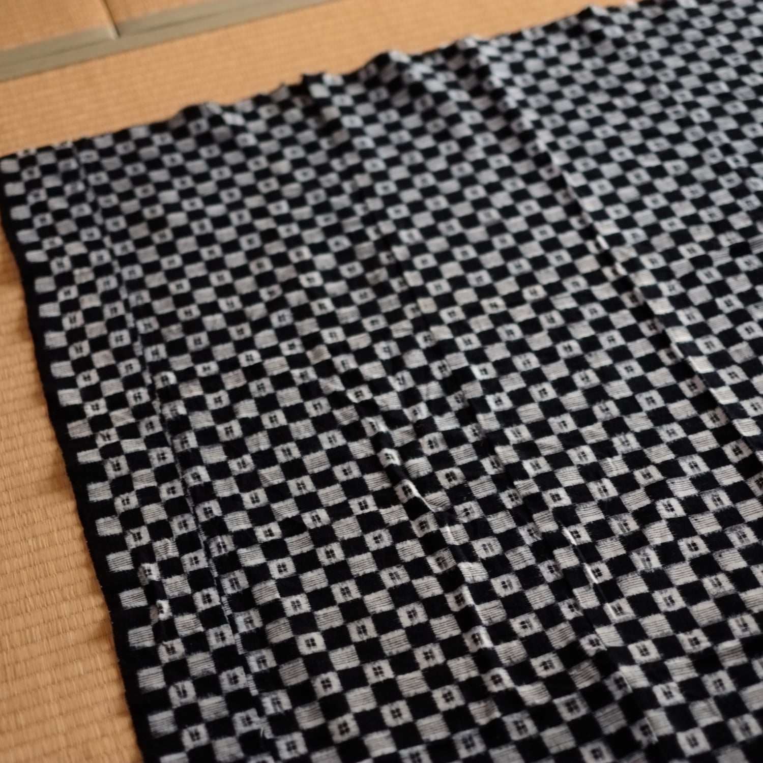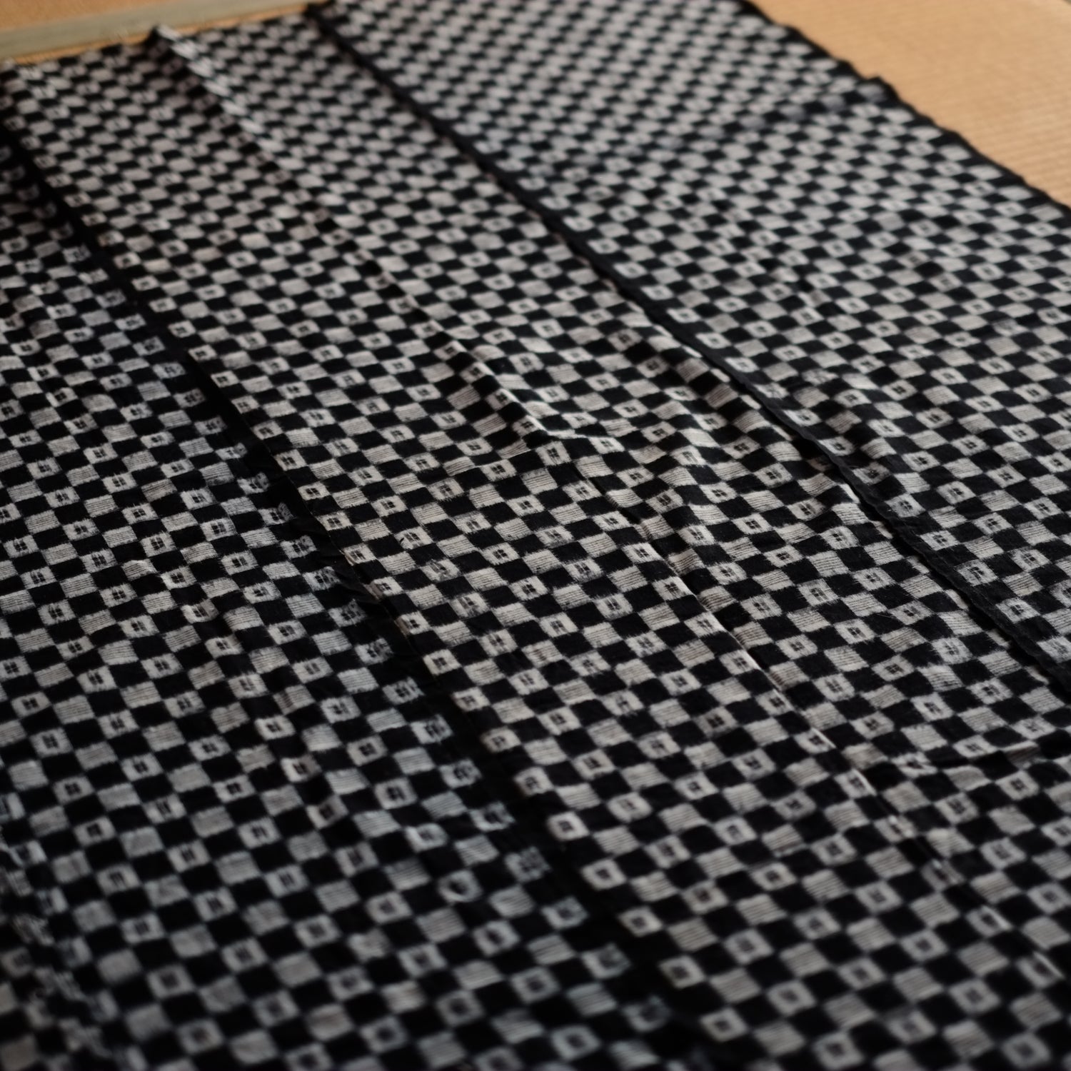 時代藍染の市松文の絣古布