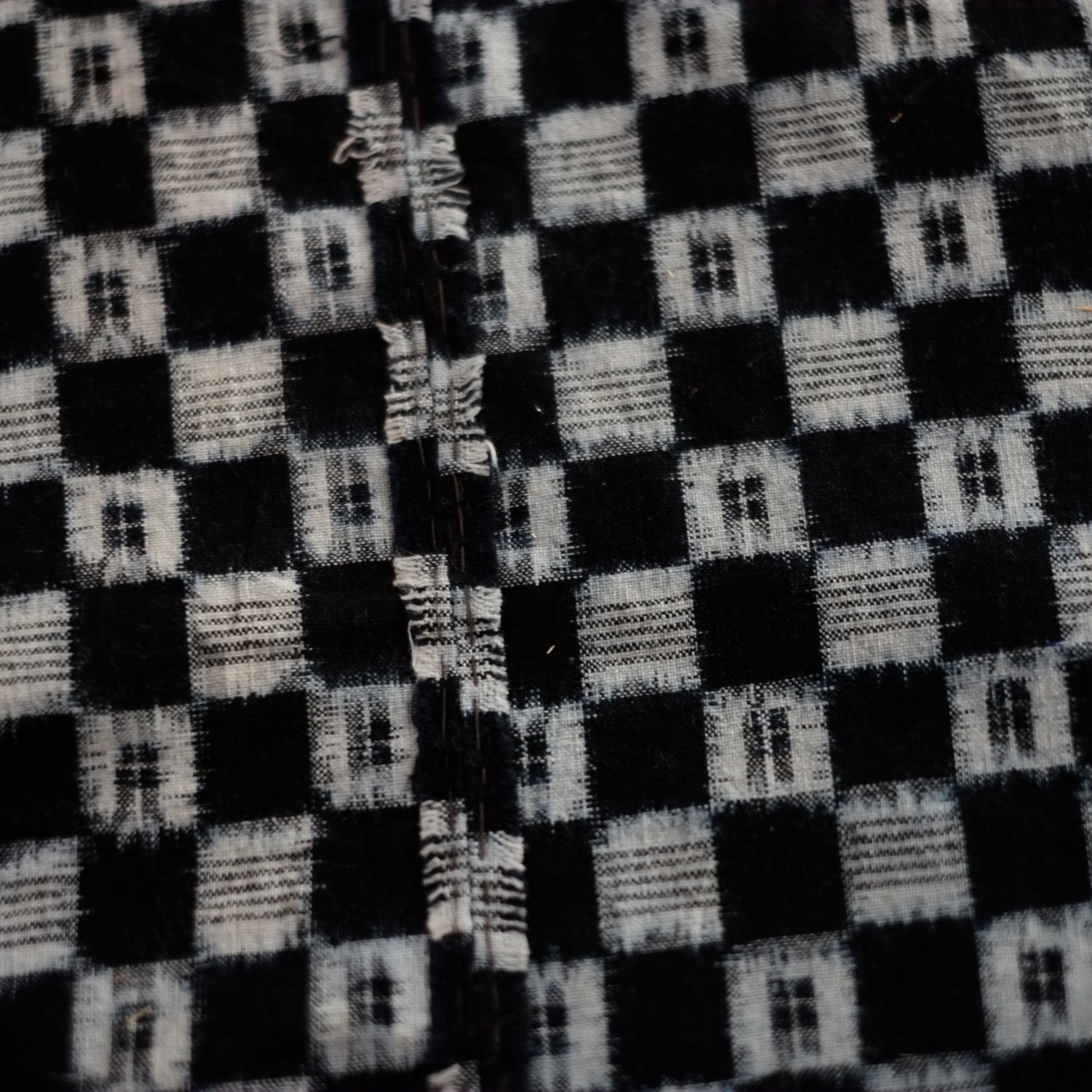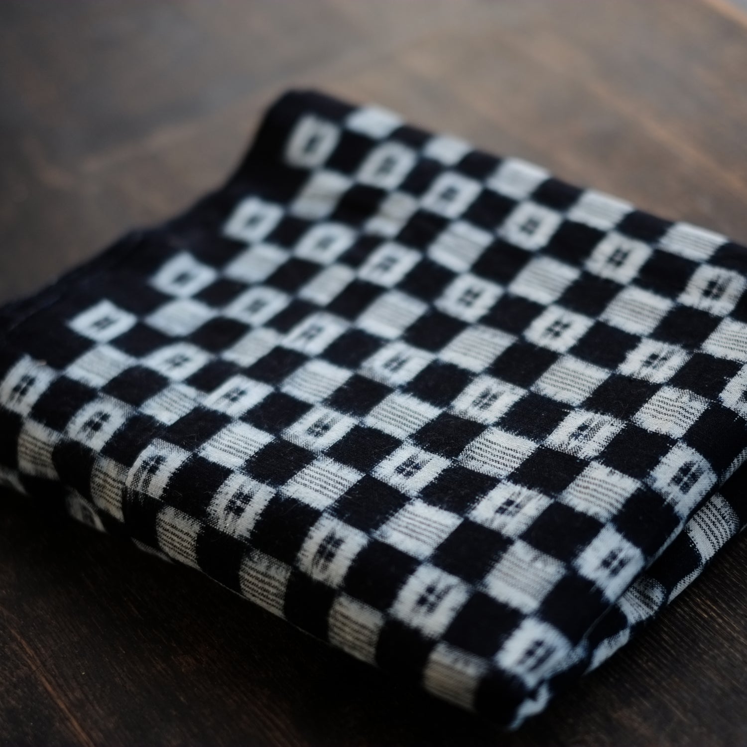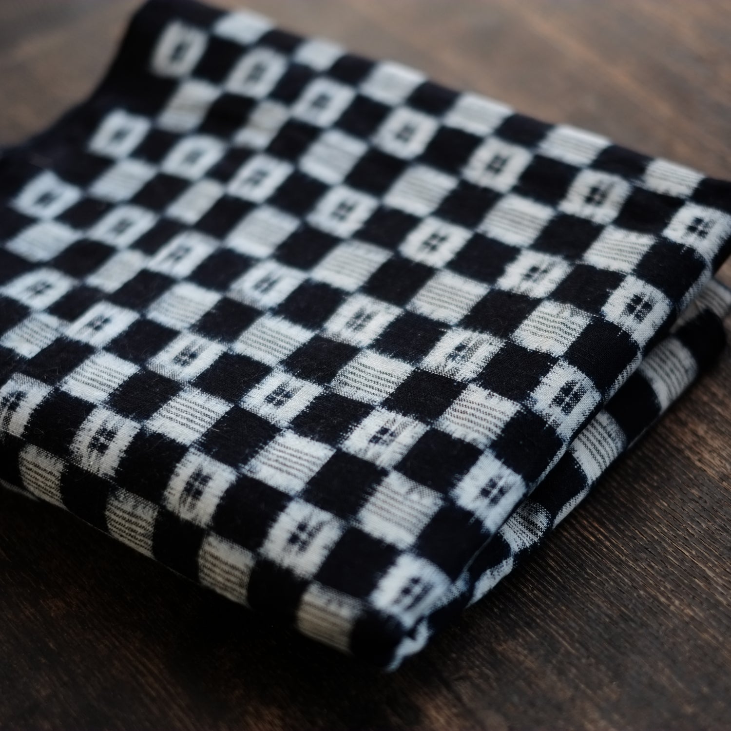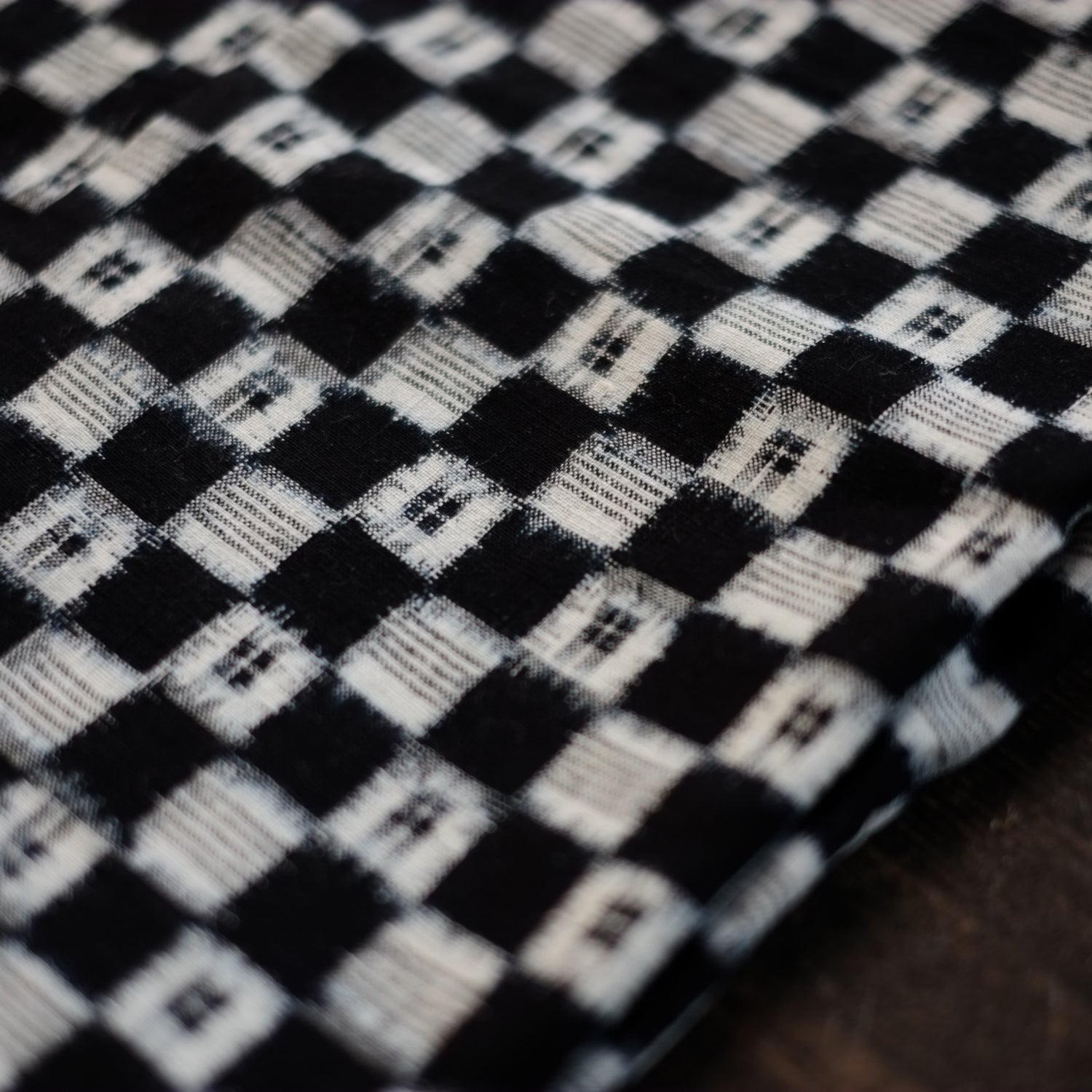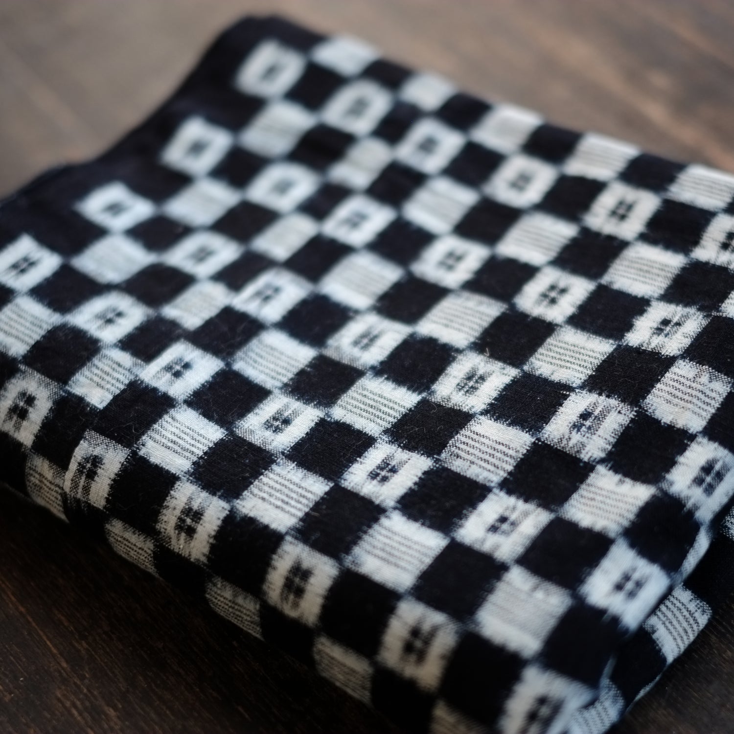 時代藍染の市松文の絣古布